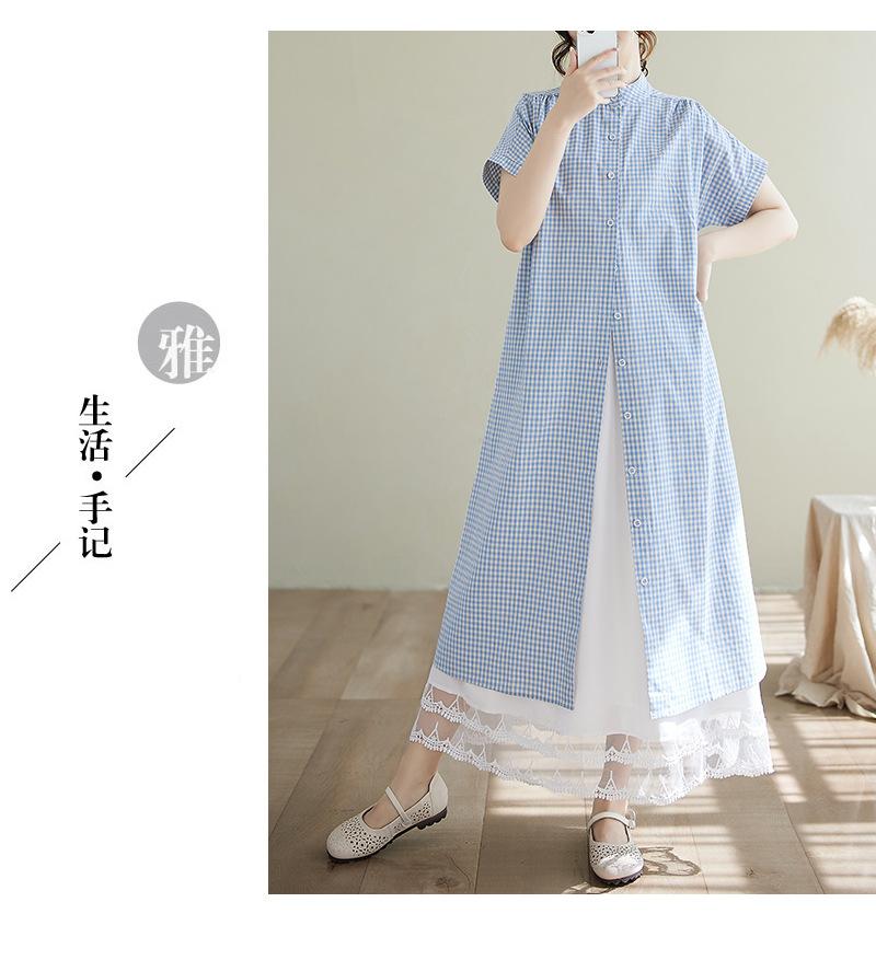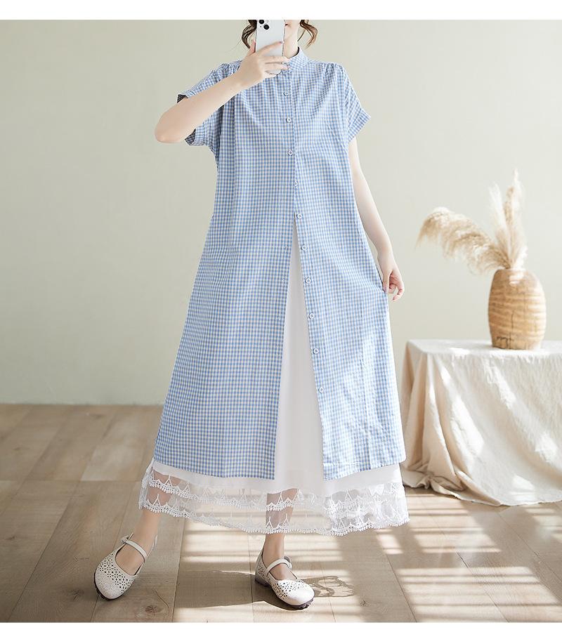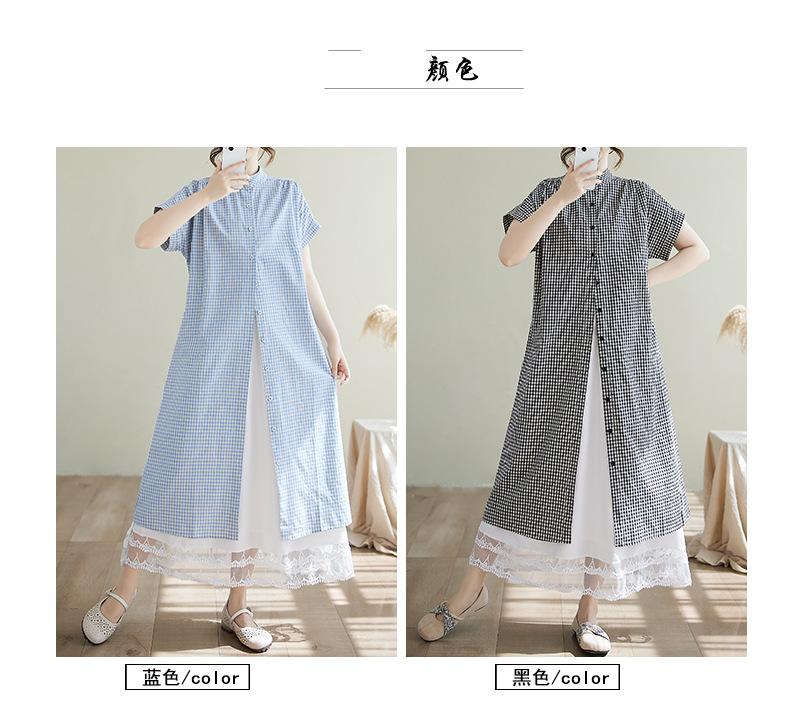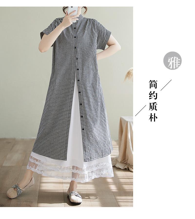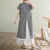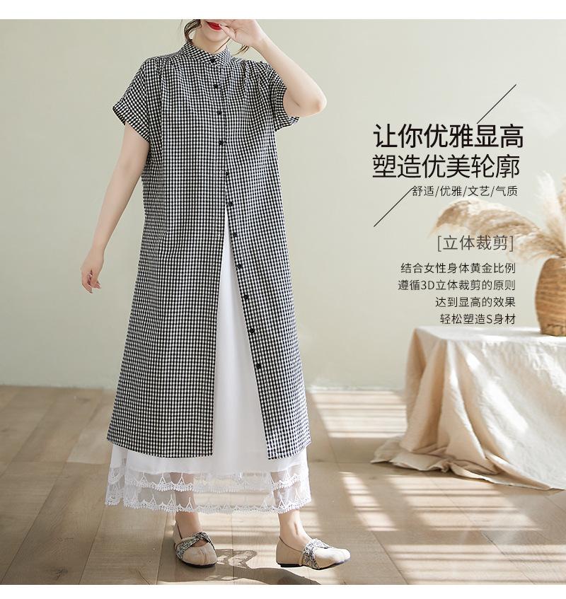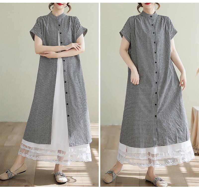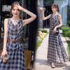 Traje Apilado Estilo Perezoso a Cuadros Retro Vestido Largo Verano 2025 Nuevo Falda de Encaje Conjunto de Dos Piezas