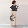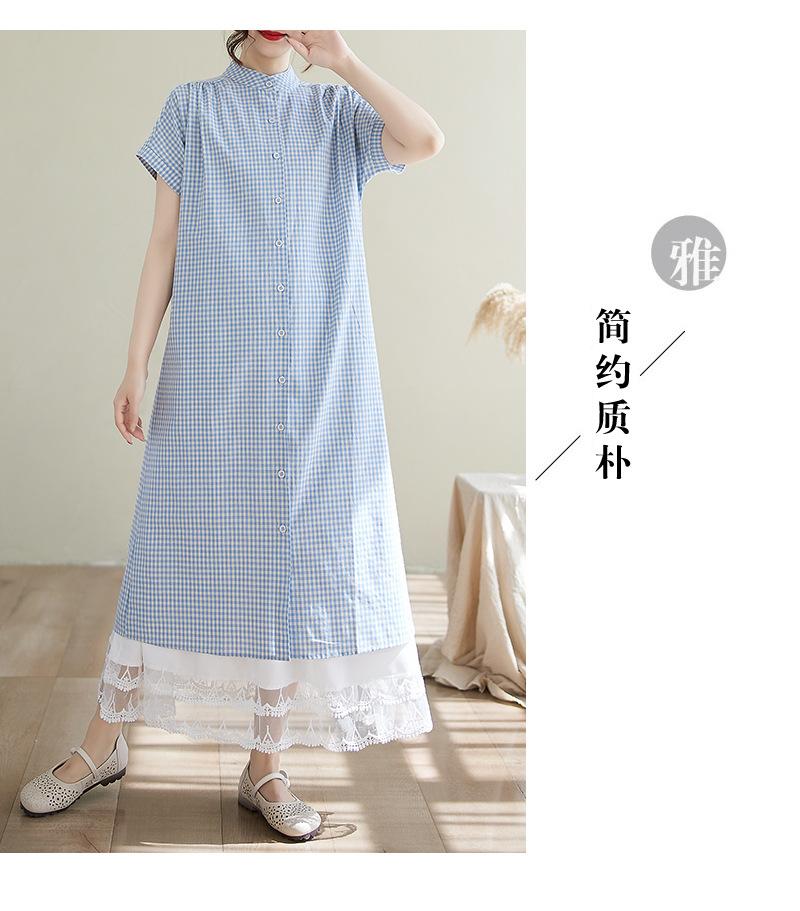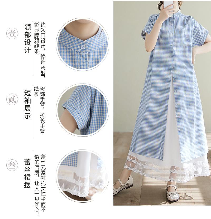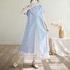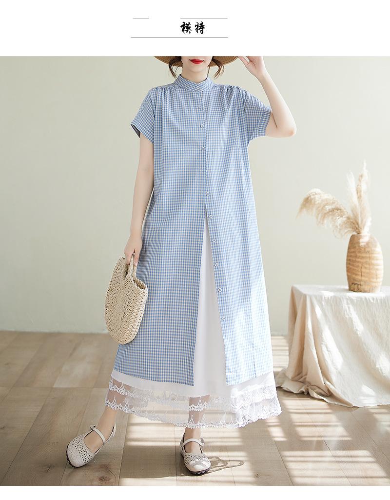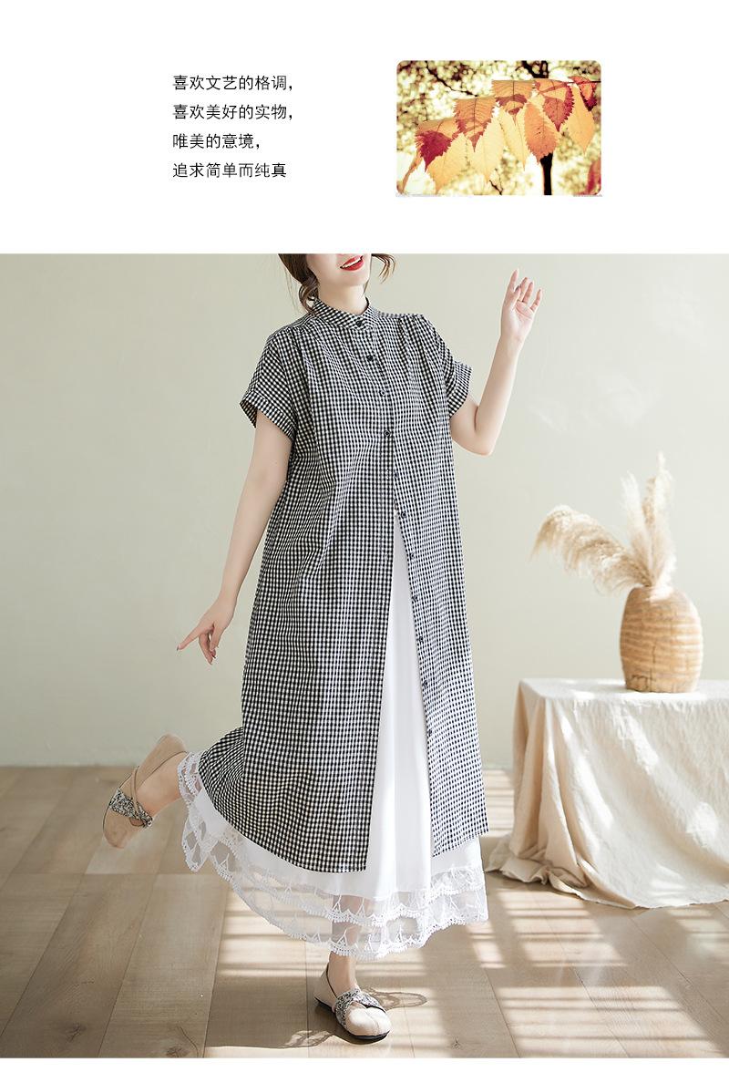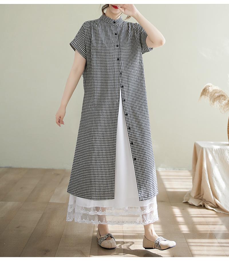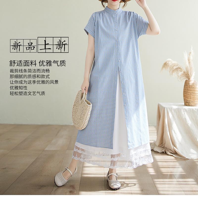Traje Apilado Estilo Perezoso a Cuadros Retro Vestido Largo Verano 2025 Nuevo Falda de Encaje Conjunto de Dos Piezas