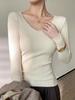 Nueva Camiseta Básica de Punto con Cuello en V para Mujer, Versátil de Otoño e Invierno, Ajustada, Elegante, de Gama Alta, Top Camiseta de Manga Larga