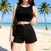 Verano Negro Ajustado Chica Caliente Super Shorts para Mujer para Usar Afuera 2024 Nuevo Cintura Alta Look Adelgazante Pantalones Cortos Calientes de Fondo Elástico