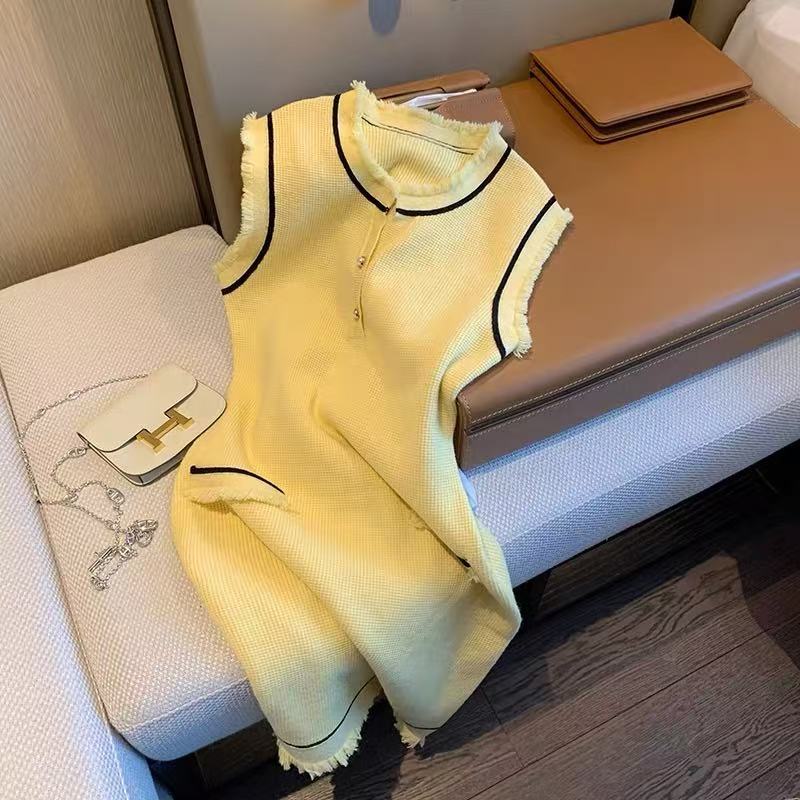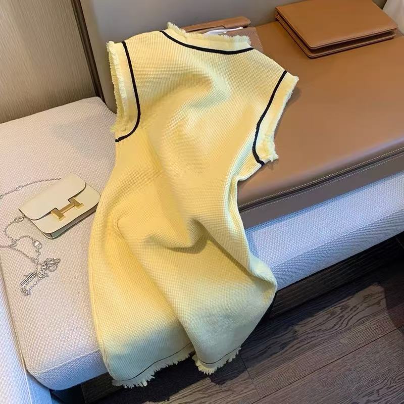 Elegante vestido amarillo de tweed estilo mujer verano ropa de mujer nuevo francés corte entallado adelgazante temperamento falda corta ins