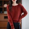 Suéter Base de Punto de Otoño Invierno a Rayas con Bloque de Color de Cuello Redondo para Mujer 2025 Manga Larga Holgado Adelgazante Moda Top Base