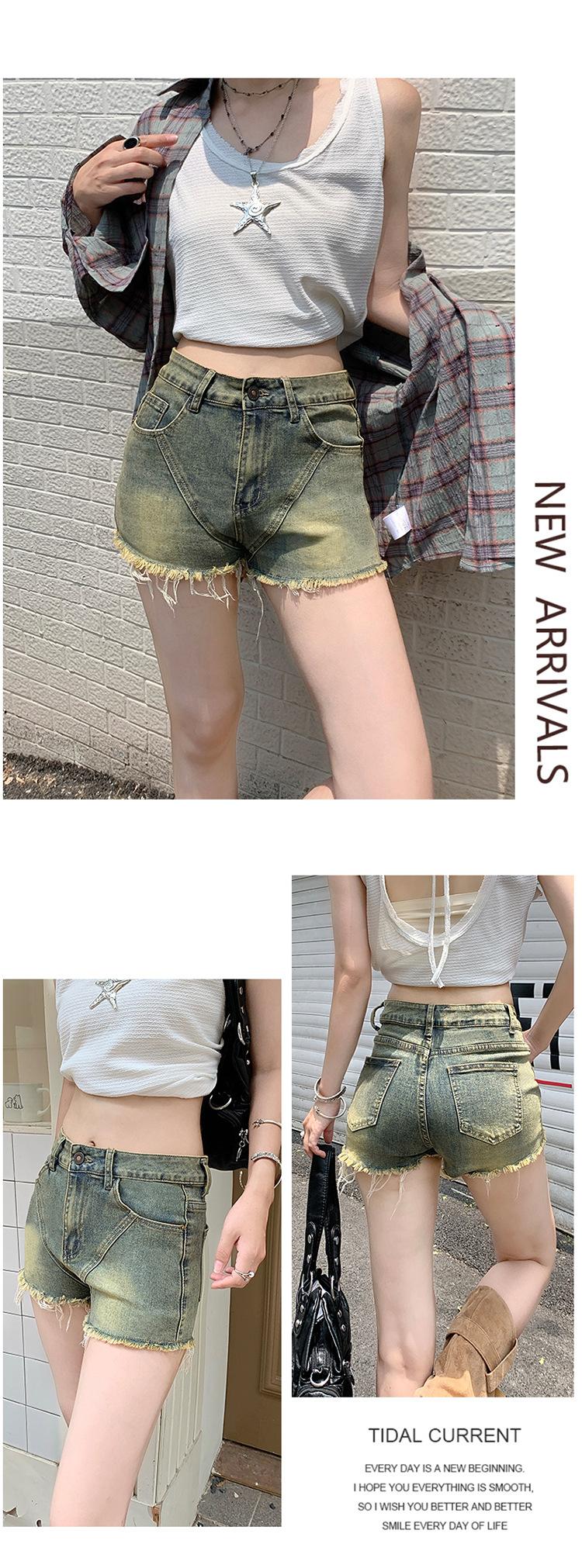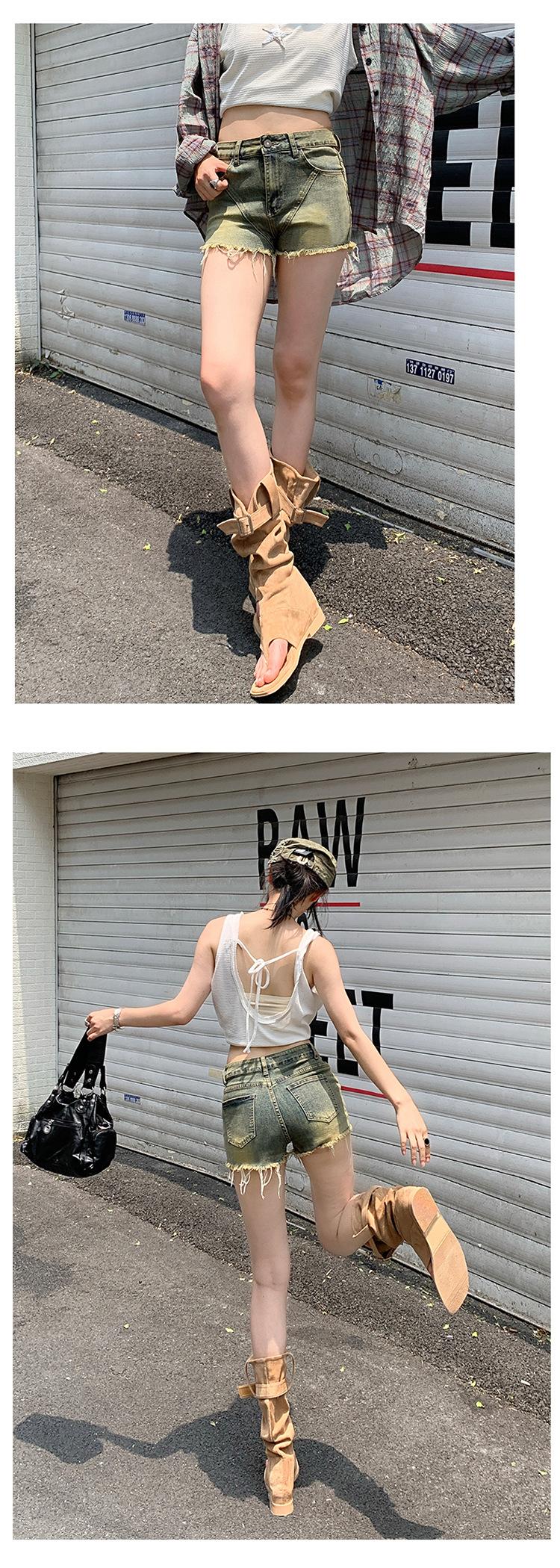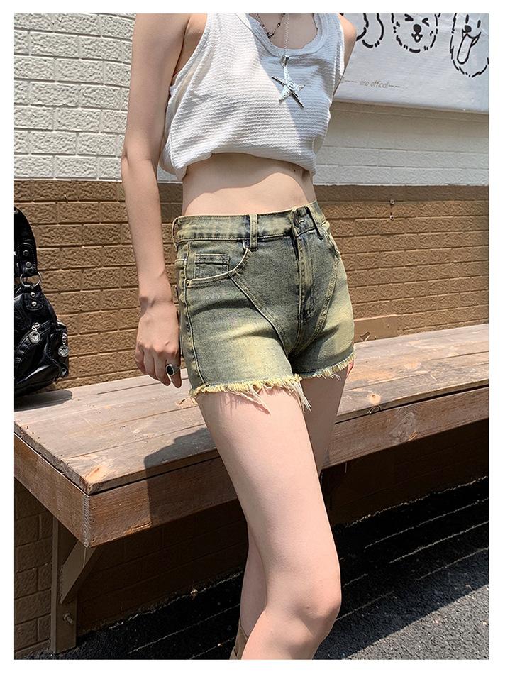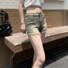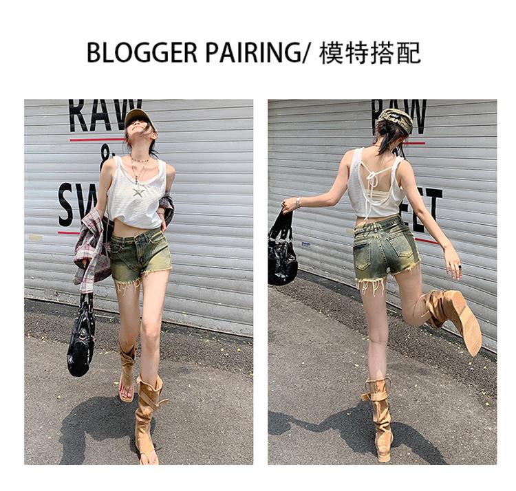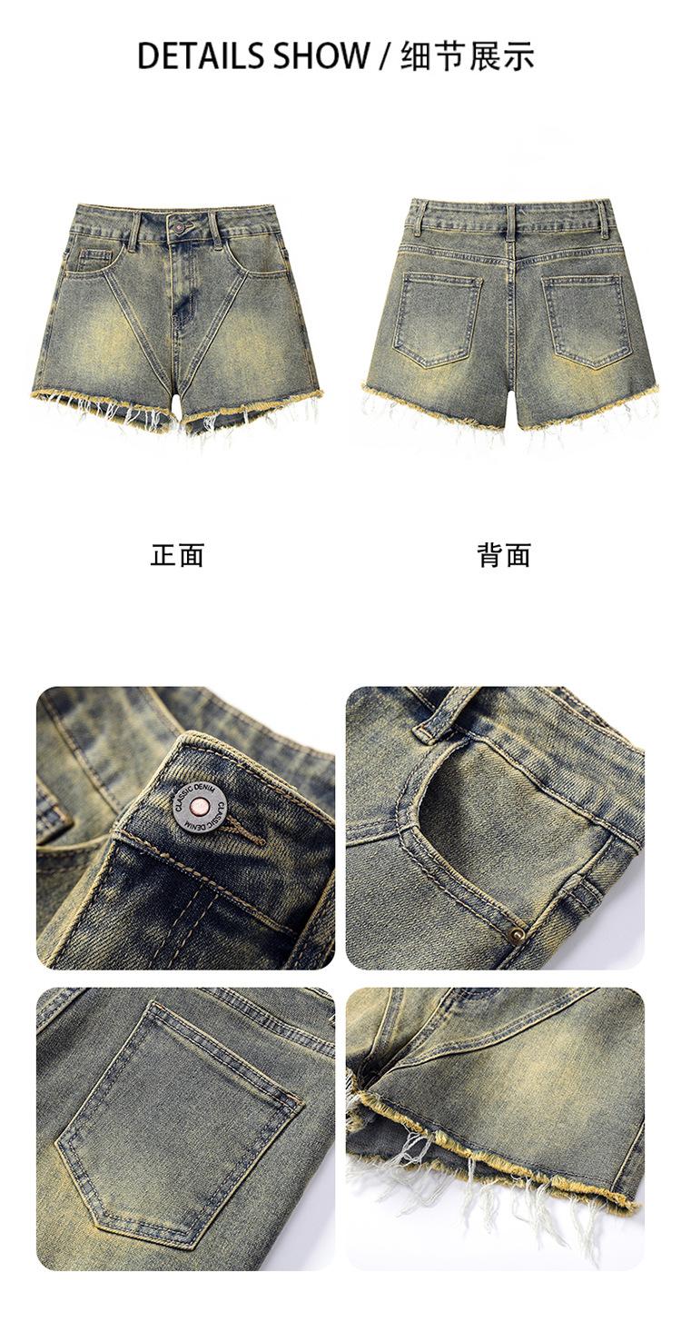 2025 Diseño Plisado Estilo Americano Denim Súper Shorts Verano Cintura Alta Adelgazantes Chica Caliente Ajustados Elásticos Súper Cortos Hot Pants