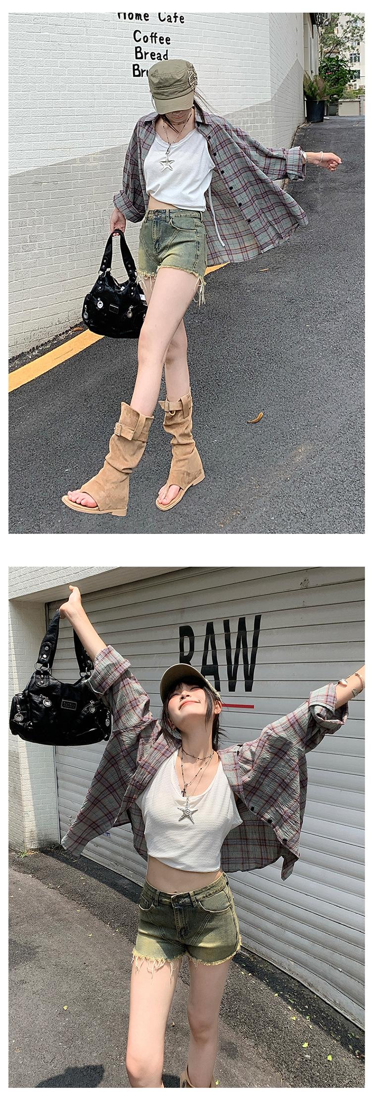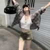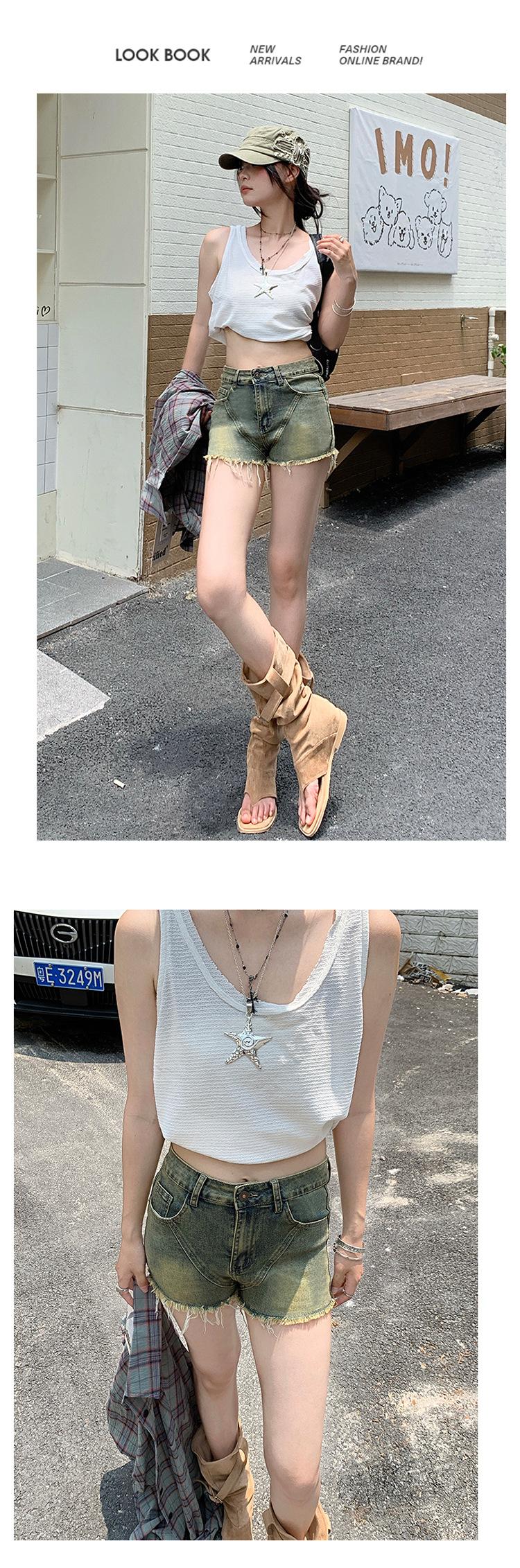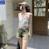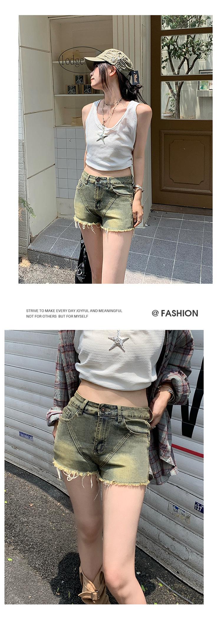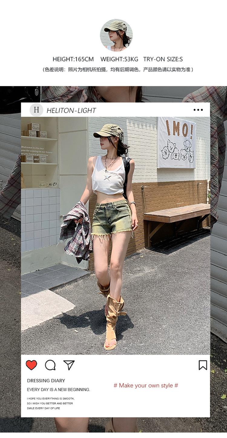 2025 Diseño Plisado Estilo Americano Denim Súper Shorts Verano Cintura Alta Adelgazantes Chica Caliente Ajustados Elásticos Súper Cortos Hot Pants