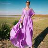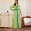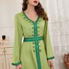 BA9009 Vestido de Moda Nueva con Cuello en V y Pedrería Cosida a Mano en Verde Hierba Nuevo