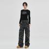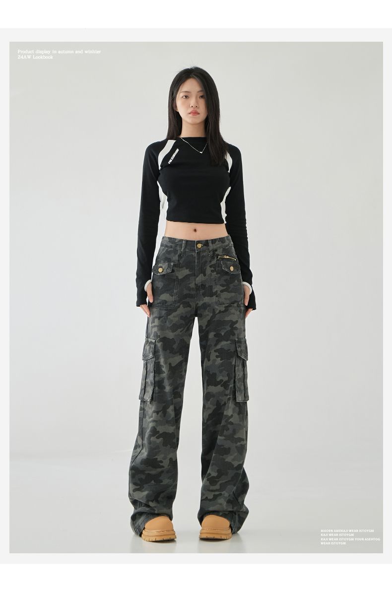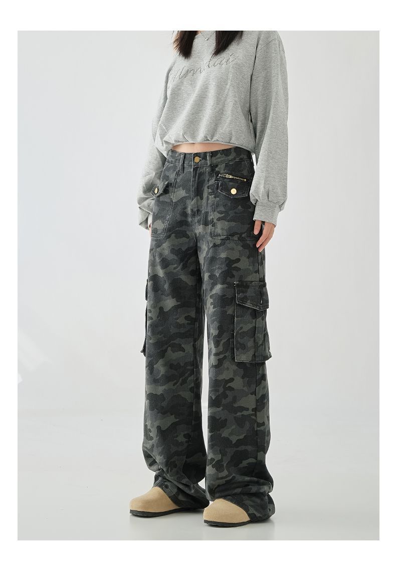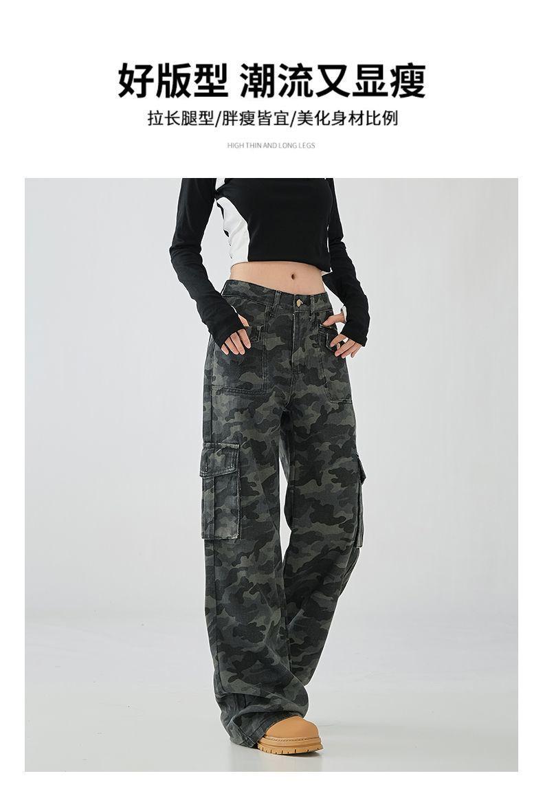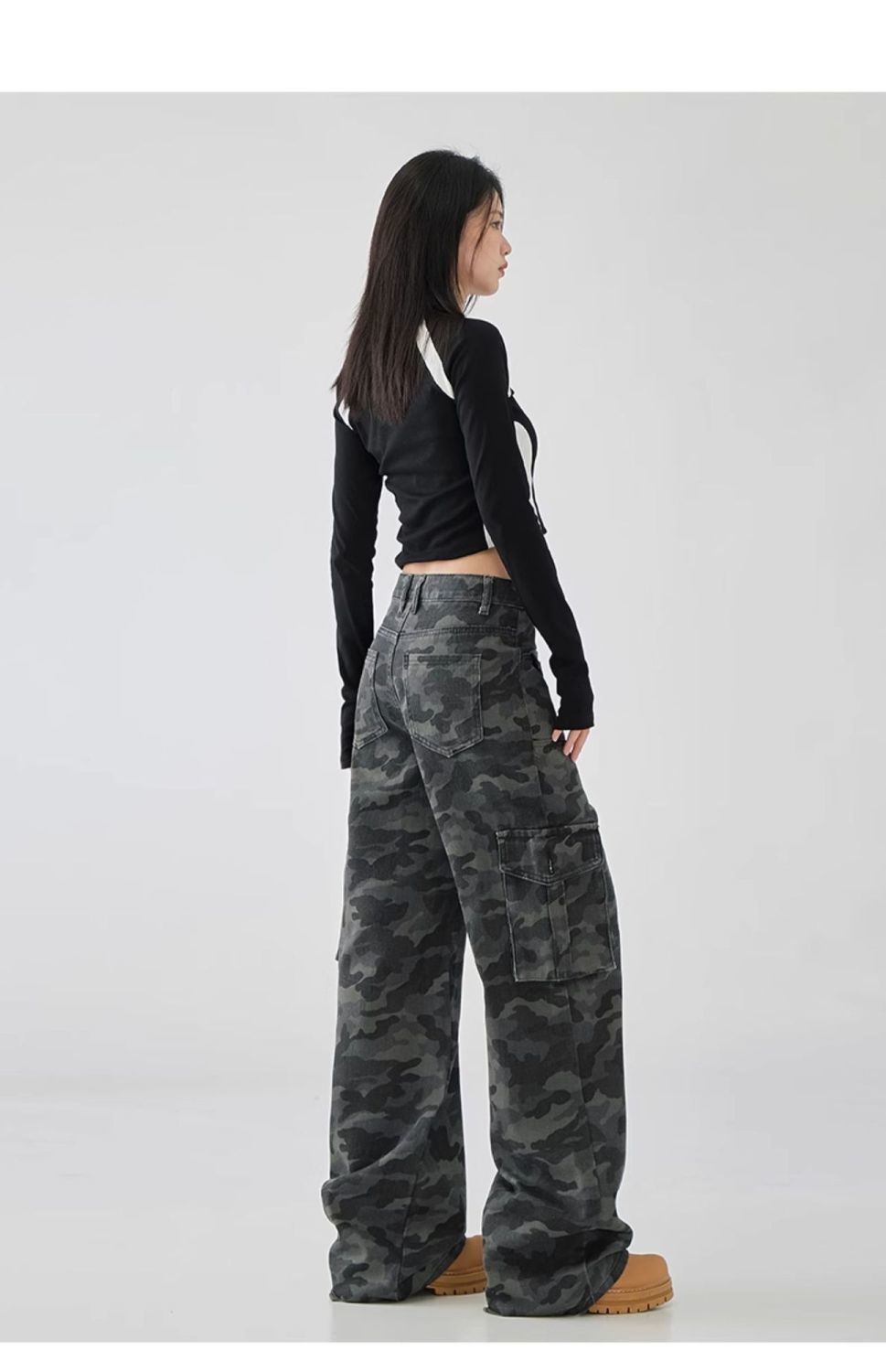 Mono vaquero camuflaje pierna ancha American High Street para mujer Otoño 2025 Nuevo Cintura alta Multibolsillos Pantalones largos hasta el suelo