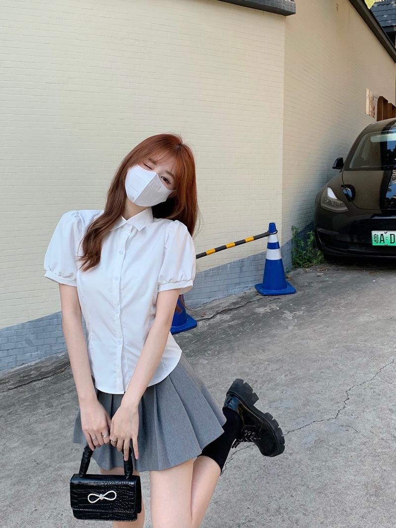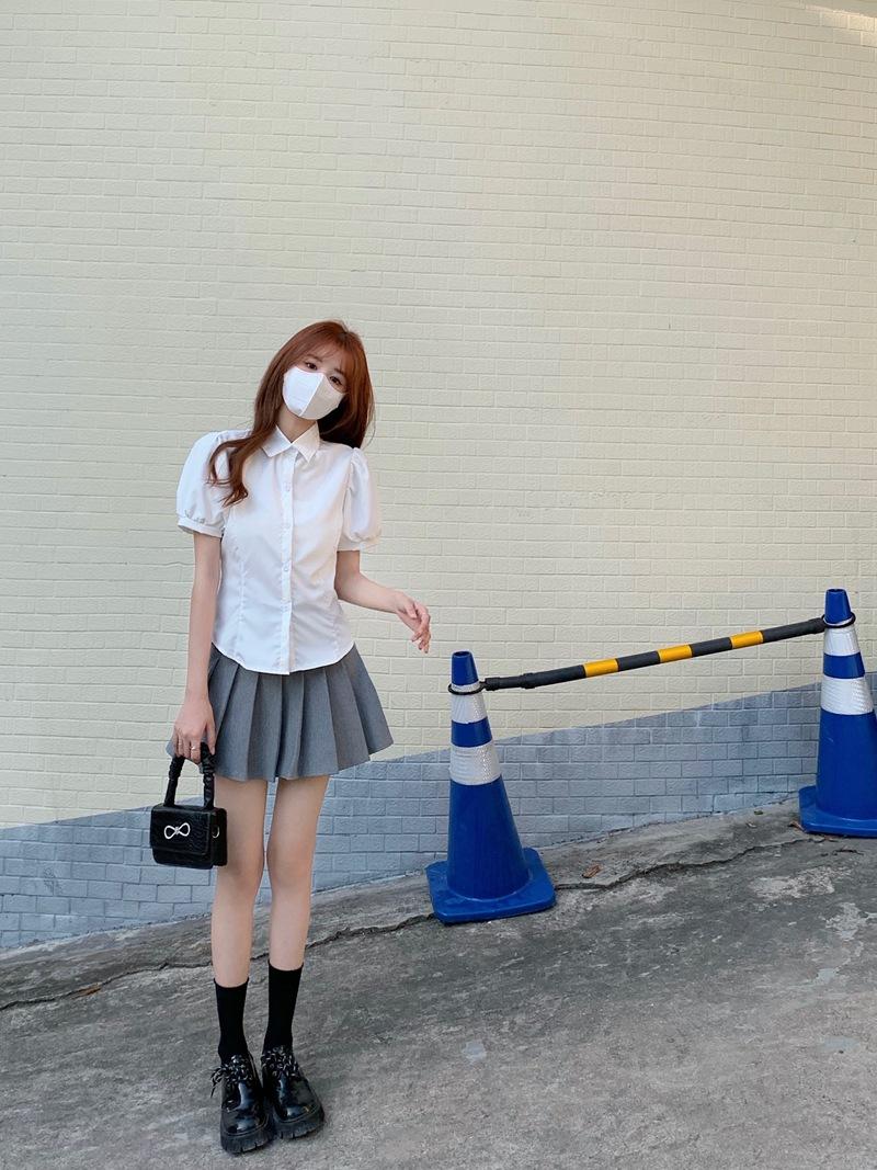 White shirt + black pleated skirt [complete set], White shirt + gray pleated skirt [complete set], White shirt...