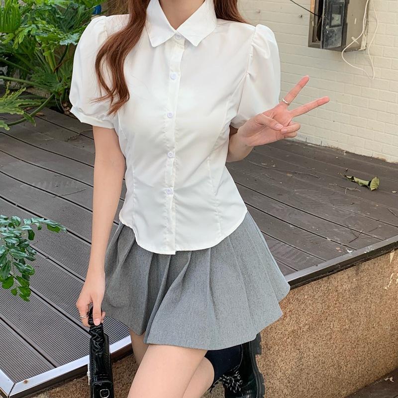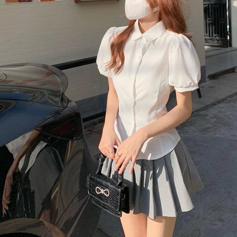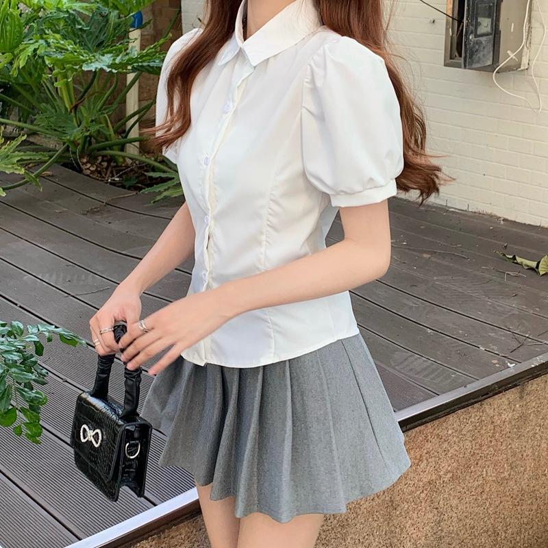Conjunto de Uniforme Jk Estilo Japonés Primavera/Verano Nuevo Camisa Blanca Entallada a la Cintura Falda Plisada Falda de Mujer Uniforme Escolar de Estudiante Corte Slim