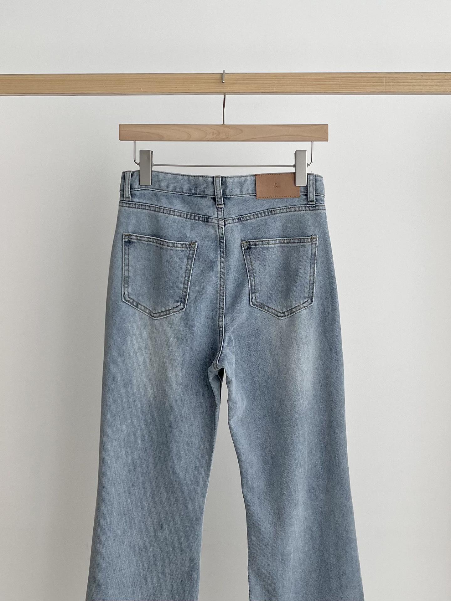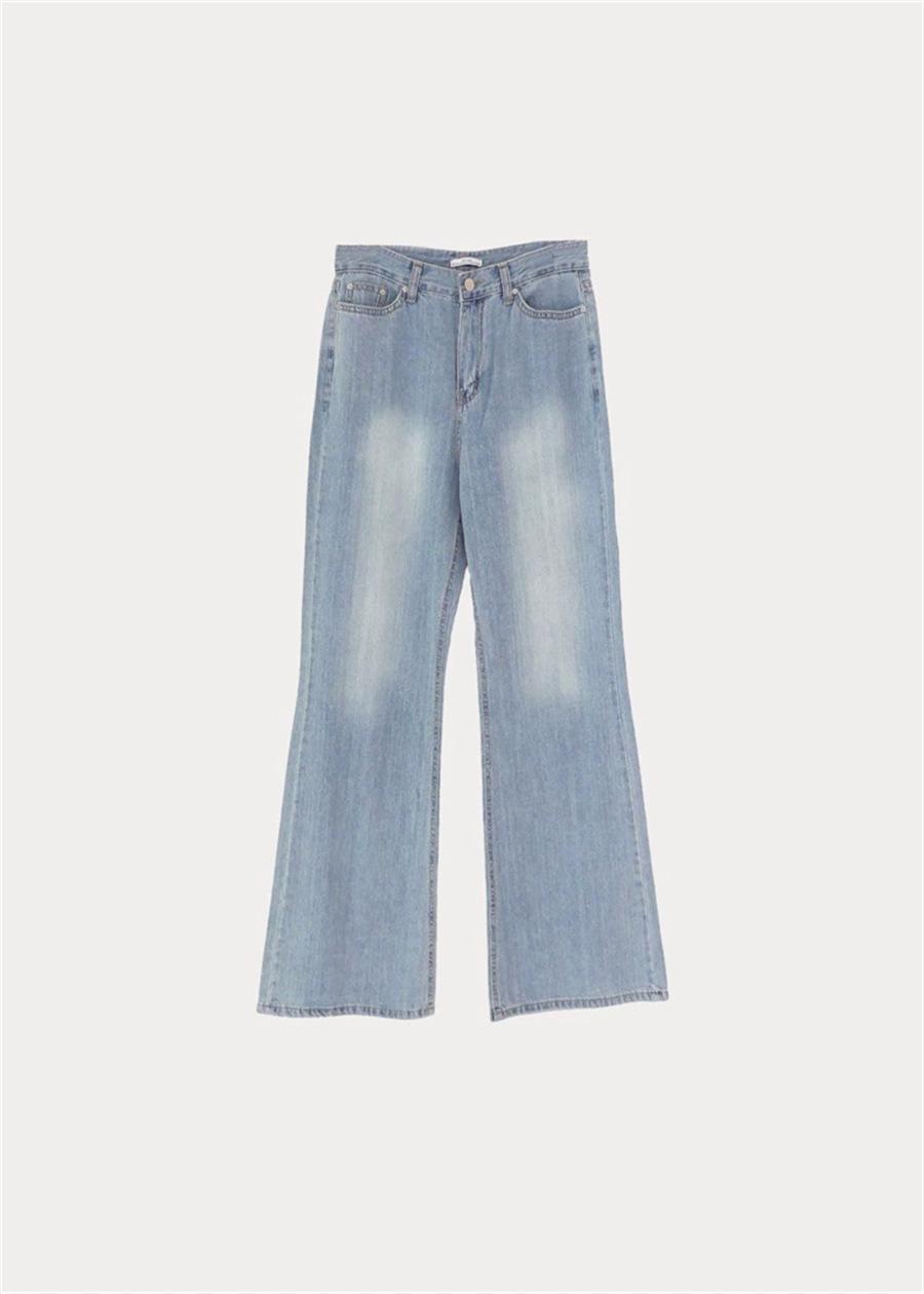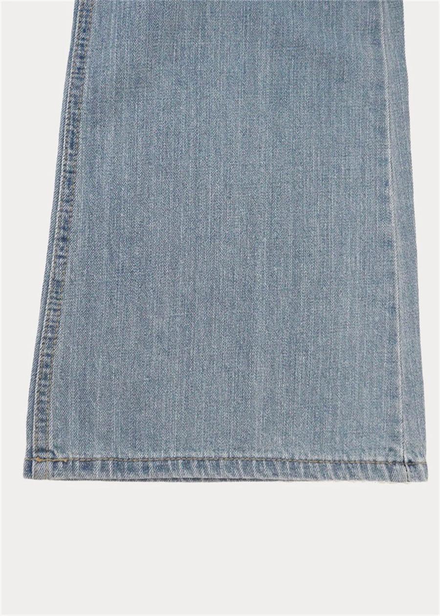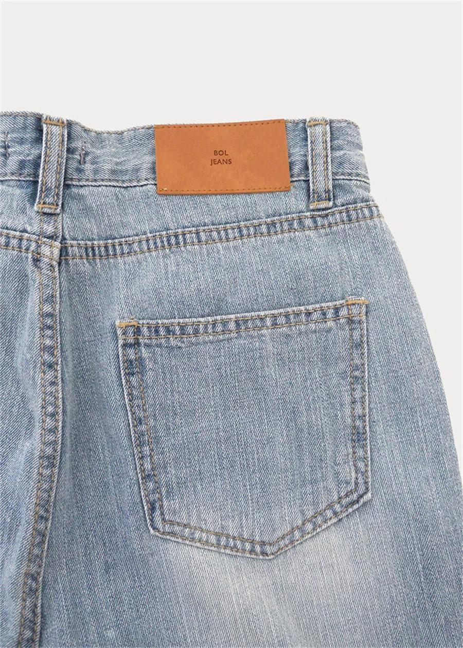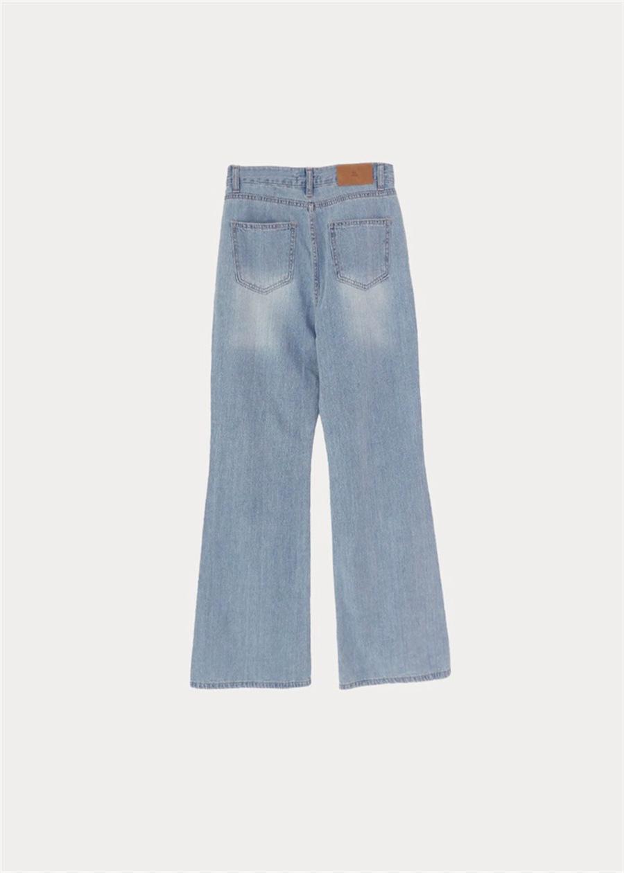 El cuerpo del pantalón tiene un acabado lavado y blanqueado, añadiendo una sensación de profundidad.