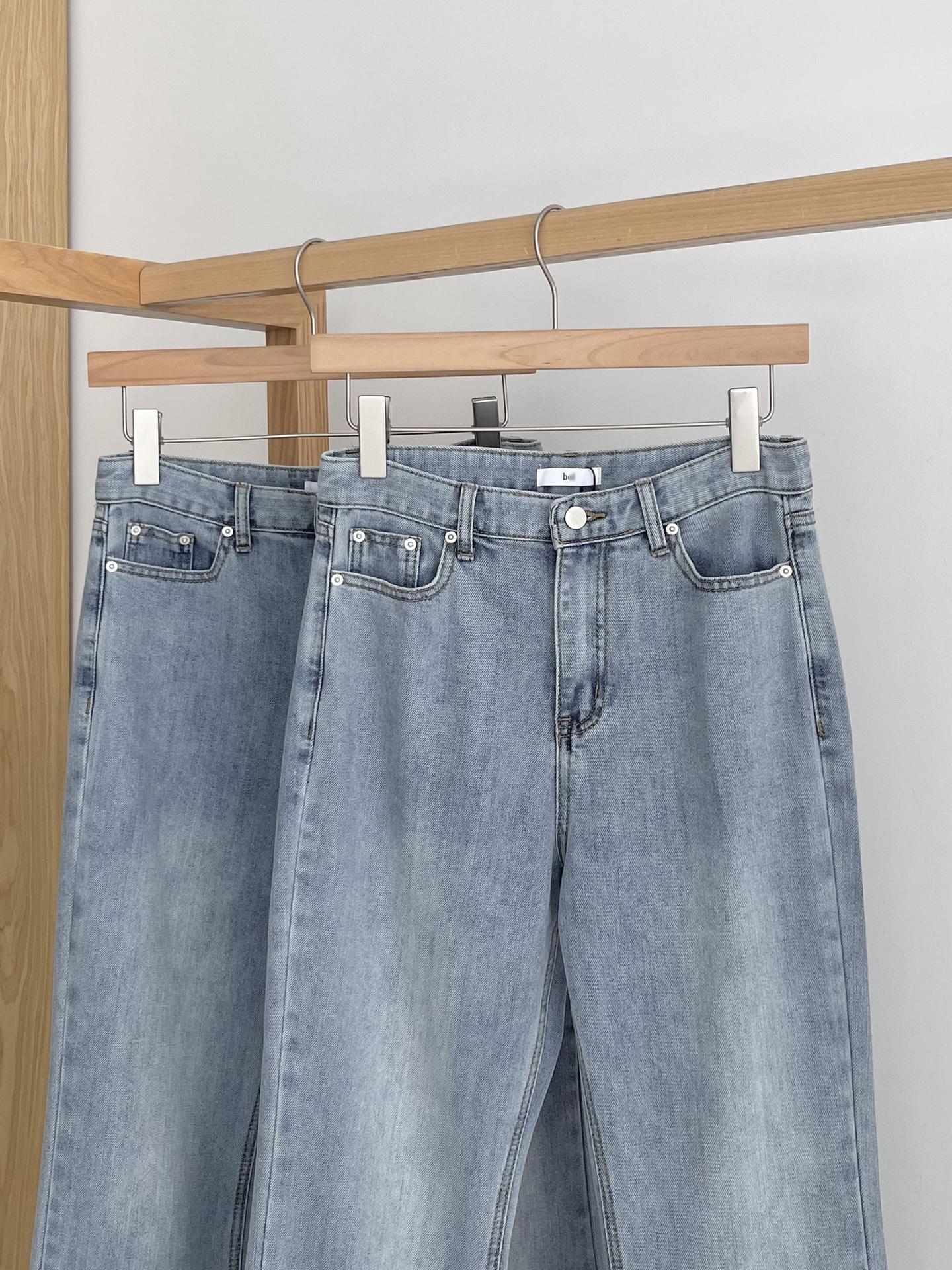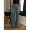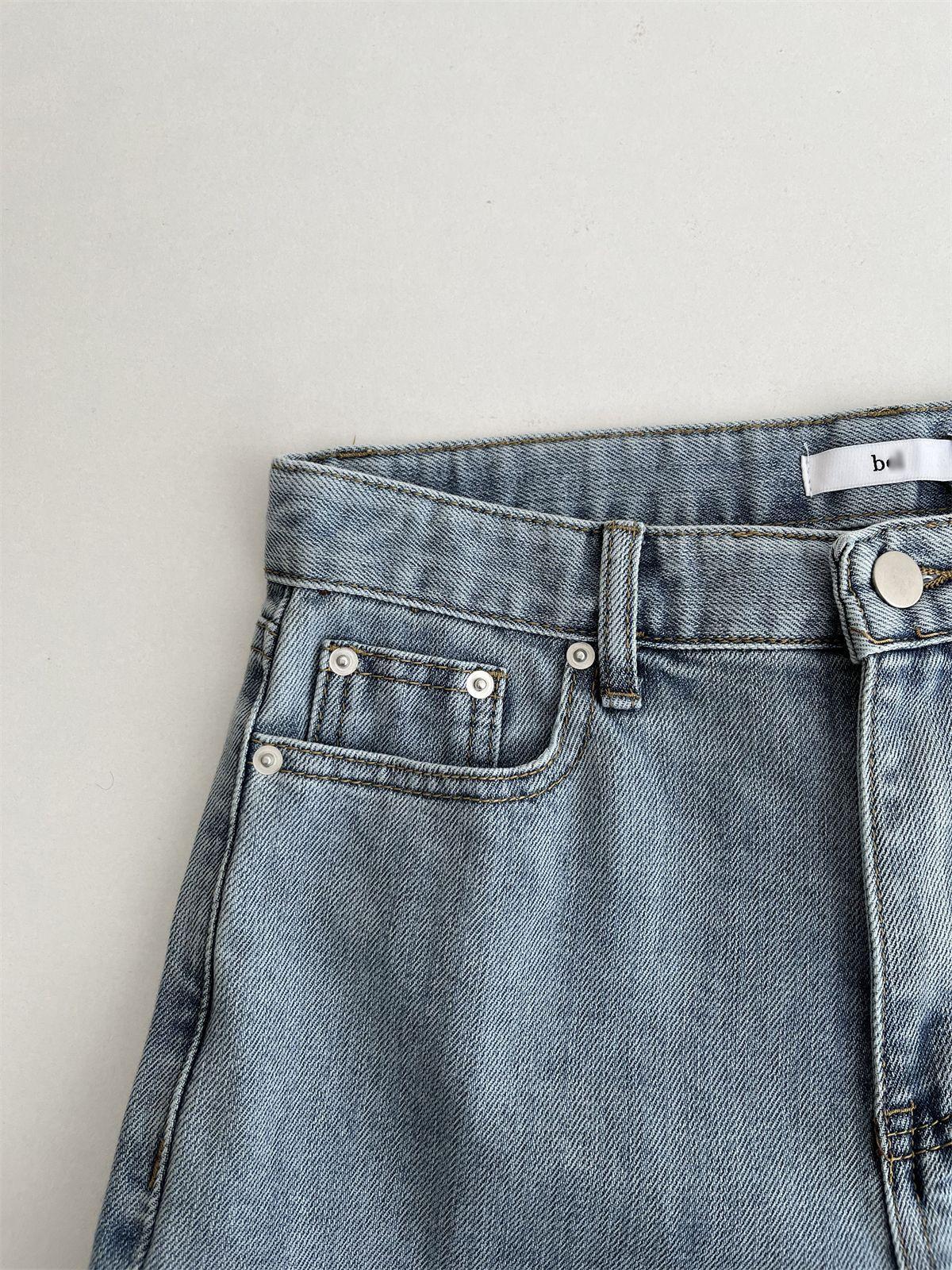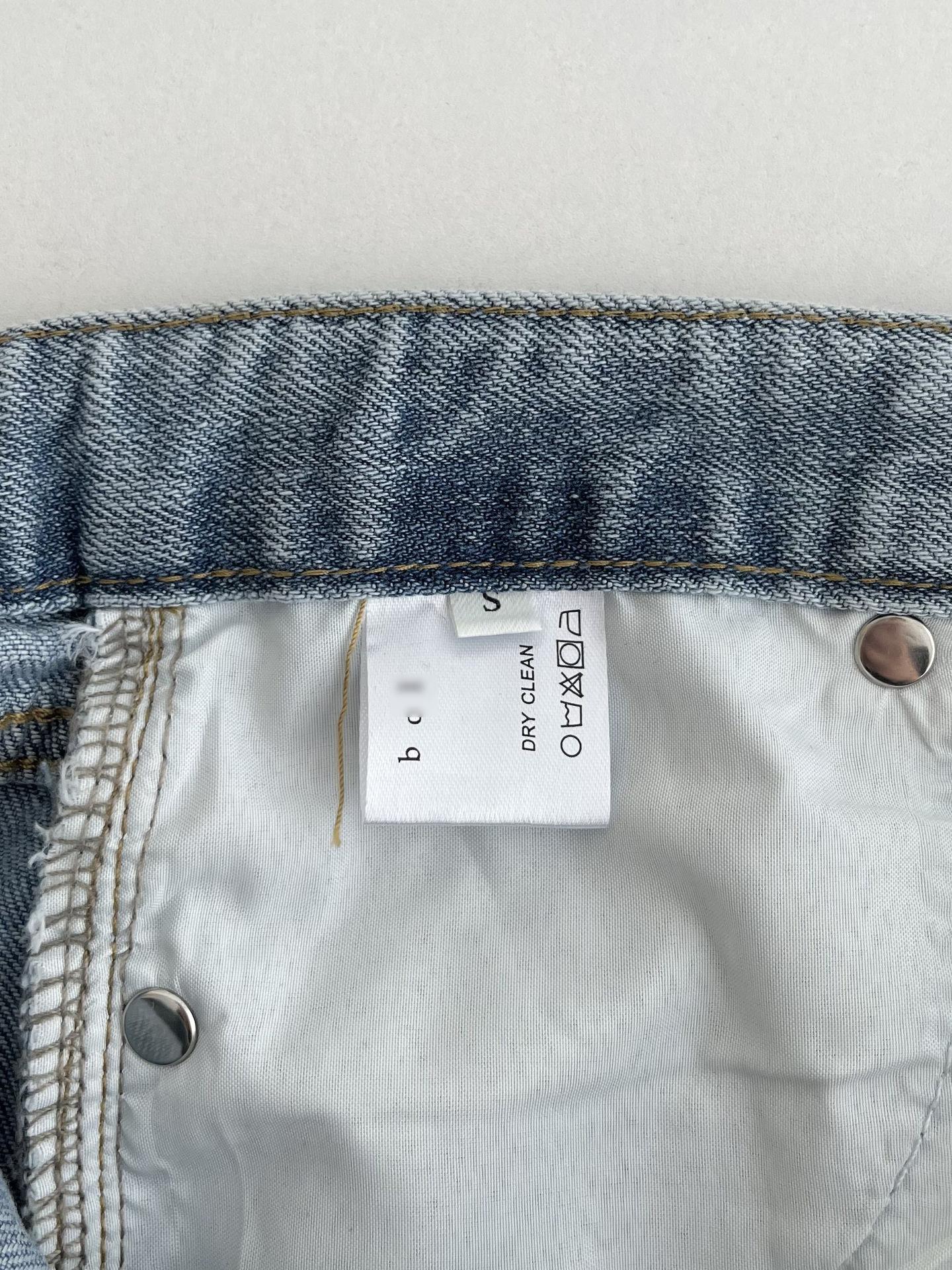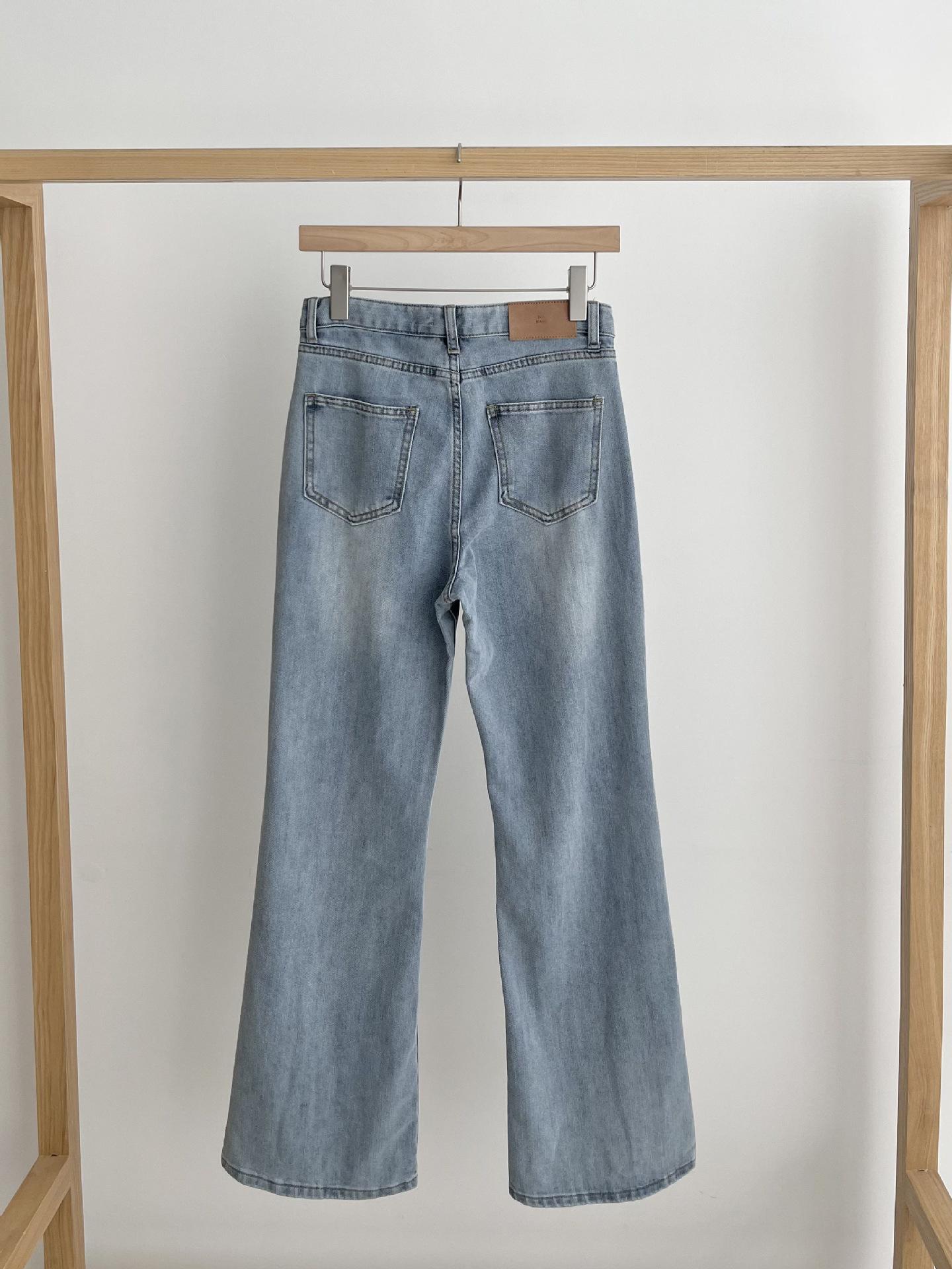 El cuerpo del pantalón tiene un acabado lavado y blanqueado, añadiendo una sensación de profundidad.