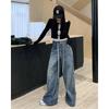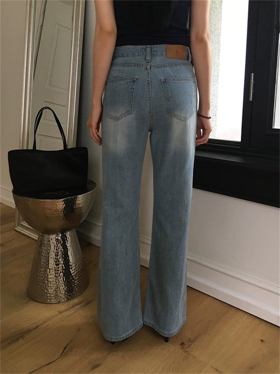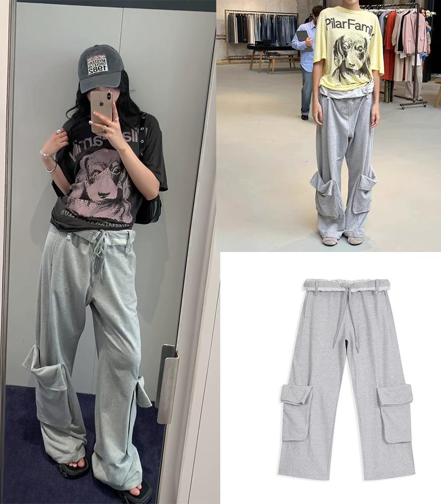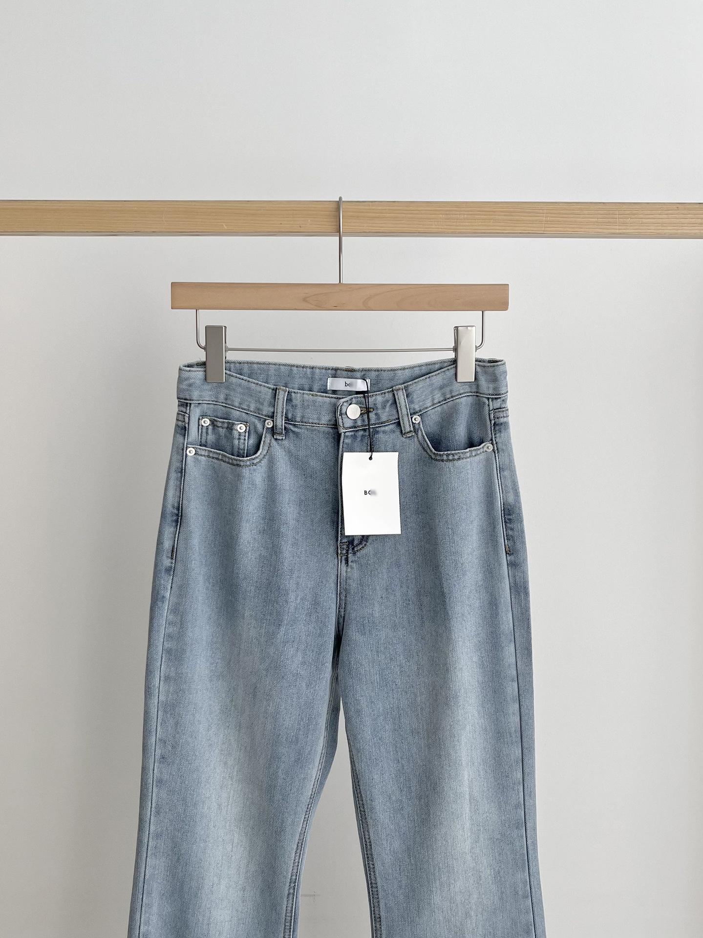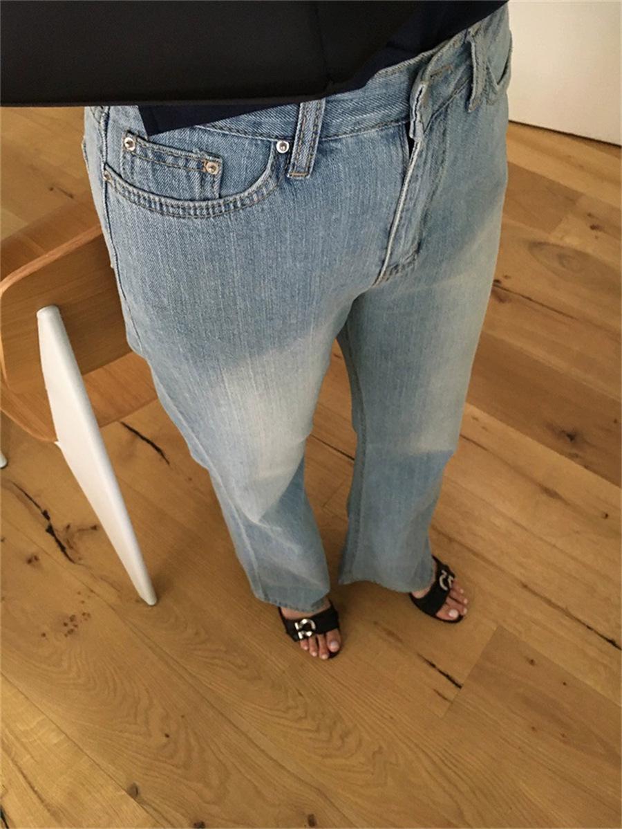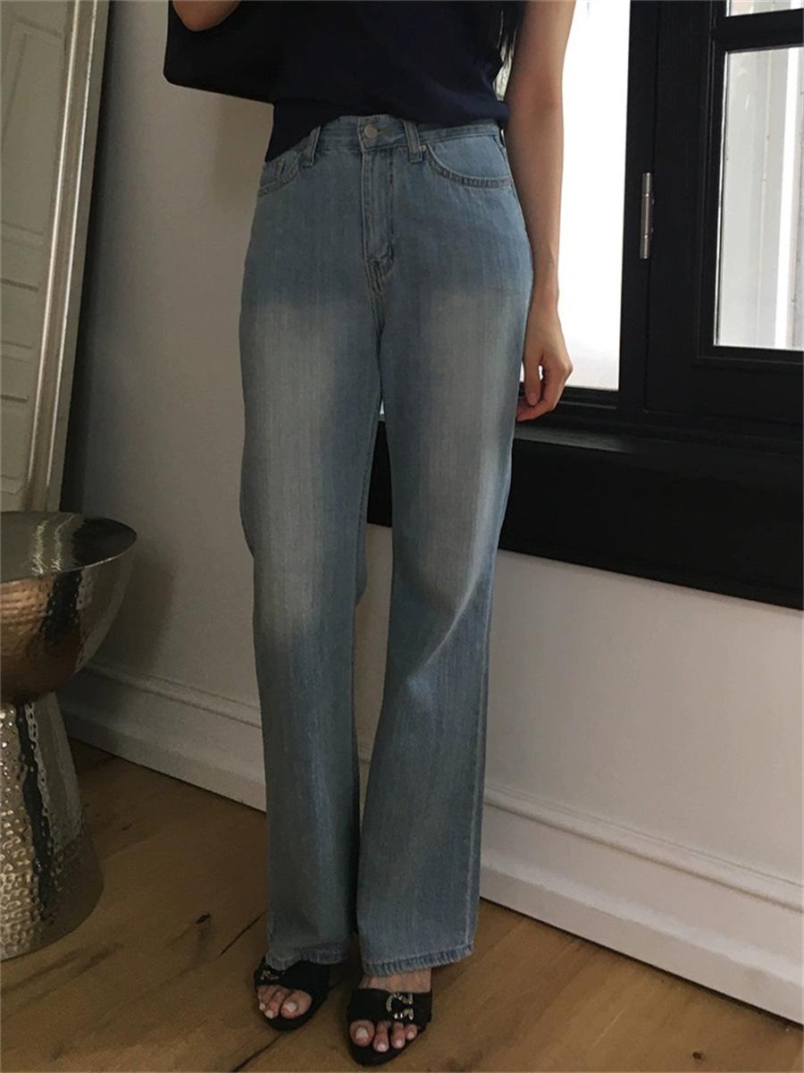 El cuerpo del pantalón tiene un acabado lavado y blanqueado, añadiendo una sensación de profundidad.