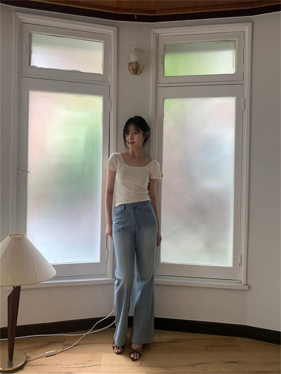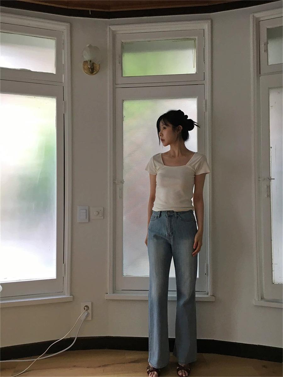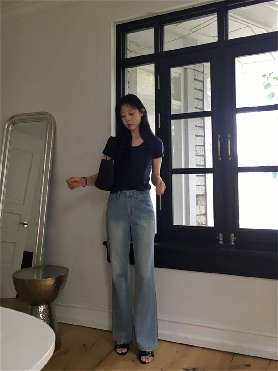 Silueta ligeramente acampanada, ajustada en la parte superior y holgada en la parte inferior, favorece las líneas de las piernas,