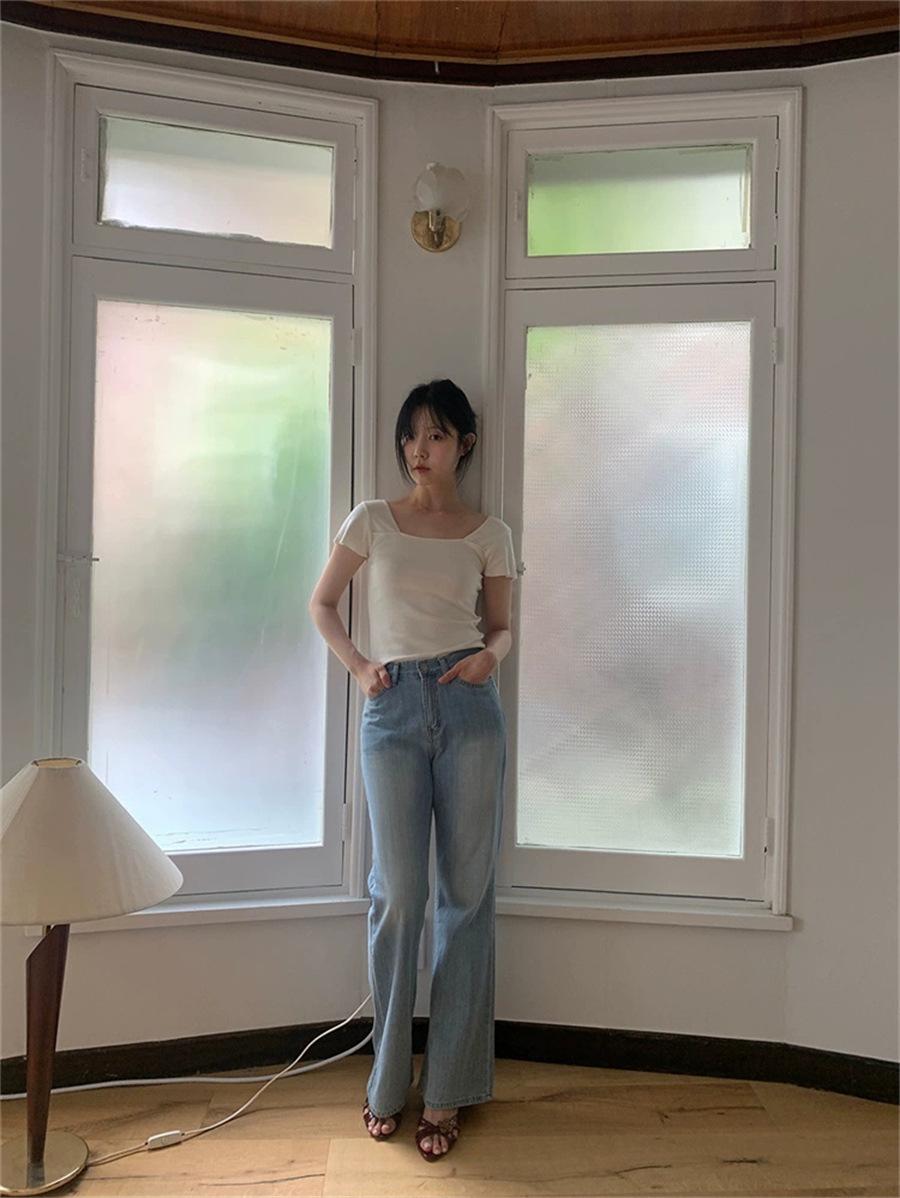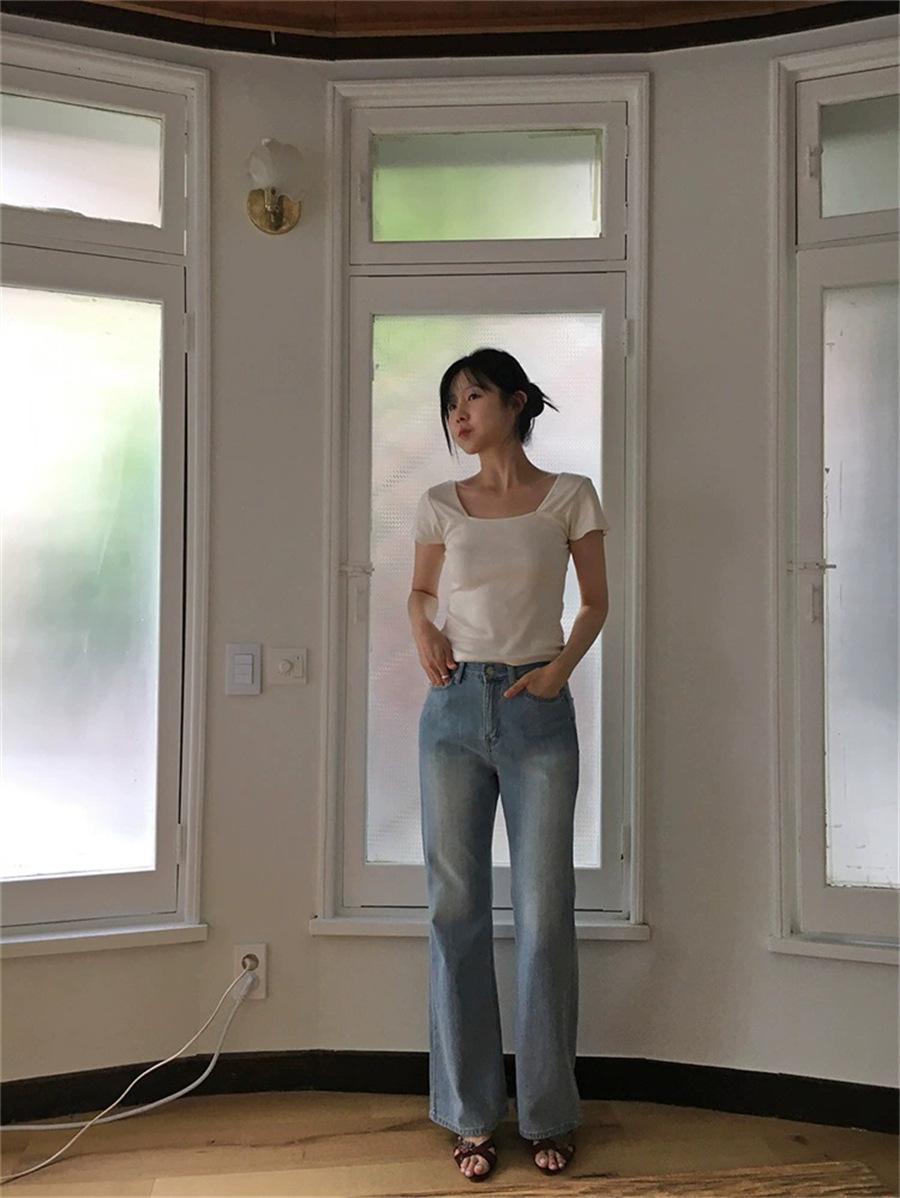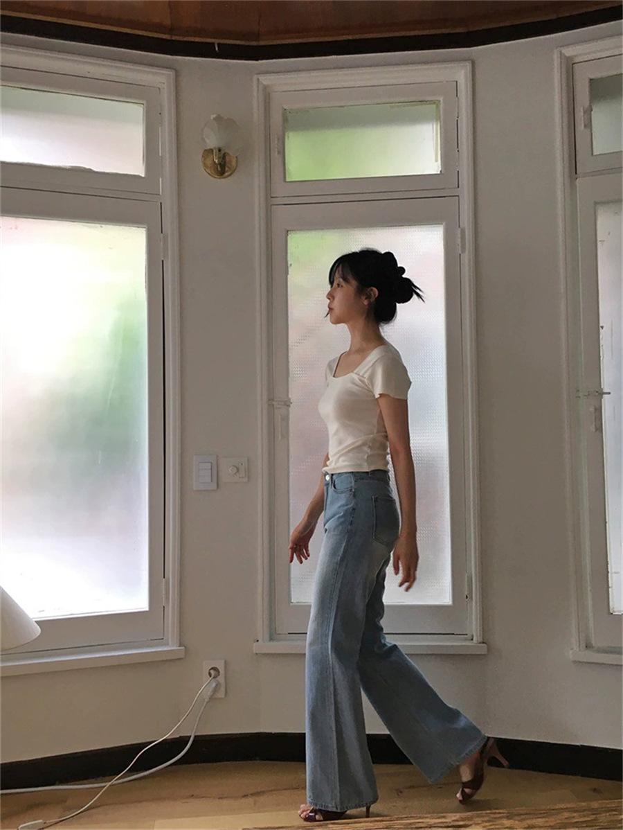 Silueta ligeramente acampanada, ajustada en la parte superior y holgada en la parte inferior, favorece las líneas de las piernas,