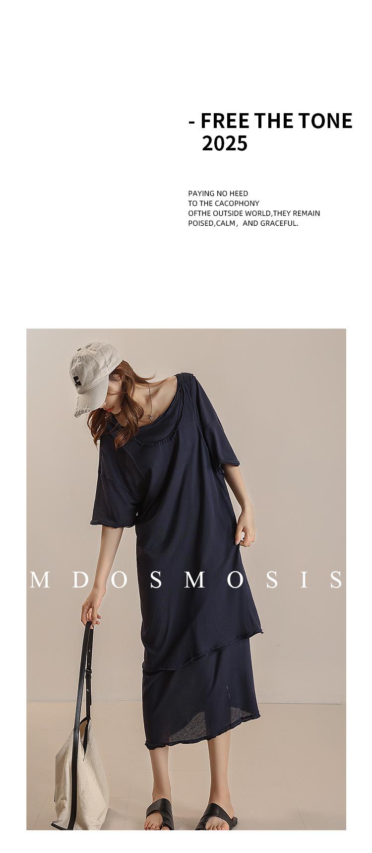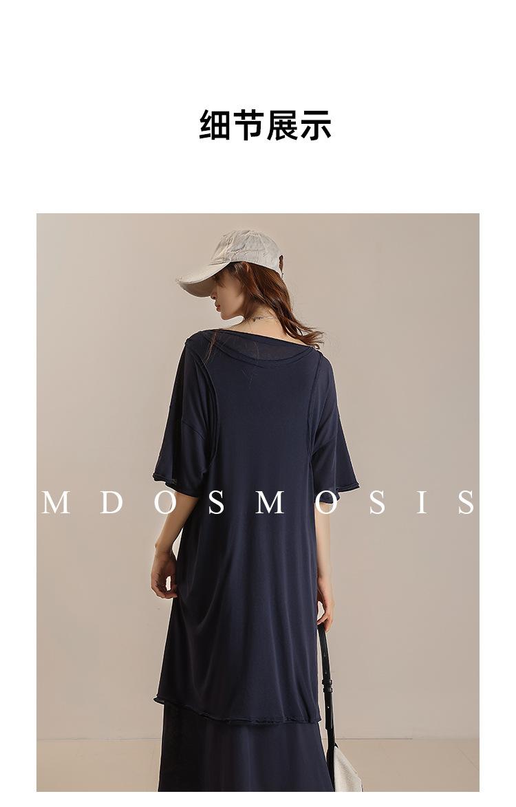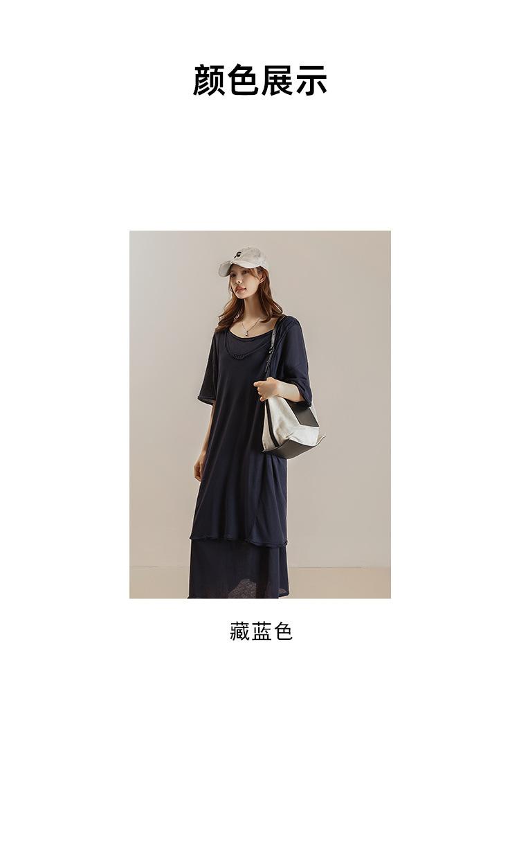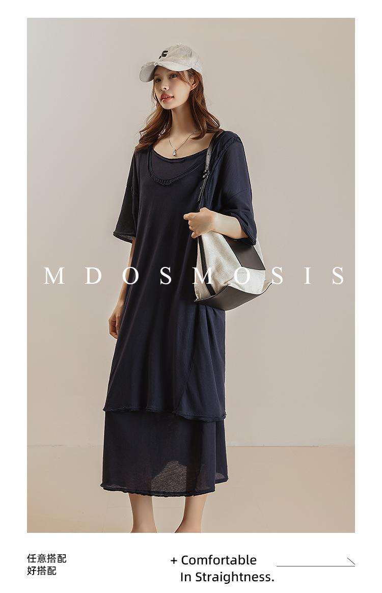 Verano para Mujer Conjunto de Tres Piezas Relajado en Capas de Dos Piezas Chaleco Camiseta Vestido Largo Algodón Puro Suave Drapeado Md5211