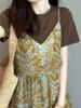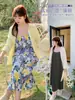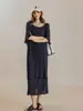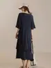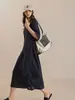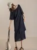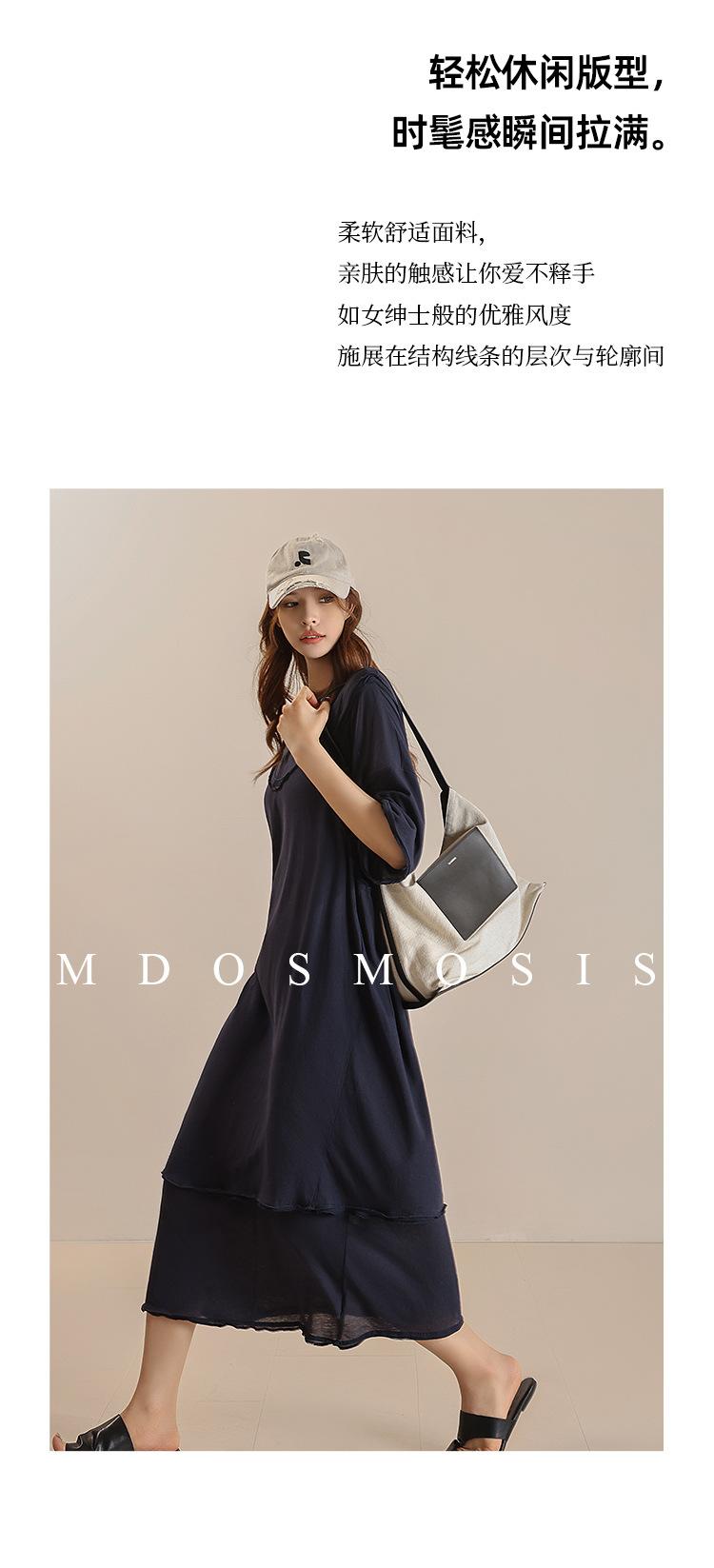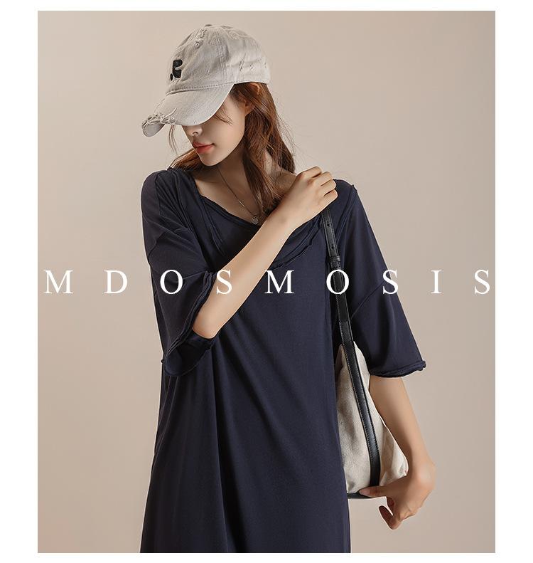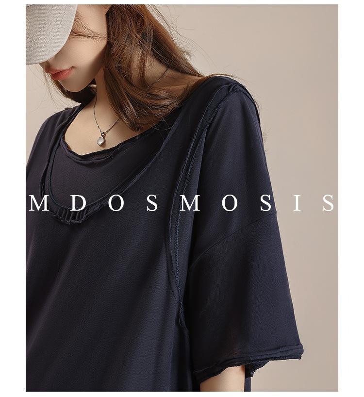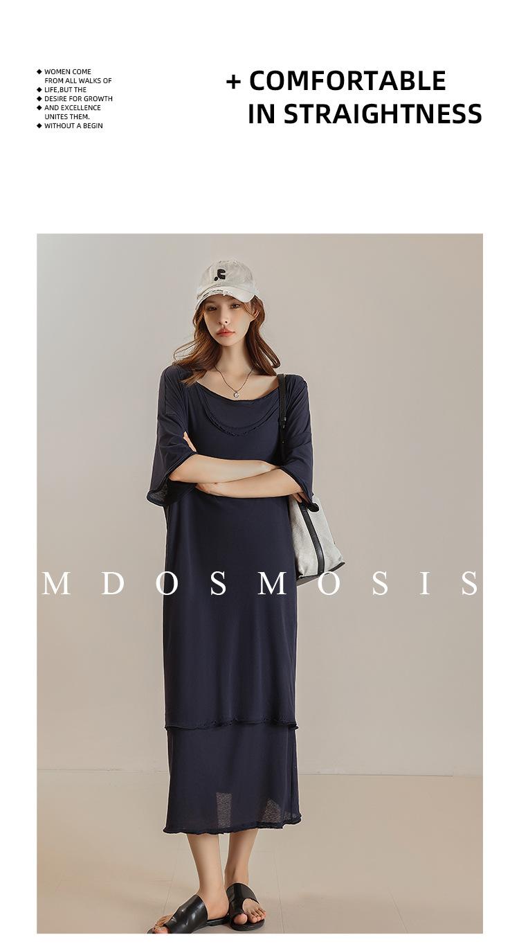 Verano para Mujer Conjunto de Tres Piezas Relajado en Capas de Dos Piezas Chaleco Camiseta Vestido Largo Algodón Puro Suave Drapeado Md5211