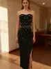Vestido de Noche Europeo y Americano Brillante con Cuentas Sexy Strapless Ajustado para Fiesta de Socialité, Banquete, Reunión Anual, Vendaje, Vestido de Noche