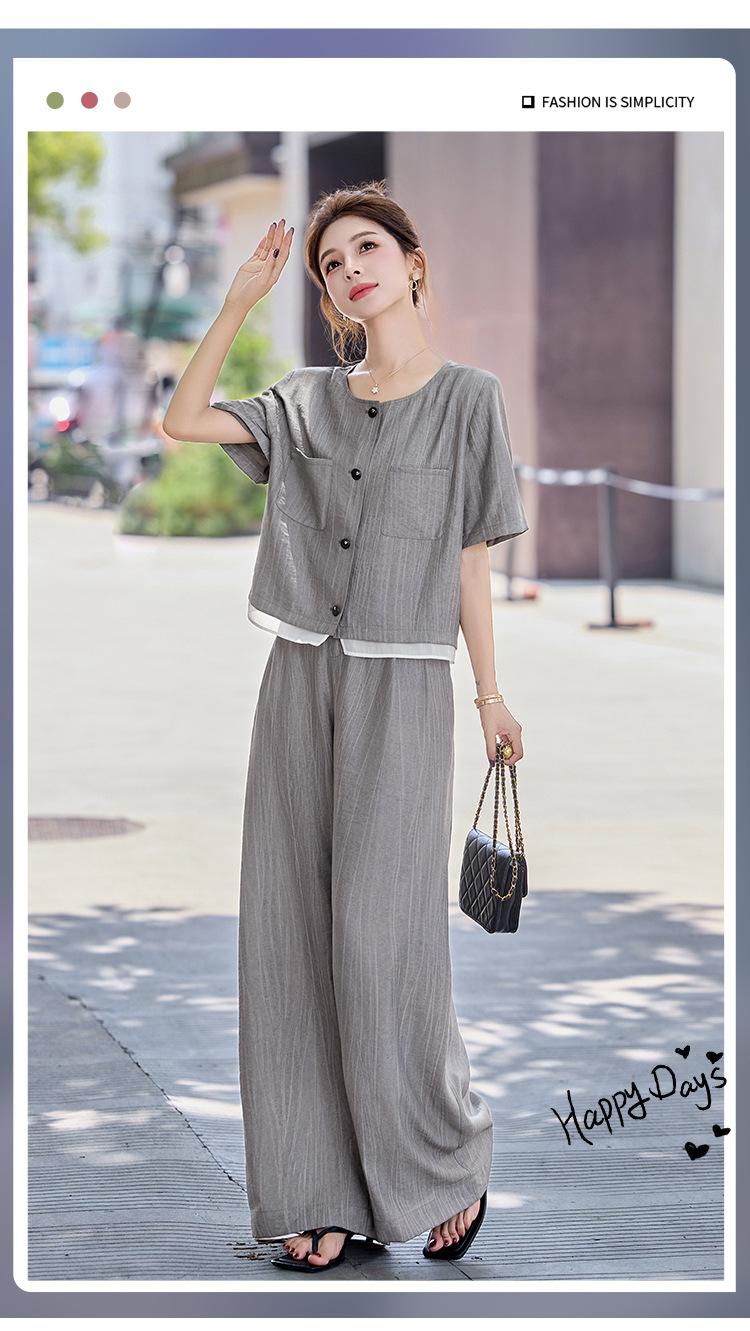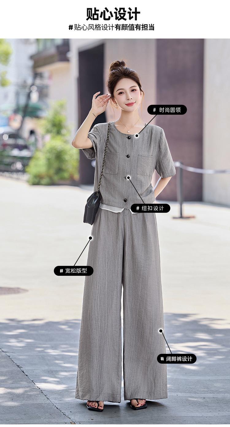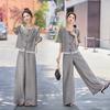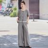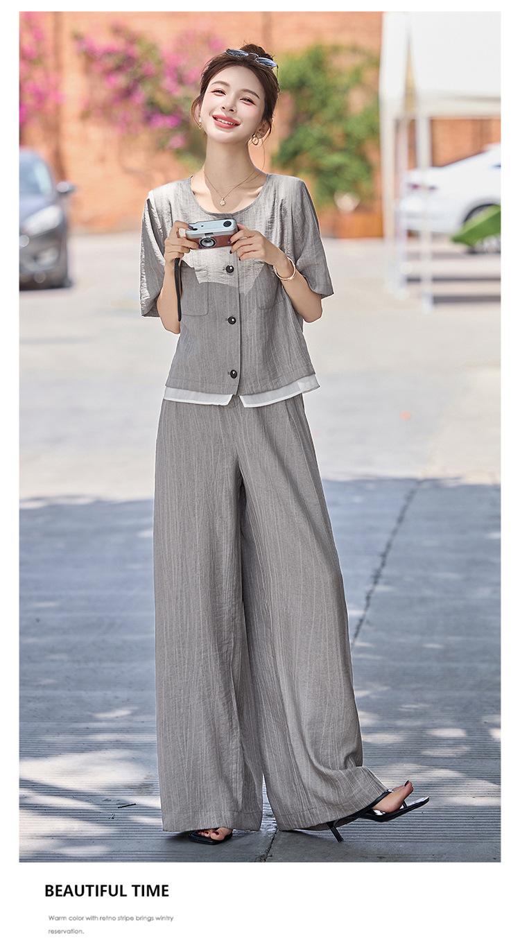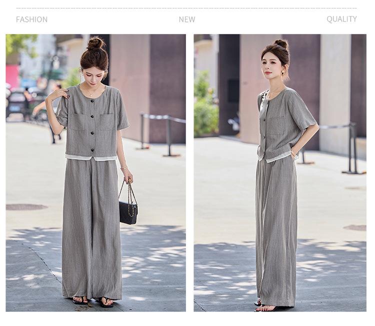 2025 Nuevo Conjunto de Moda de Verano de Dos Piezas para Mujer de Manga Corta Reductor de Edad Casual Elegante Pantalón de Pierna Ancha Trendy