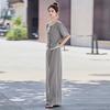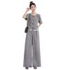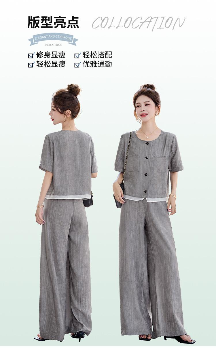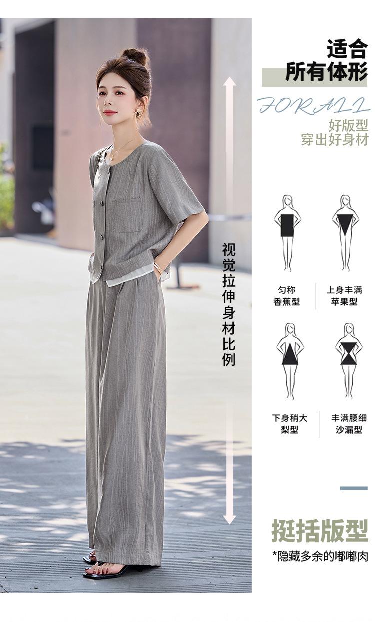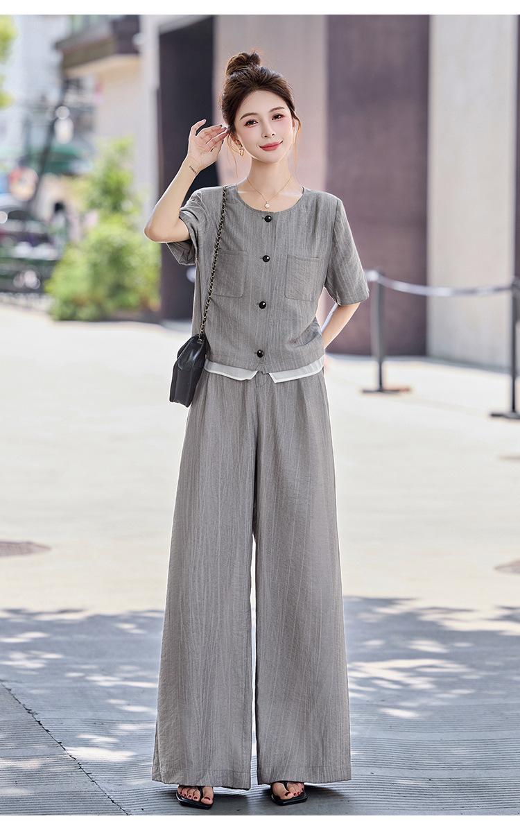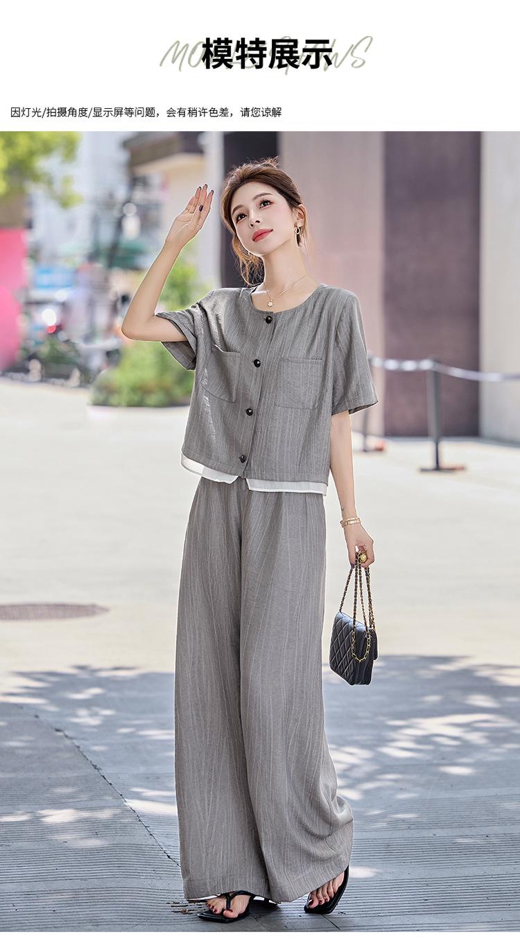 2025 Nuevo Conjunto de Moda de Verano de Dos Piezas para Mujer de Manga Corta Reductor de Edad Casual Elegante Pantalón de Pierna Ancha Trendy