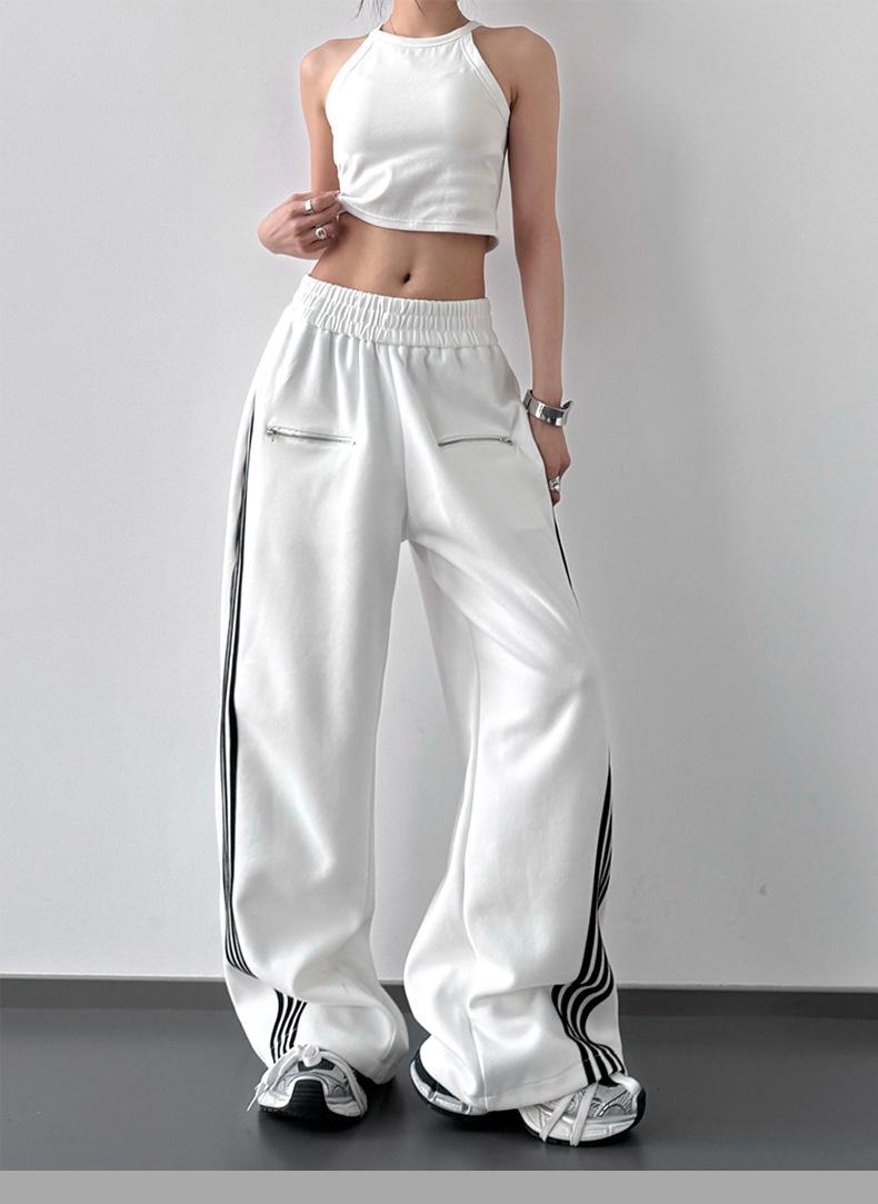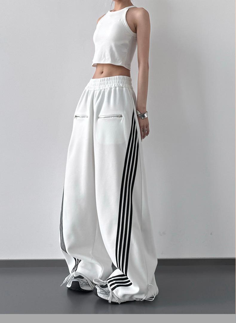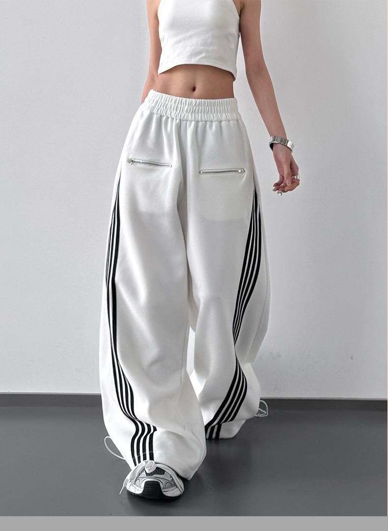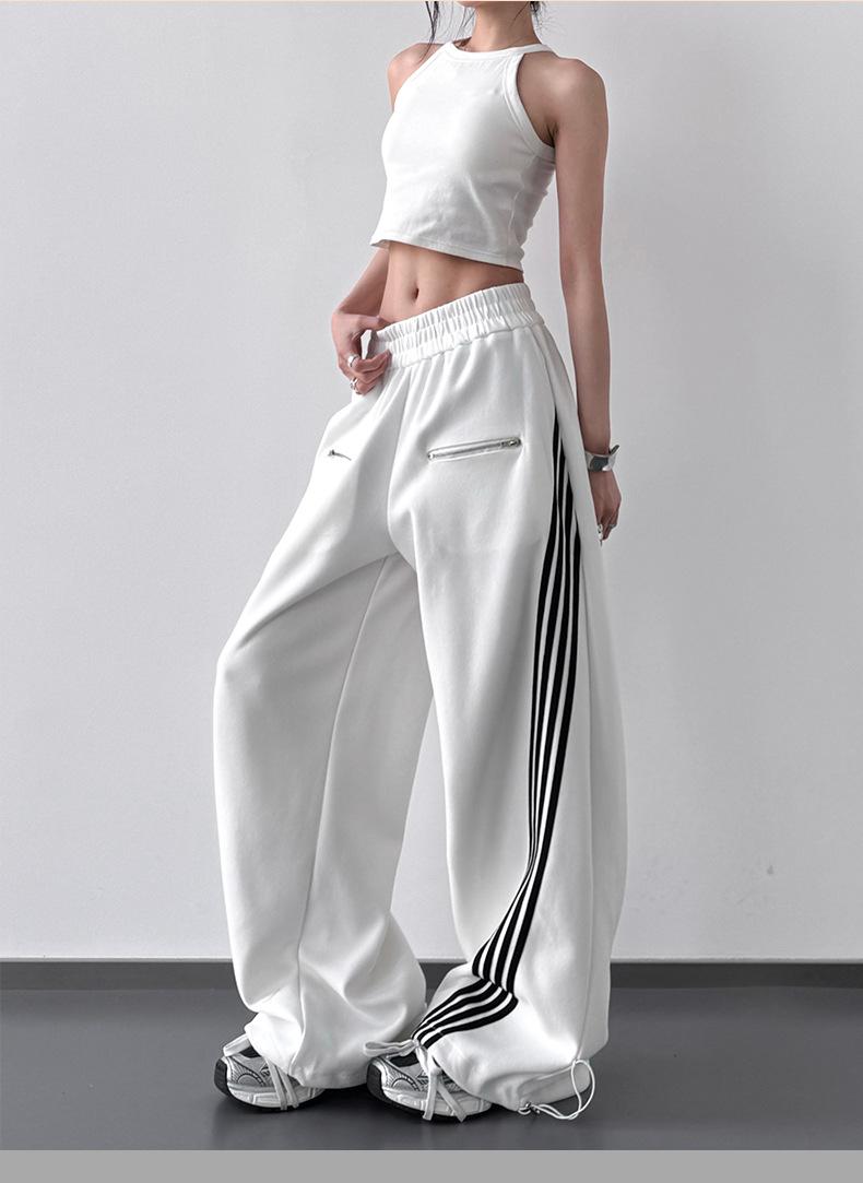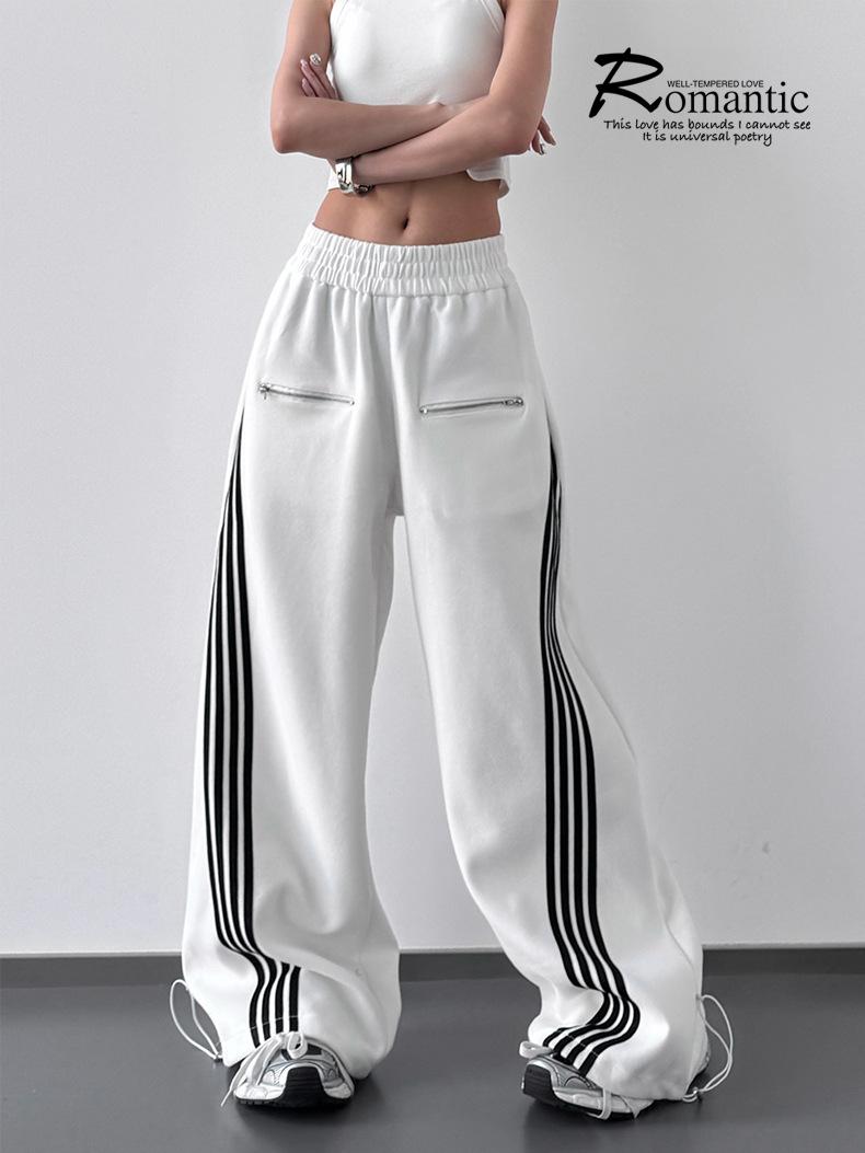 Pantalones Casuales American Street Sports para Mujer 2024 Otoño Nuevo Pantalones Holgados de Pierna Ancha con Raya Lateral Pantalones Deportivos Lazy