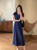 Vestido midi de estilo resort atmosférico con falda floral con abertura trasera, cuello cisne, escote en V para mujer 2025 verano
