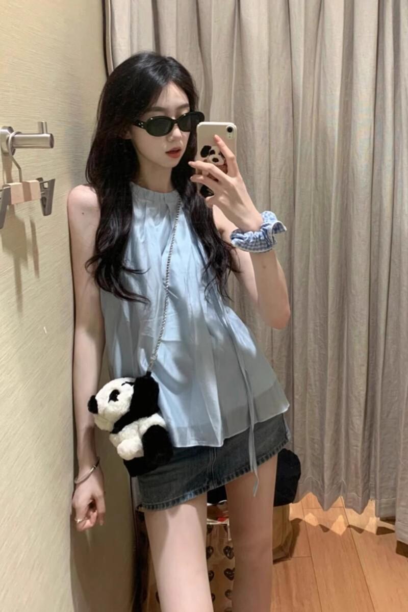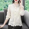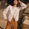 Camisa francesa dulce de alta gama con cuello en los hombros para mujer, elegante camisa de gasa con cordones y efecto reductor de edad de verano, fina