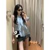 Camiseta de manga corta estilo retro chic americano de algodón puro para mujer en verano, estilo coreano, holgada, de marca de moda, de media manga, con estampado 3D