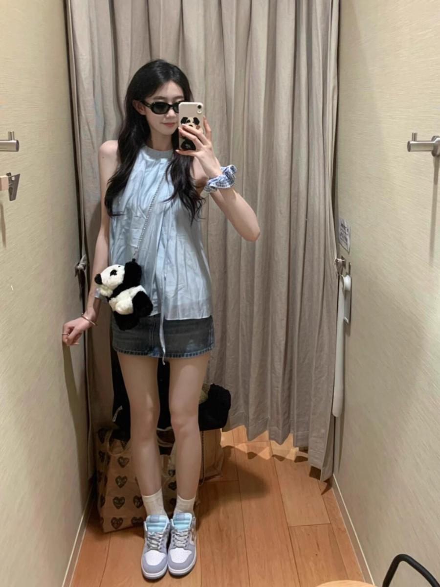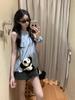 Camiseta de algodón de manga corta de verano 2025 para mujer, estilo coreano, holgada, de media manga y cuello redondo, 23036#