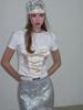Camiseta de manga corta irregular para mujer, nuevo diseño de verano 2025, top corto de cintura alta y manga corta con diseño de nicho.