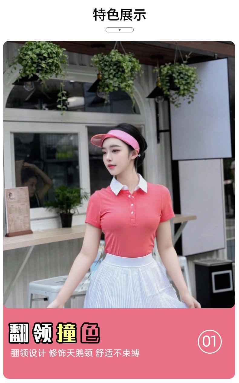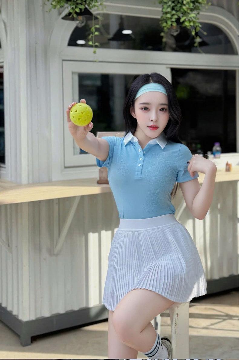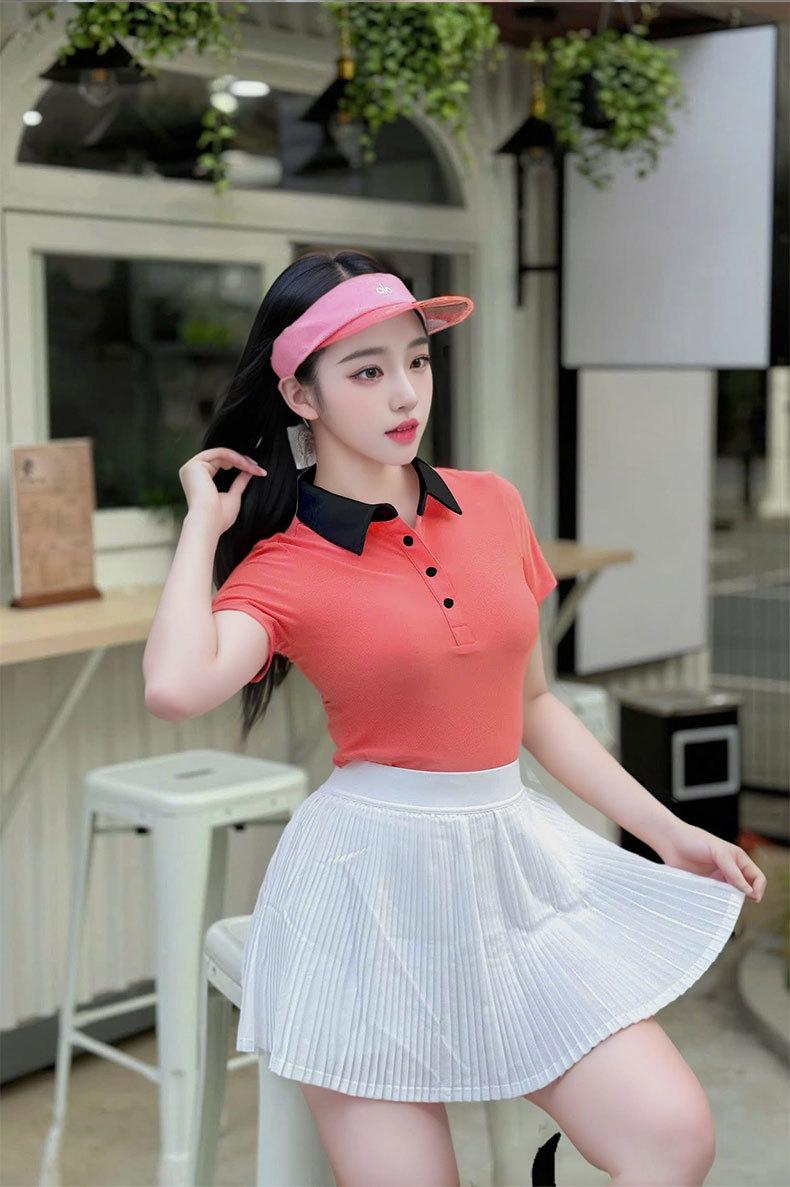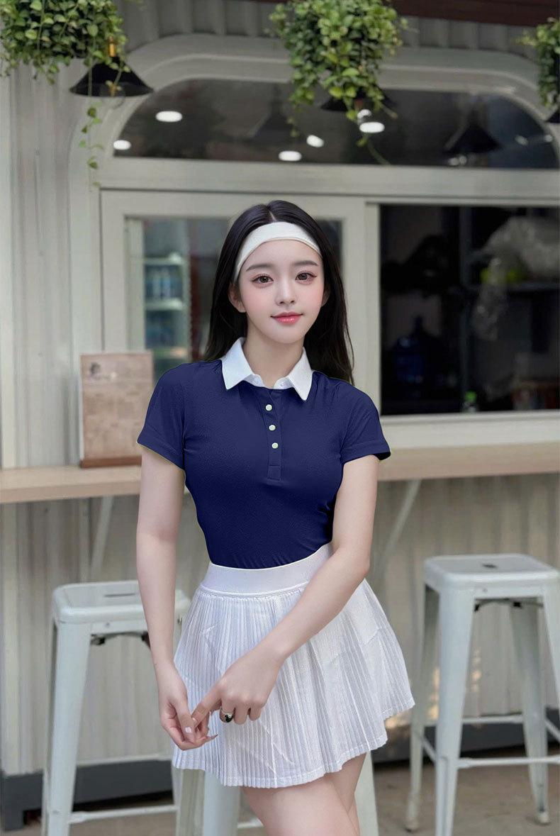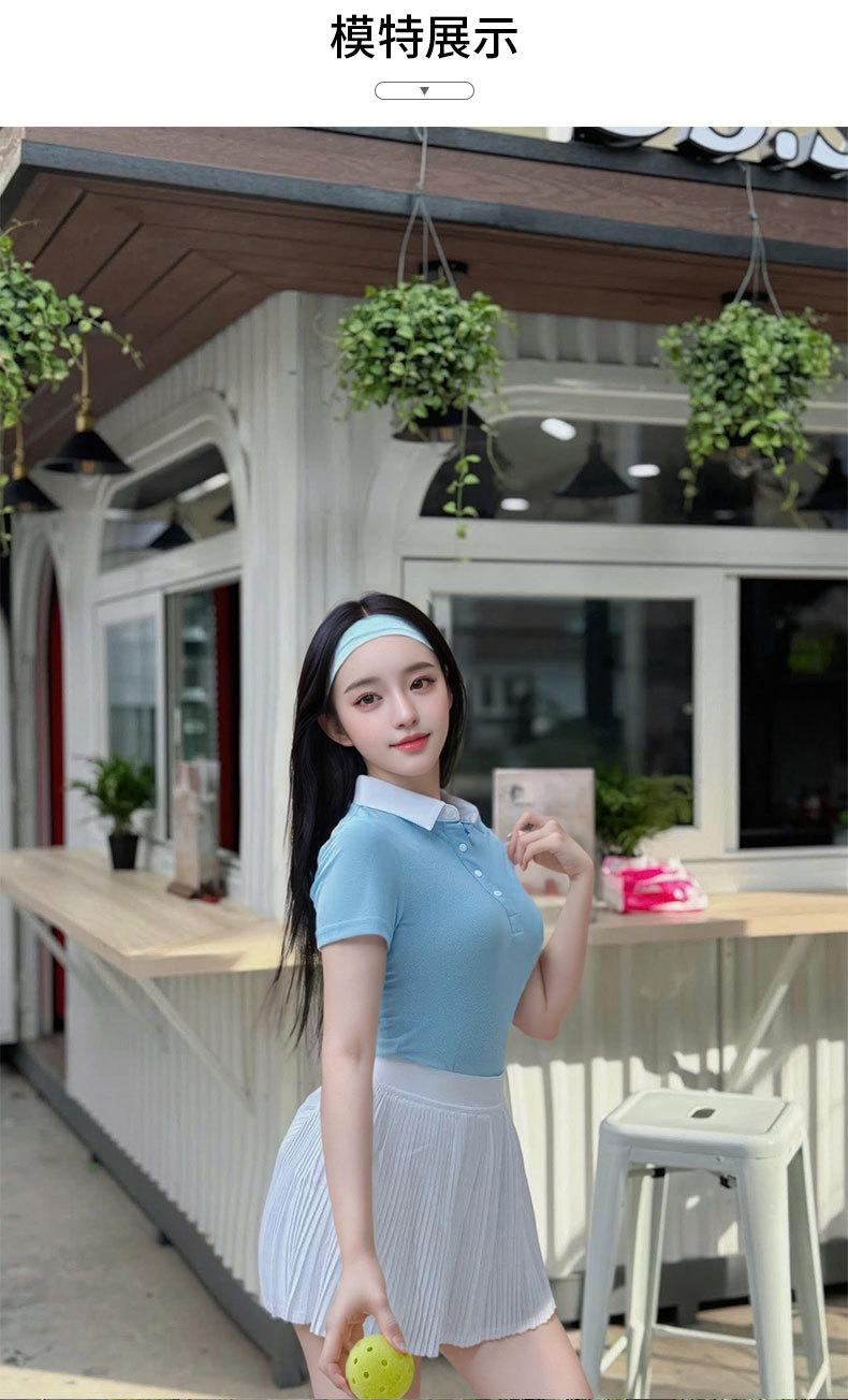 Nueva Camiseta Polo de Color Contrastante para Mujer Slim Solapa Manga Corta Camiseta Hombro Derecho Deportes Fitness Bádminton Tenis Top