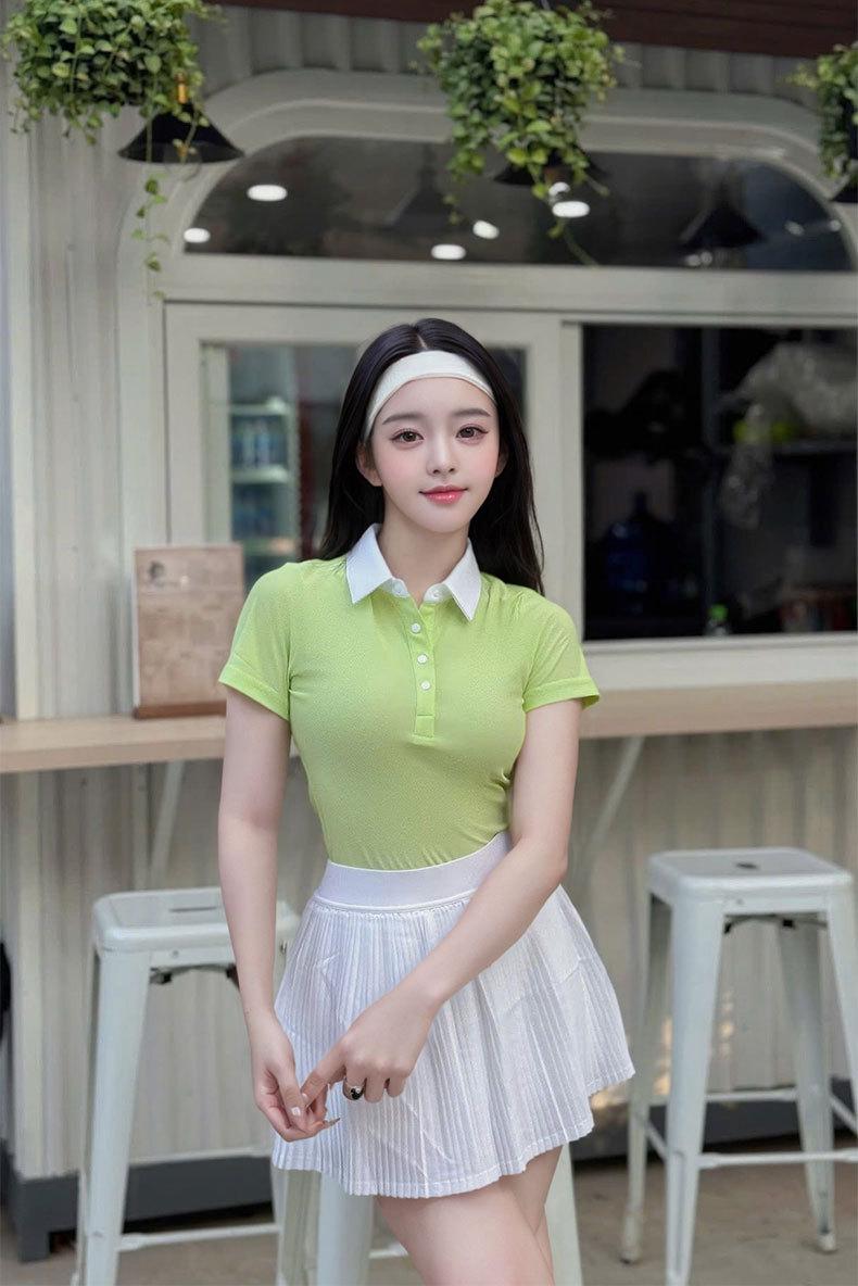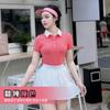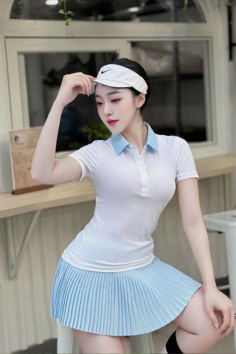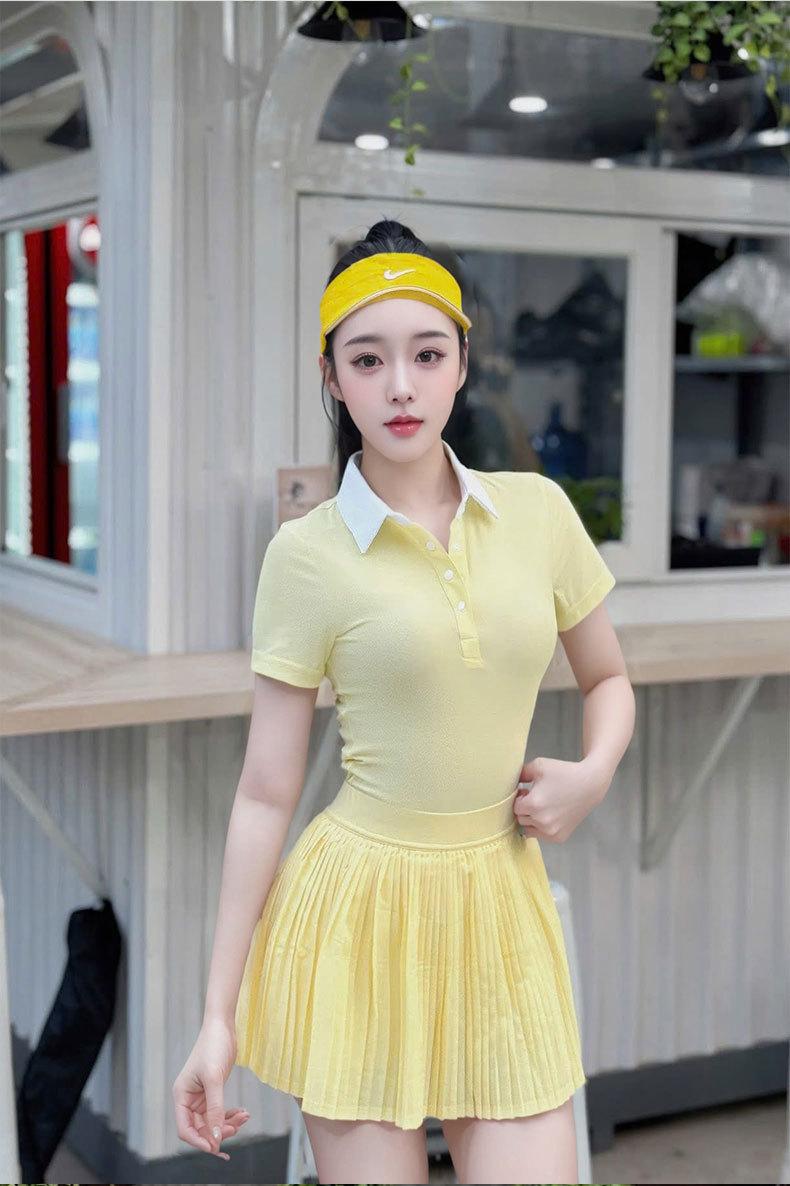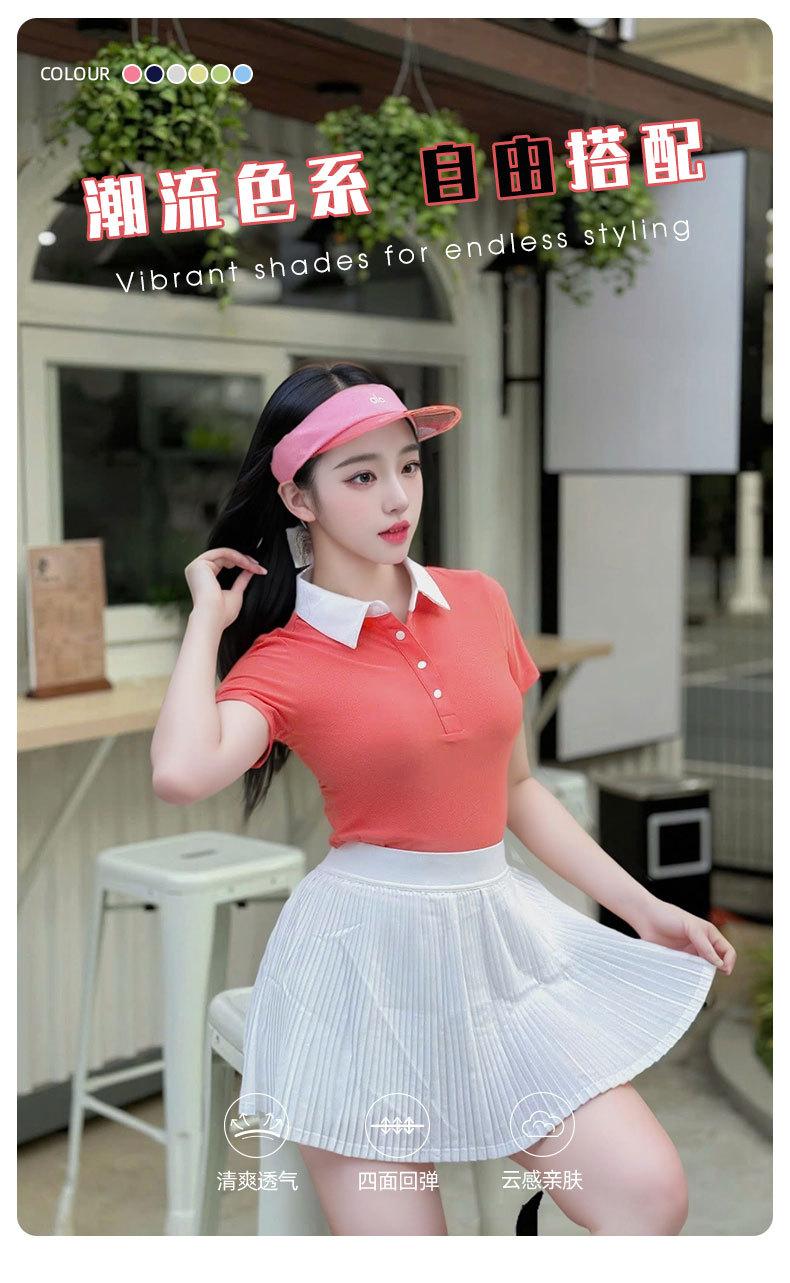 Nueva Camiseta Polo de Color Contrastante para Mujer Slim Solapa Manga Corta Camiseta Hombro Derecho Deportes Fitness Bádminton Tenis Top