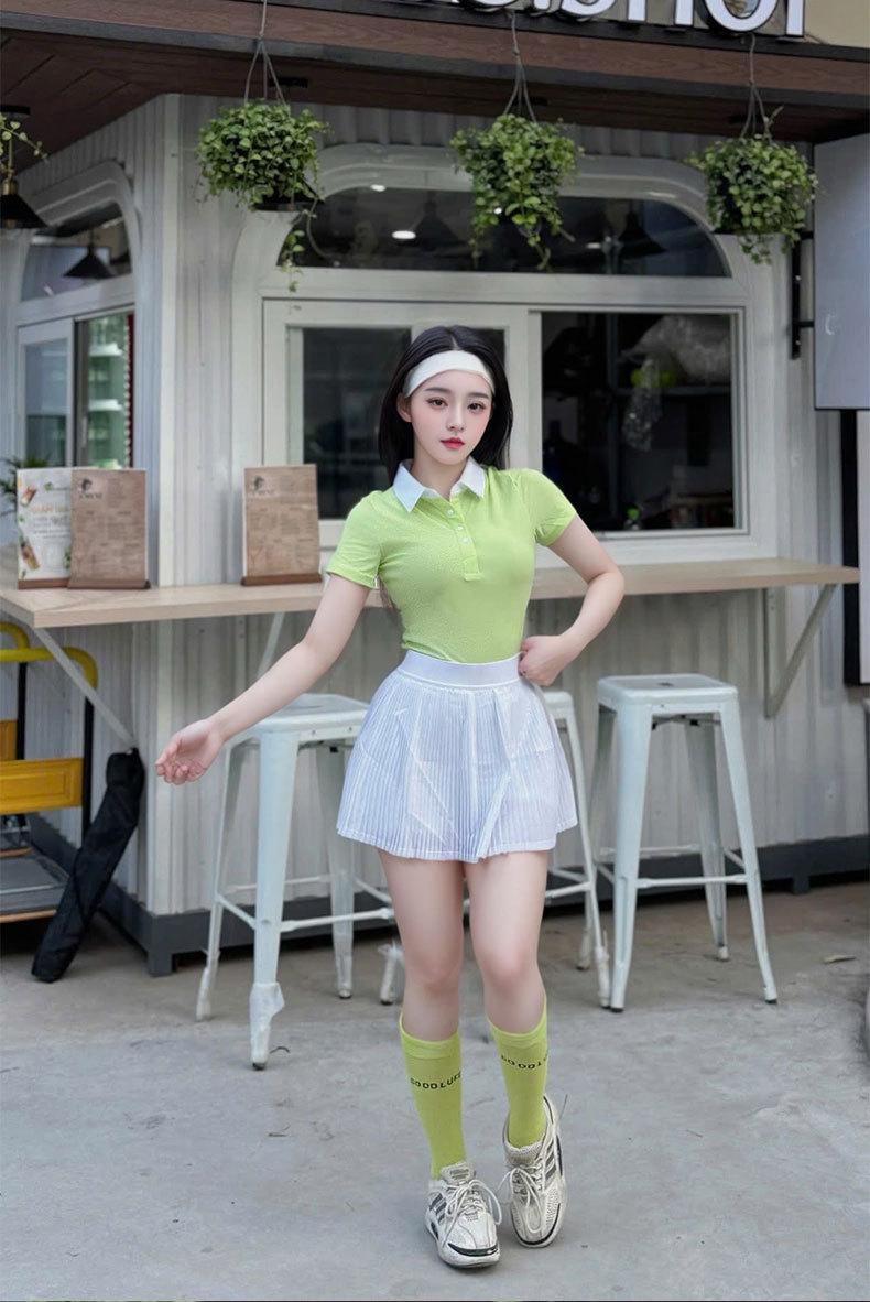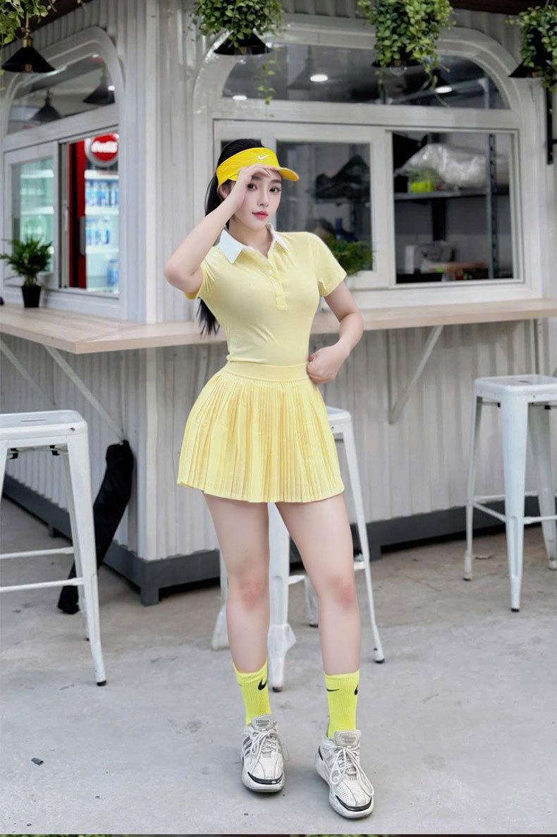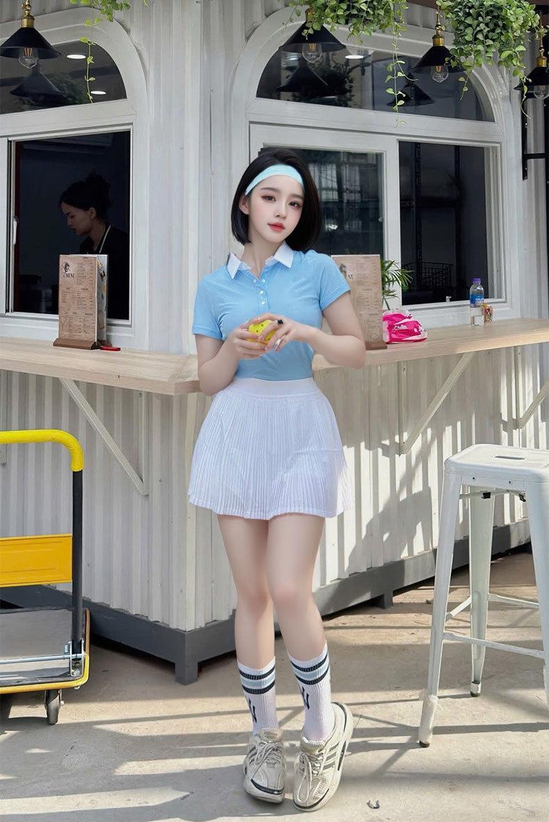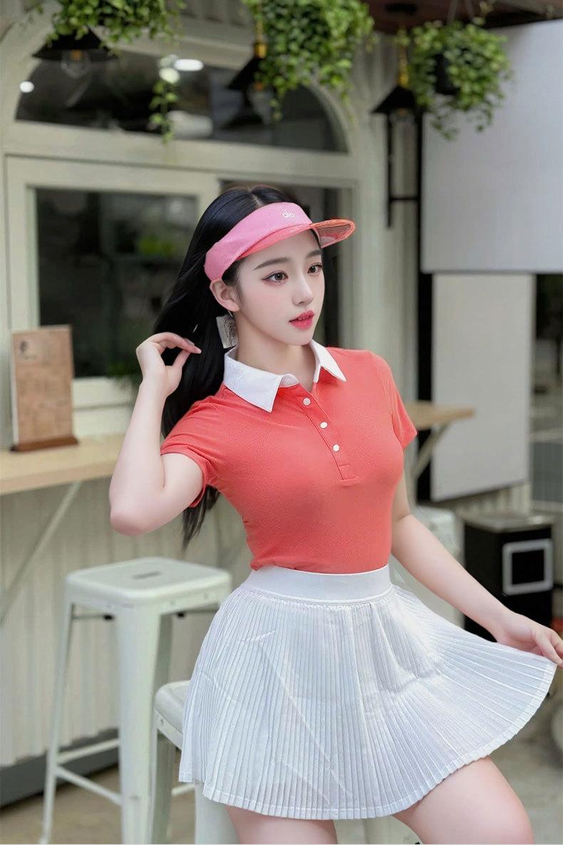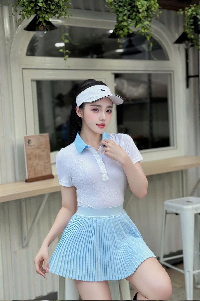 Nueva Camiseta Polo de Color Contrastante para Mujer Slim Solapa Manga Corta Camiseta Hombro Derecho Deportes Fitness Bádminton Tenis Top