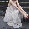 Verano 2025 Nuevo Estilo Resort Costero Playa Hermoso Vestido Largo Halter Blanco Francés de Socialité para Mujer