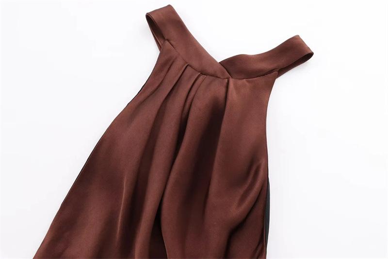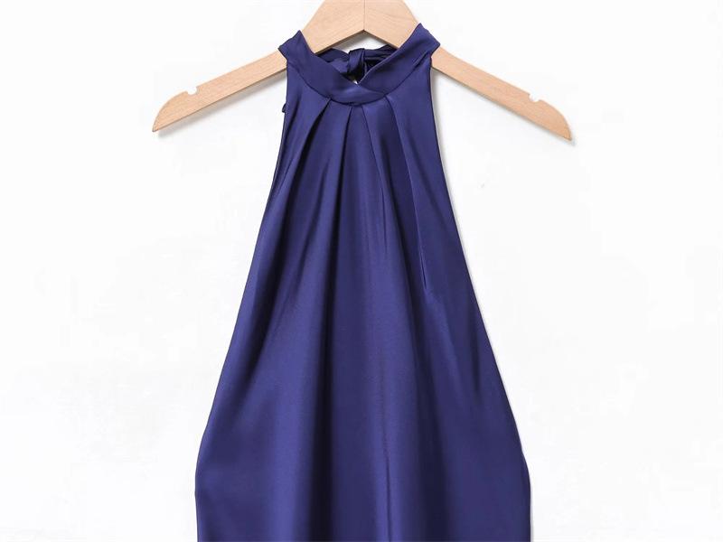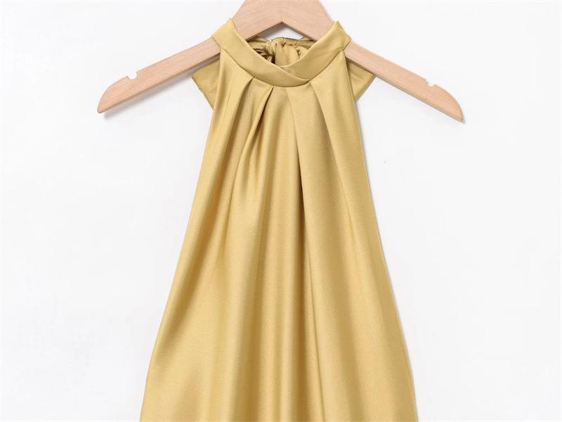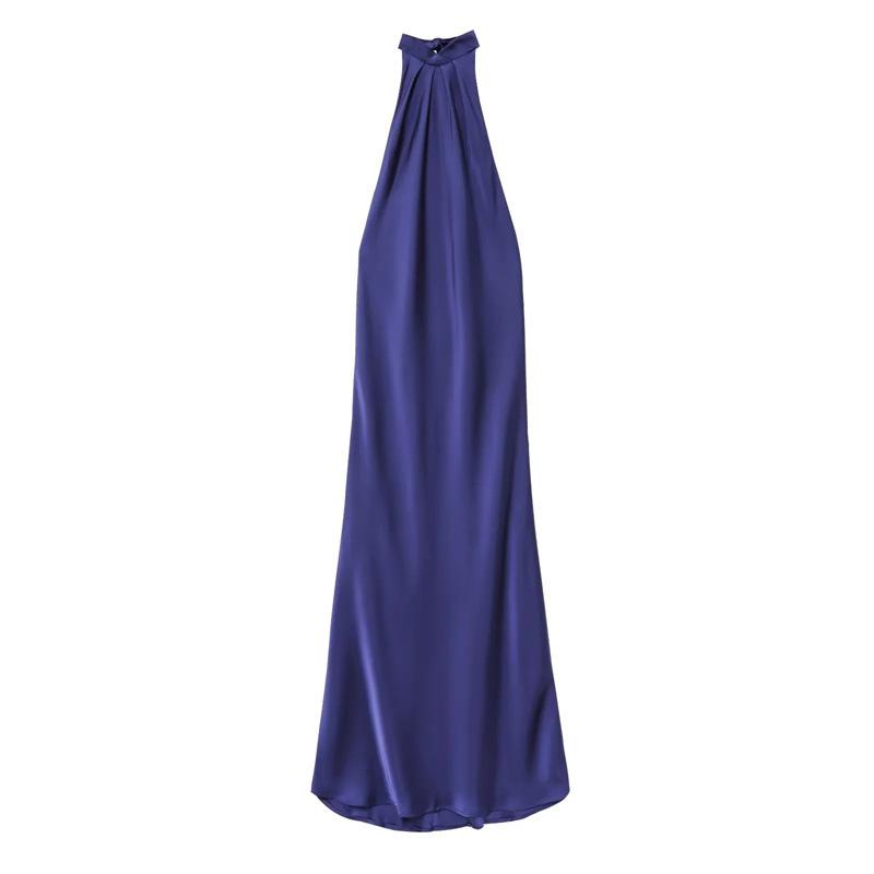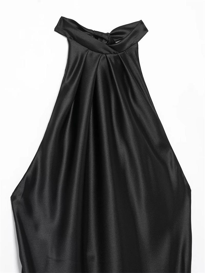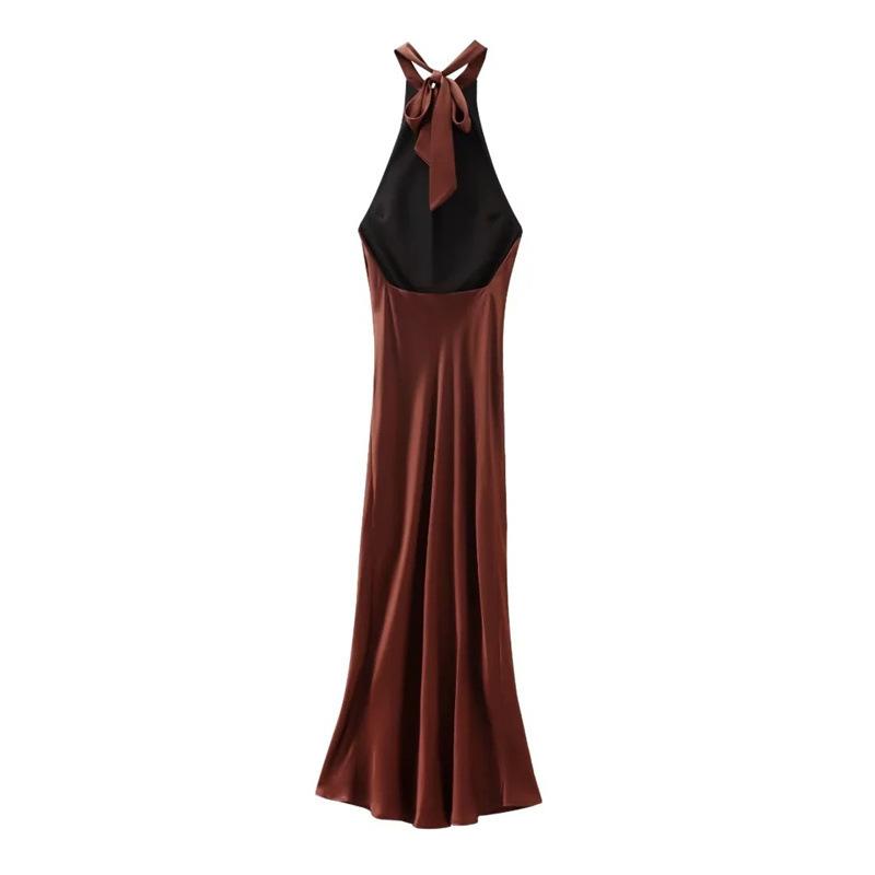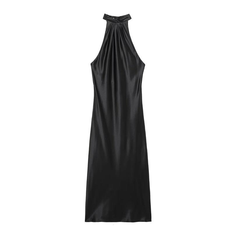 2025 Nuevo Verano Vestido de Mujer Estilo Europeo y Americano Sexy Ajustado Descubierto Textura de Satén de Seda Falda Larga 3274548