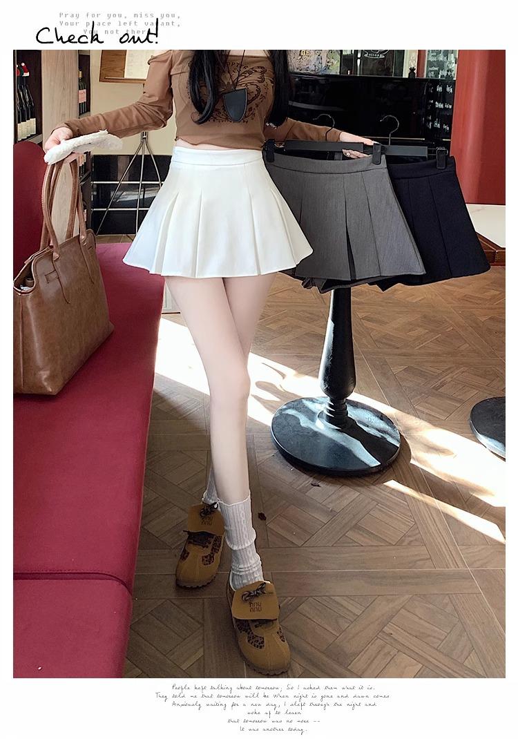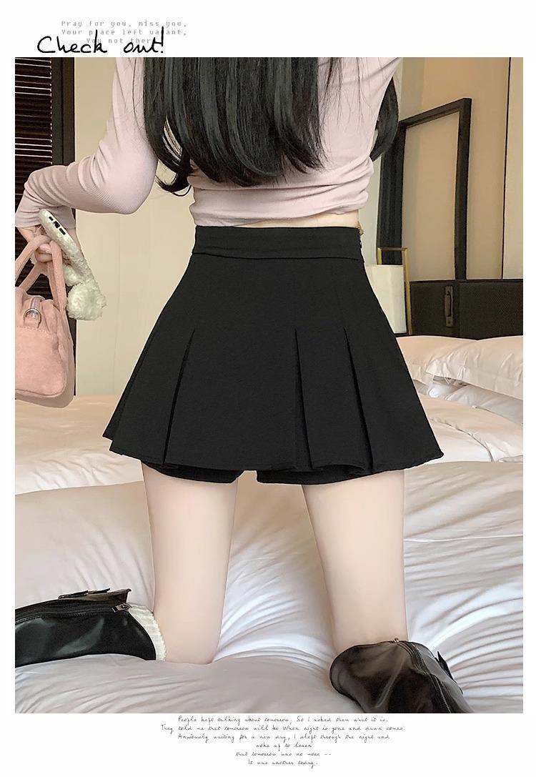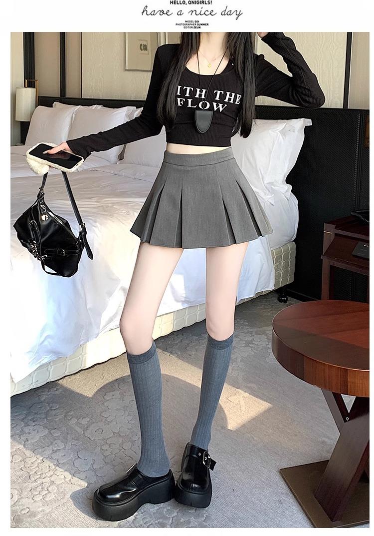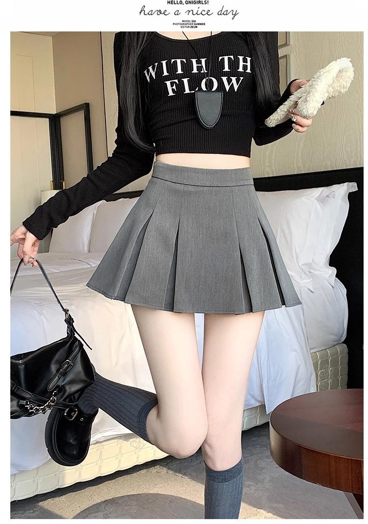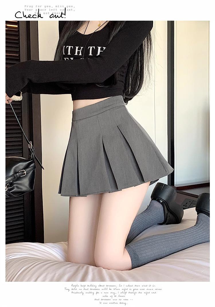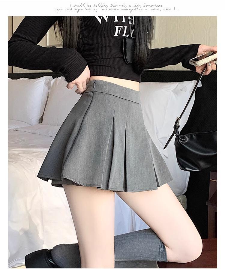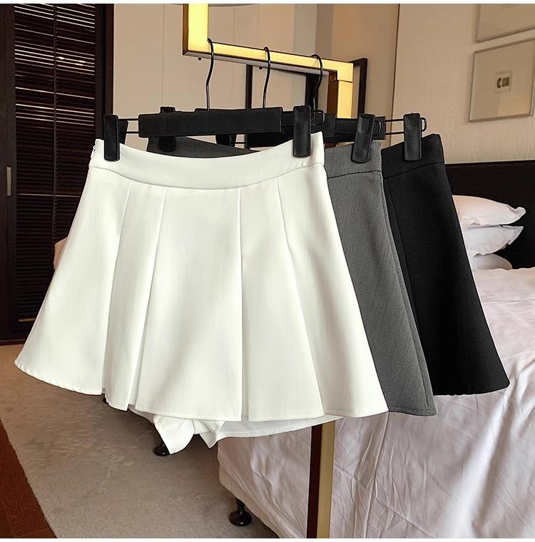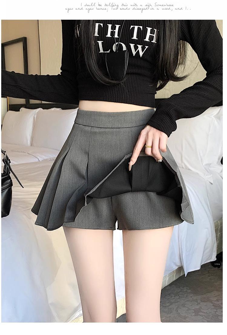 Falda de Traje Gris para Mujer, Falda Corta Petite para Primavera y Otoño, Falda Pantalón Versátil de Cintura Alta Adelgazante Anti-Exposición con Pliegues en A