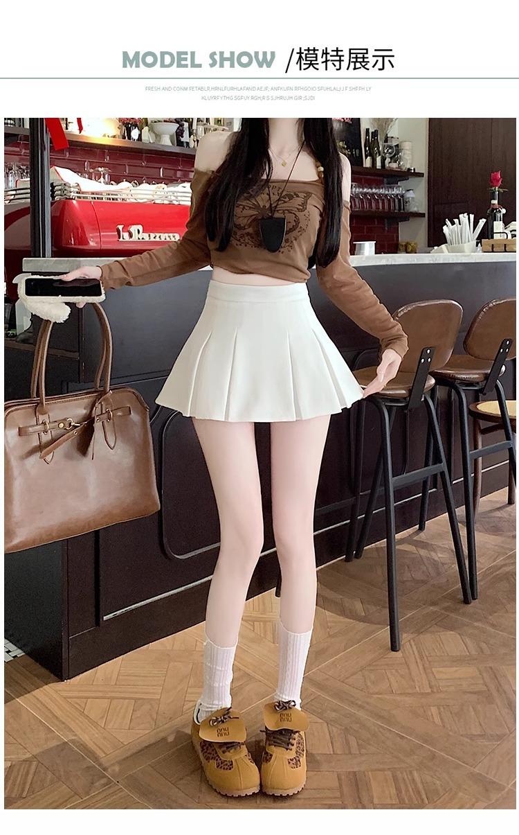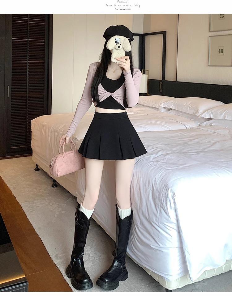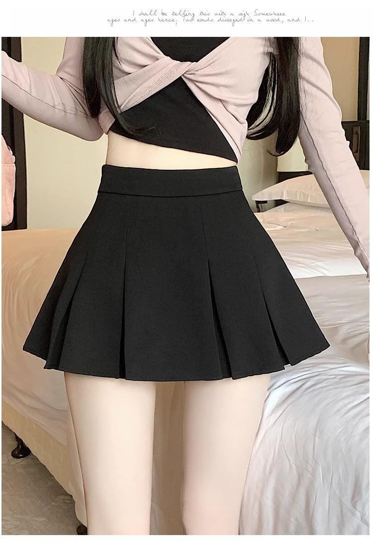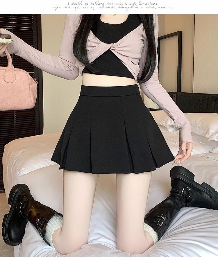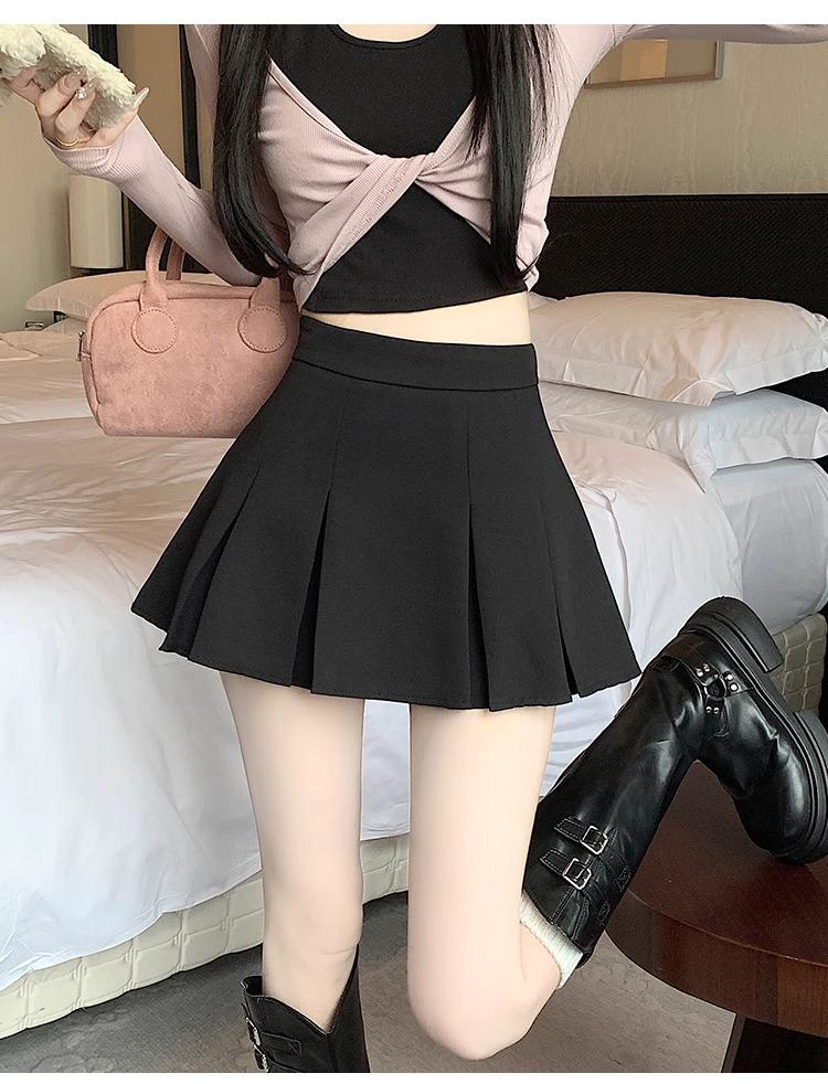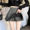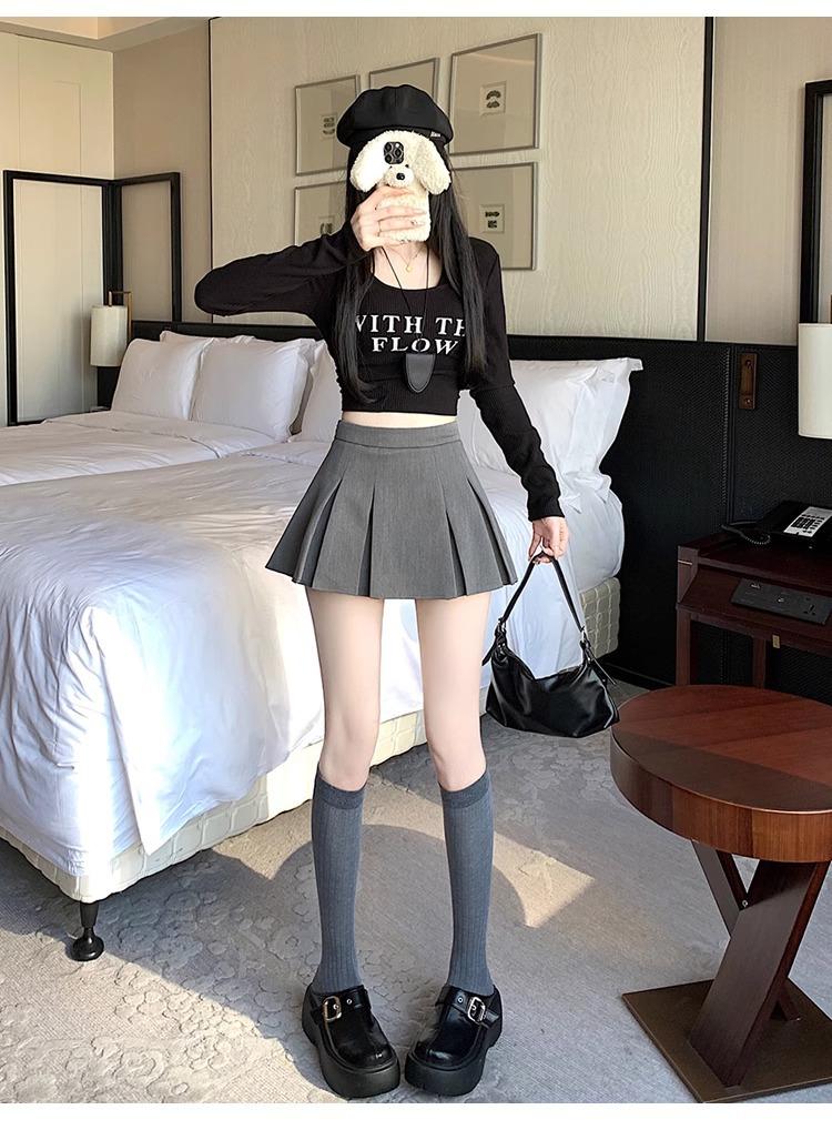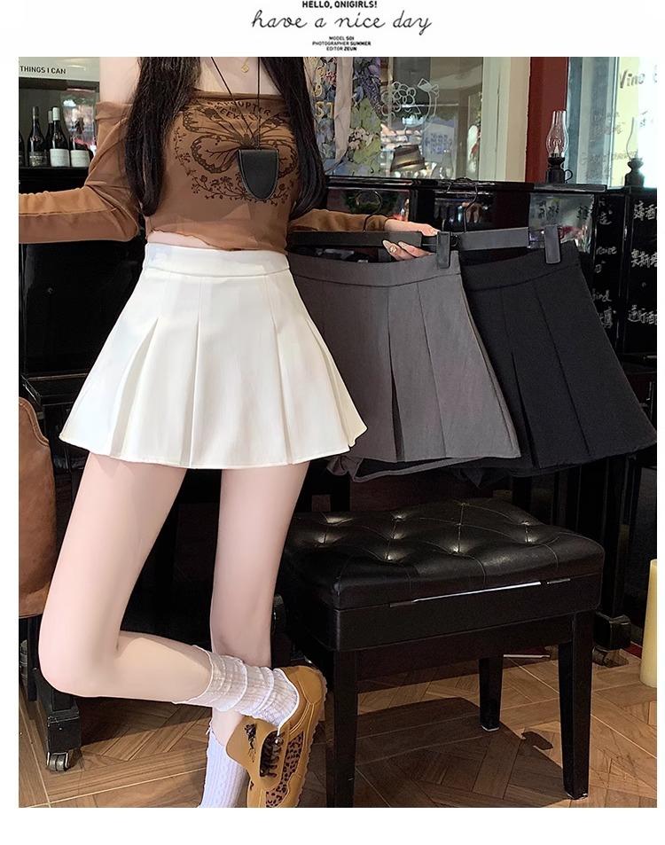 Falda de Traje Gris para Mujer, Falda Corta Petite para Primavera y Otoño, Falda Pantalón Versátil de Cintura Alta Adelgazante Anti-Exposición con Pliegues en A