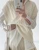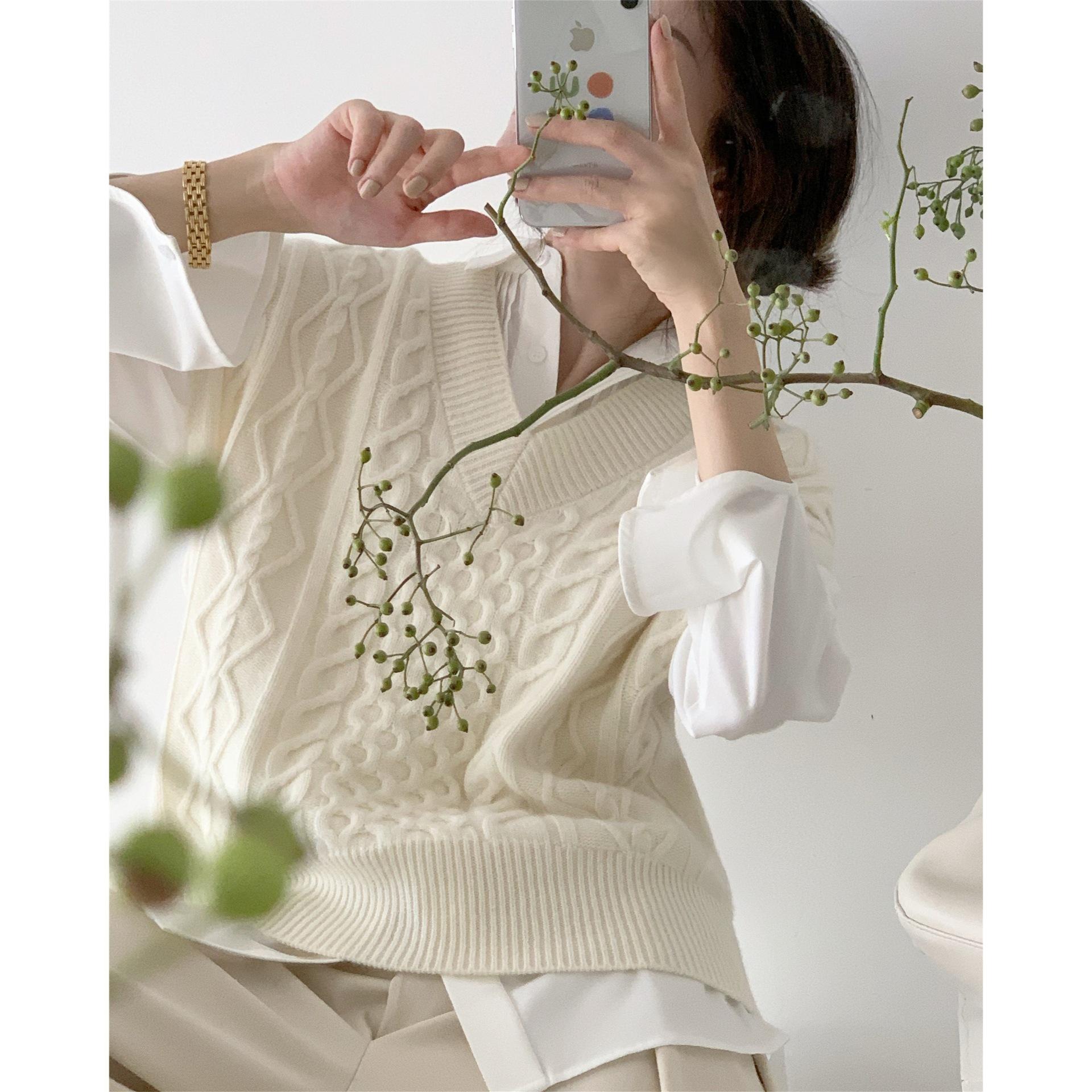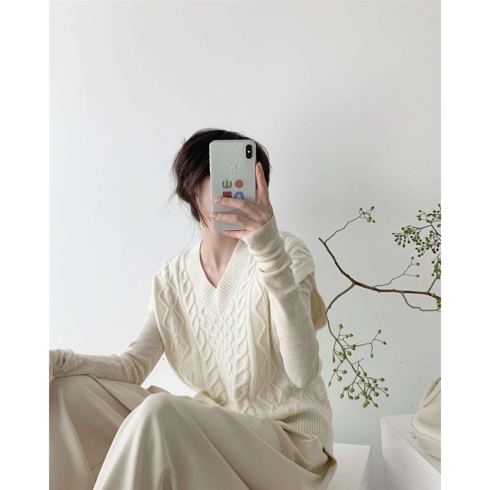 Primavera y Otoño 2025 Nuevo Estilo Coreano Trendy Ins Casual Estilo Diosa Calidad Grande Cuello en V Cable Blanco Lana Chaleco