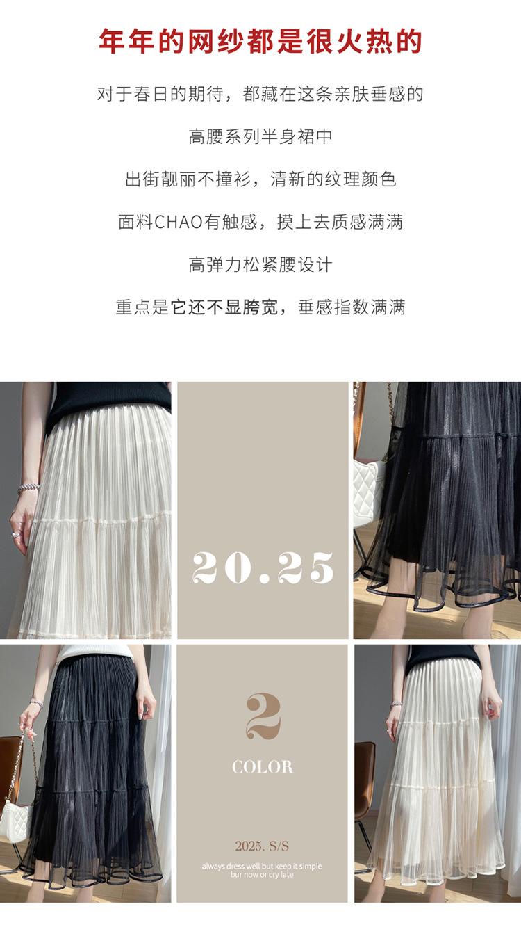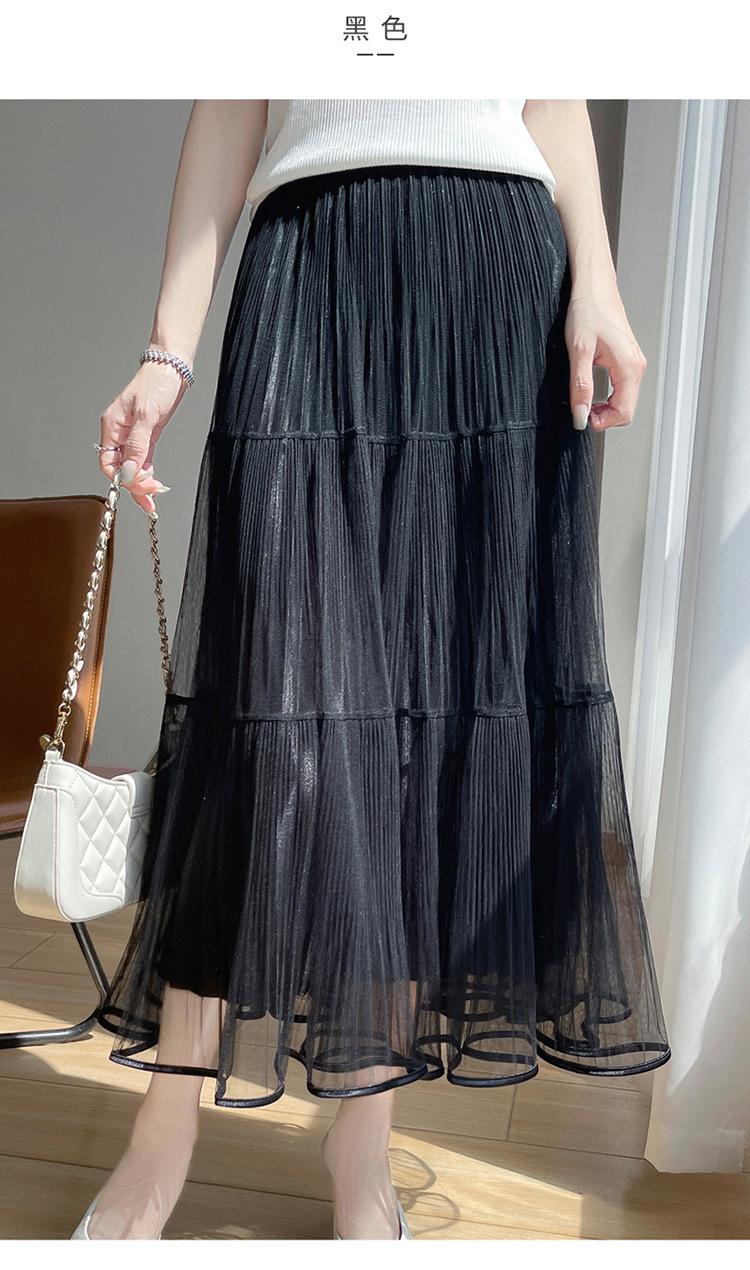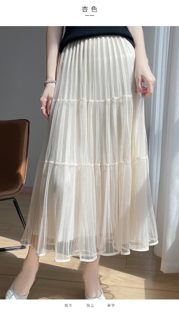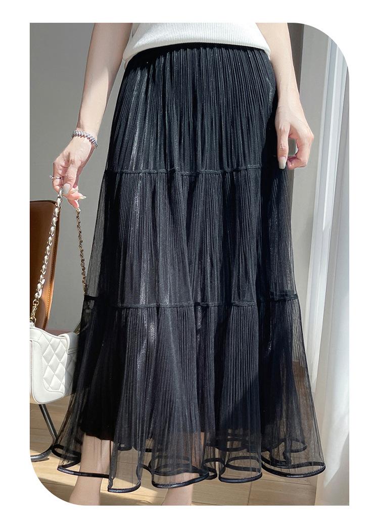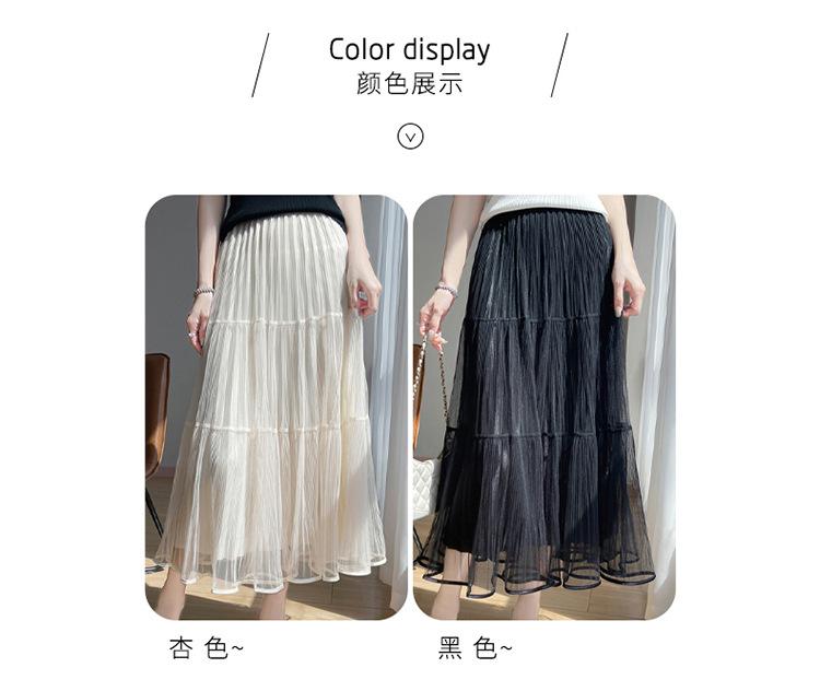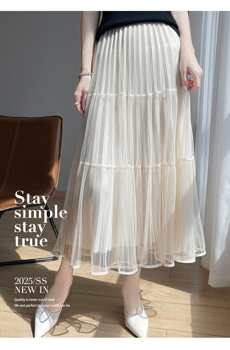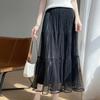 25 Primavera y Verano Nuevo Estilo Francés Retro Plisado Malla Dobladillo Grande Empalme Falda Línea A Dobladillo Grande Falda Paraguas Falda