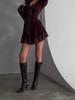 Vestido Corto de Malla con Encaje de Hoja de Loto y Manga Campana, Elegante y Maduro, Color Puro, Escote en V Profundo, Primavera 2025