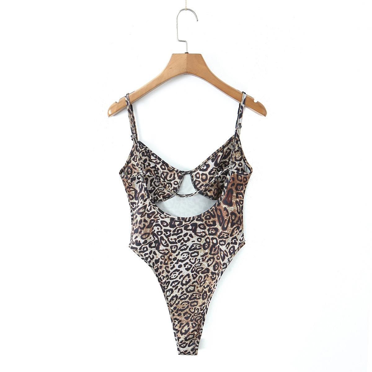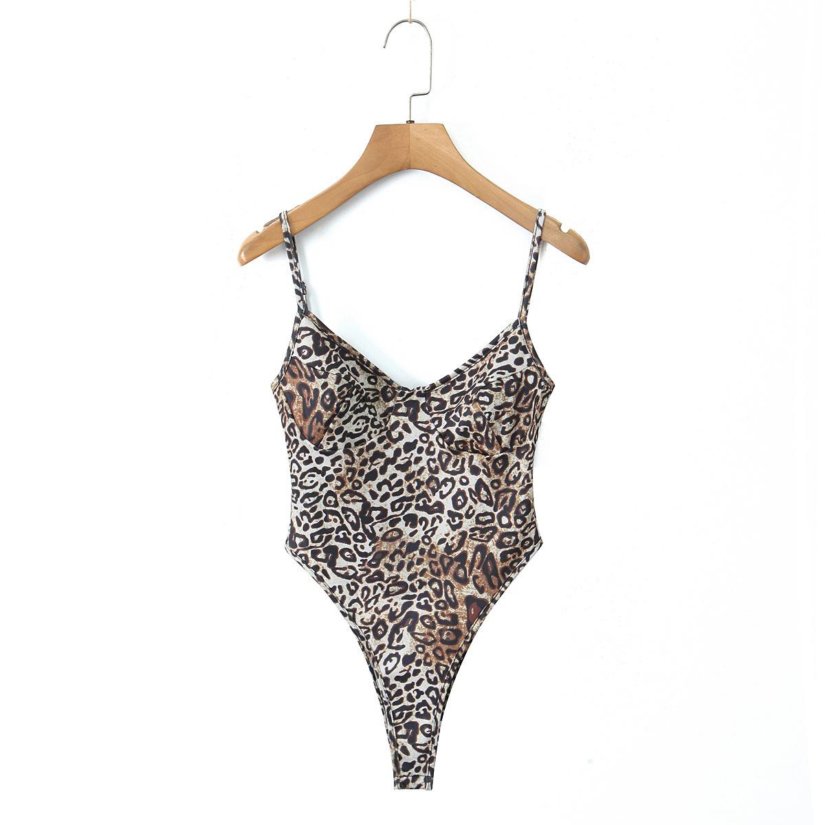Top de Mujer Europeo y Americano Transfronterizo 2025 Primavera y Verano Nuevo Moda Casual Sexy Espalda Descubierta Estampado de Leopardo Ajustado