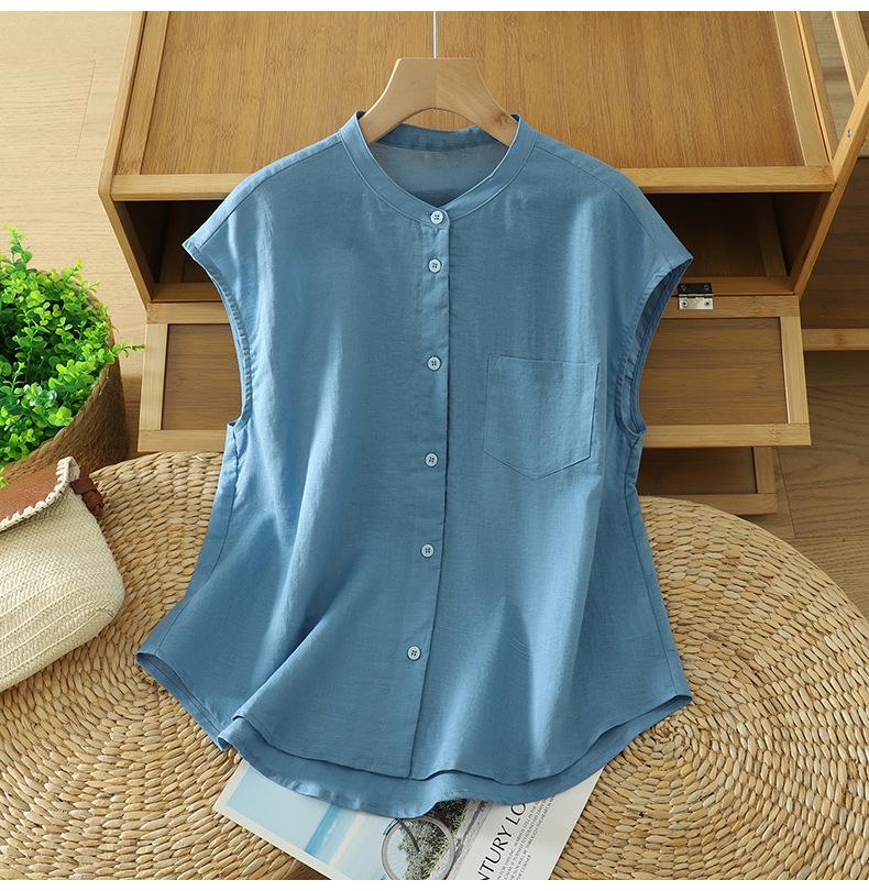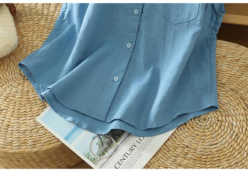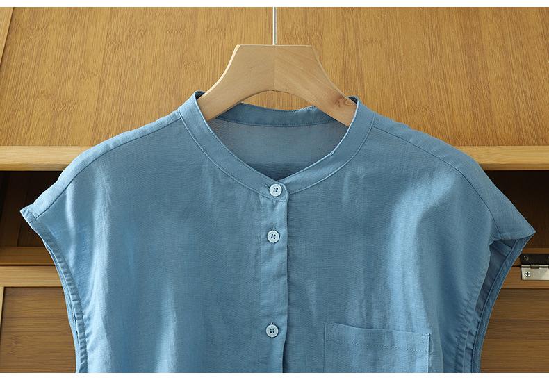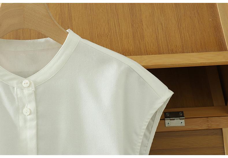 2025 Verano Clásico para Ir al Trabajo Algodón y Lino Transpirable Cuello Redondo Camiseta sin Mangas