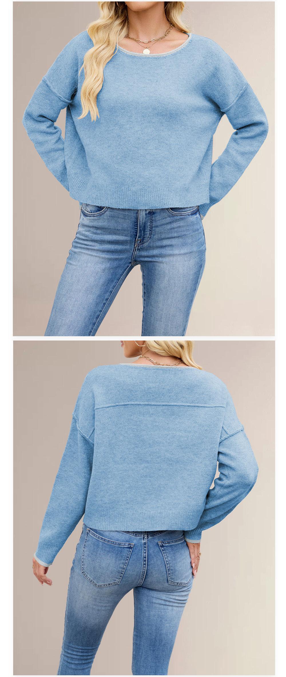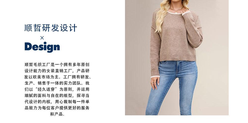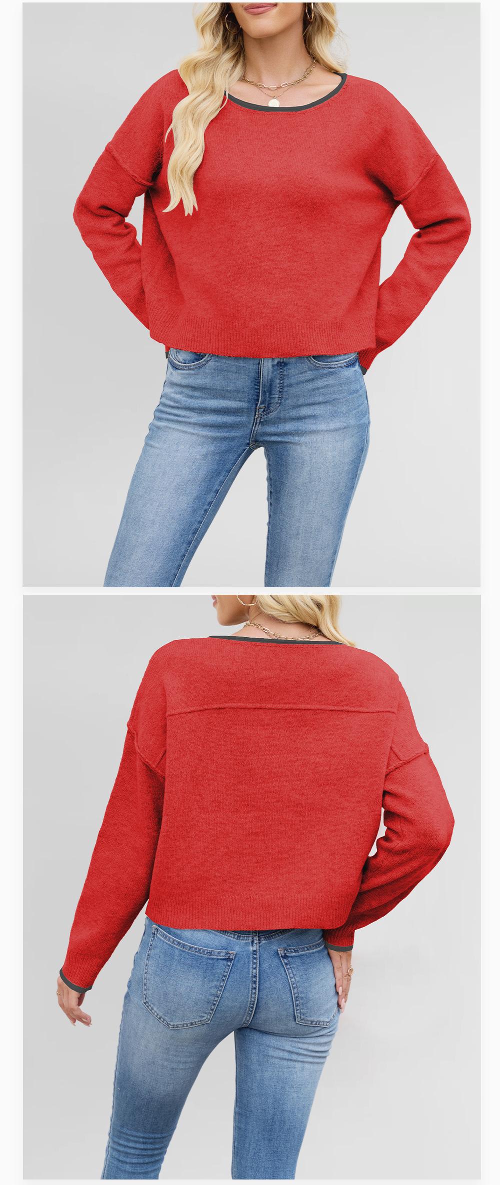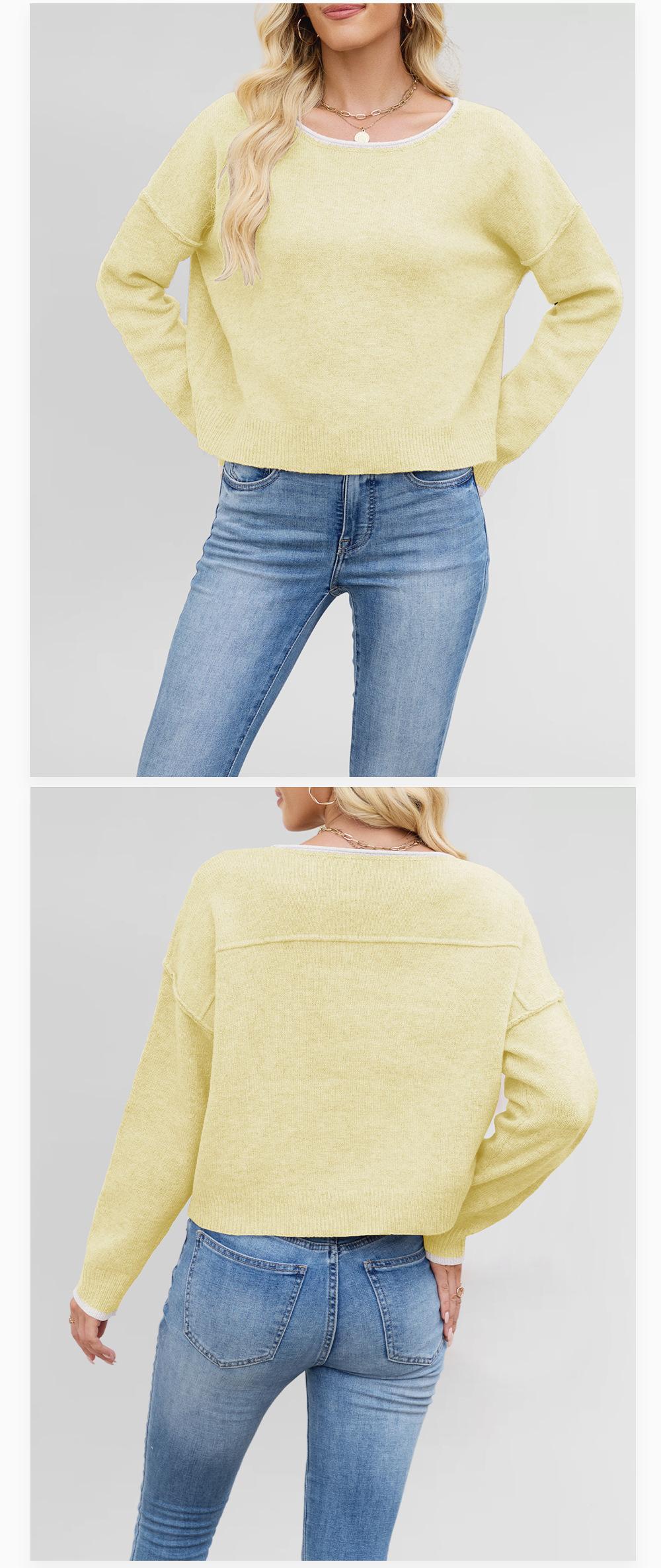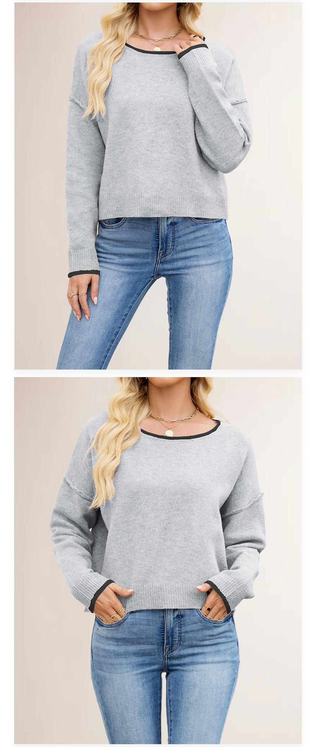Ropa de Mujer Transfronteriza Nueva Europea y Americana 2025 Más Vendida Otoño e Invierno Tejidos de Punto de Cuello Redondo con Bloques de Color Suéteres de Punto Holgados y Versátiles