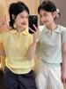 Compra Polo de Hombro Derecho Estilo Americano Amarillo Tejido de Seda de Hielo de Manga Corta para Mujer Verano Look Adelgazante Top con Cierre Corto al por mayor en Joom.pro