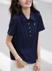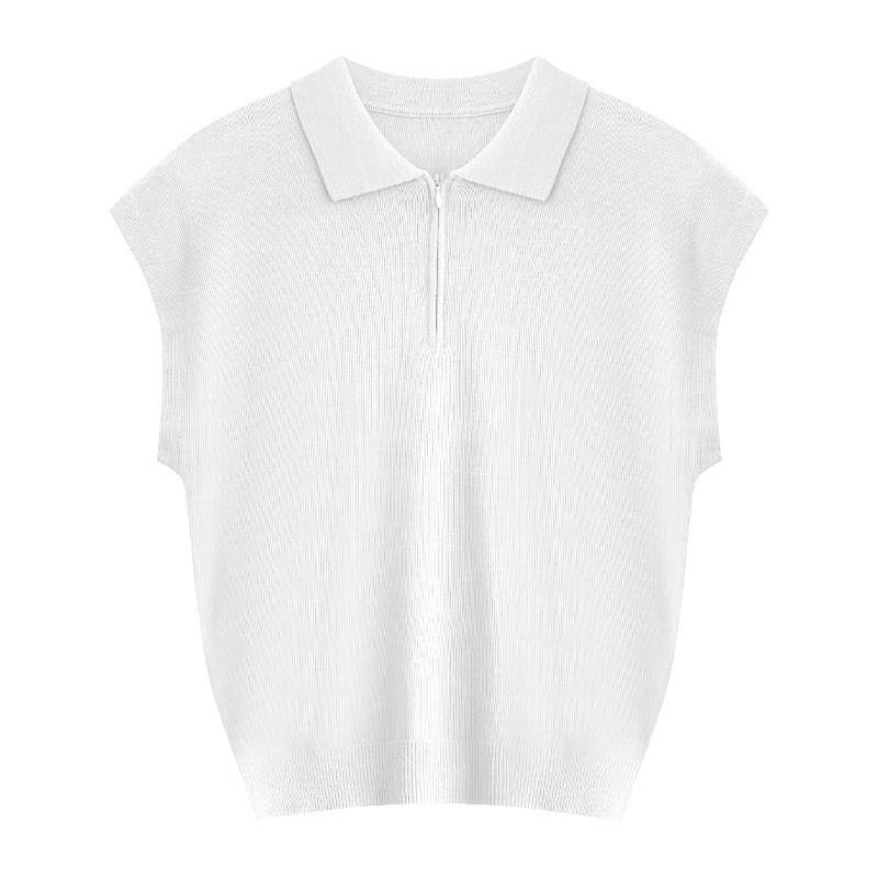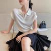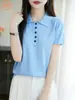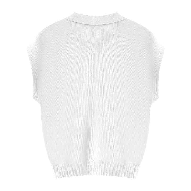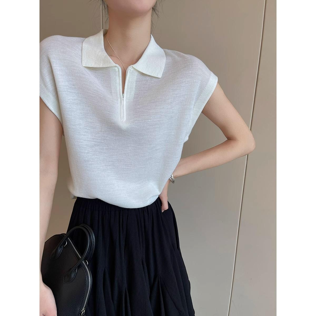 Camiseta de Punto Blanca de Manga Corta con Cuello Polo para Mujer Verano 2025 Nueva Elegante Rejuvenecedora Refrescante Top Old Money