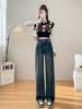 Jeans de Mujer Retro Gris Cemento de Pierna Ancha Estrecha Otoño 2025 Nuevos Pantalones Holgados y Fluidos de Cintura Alta Adelgazantes