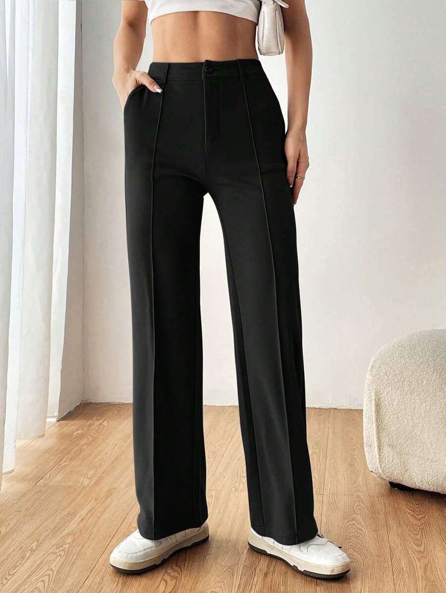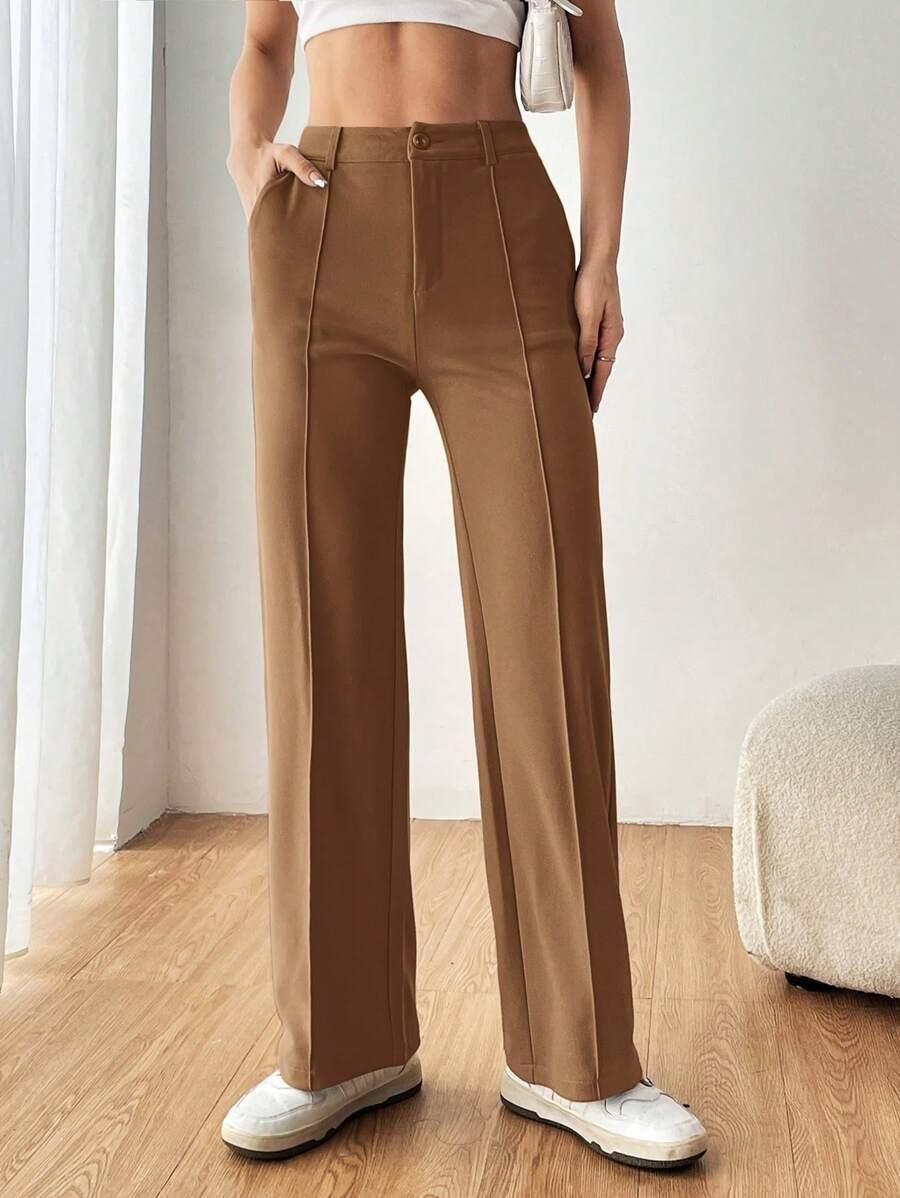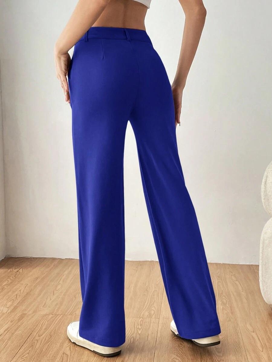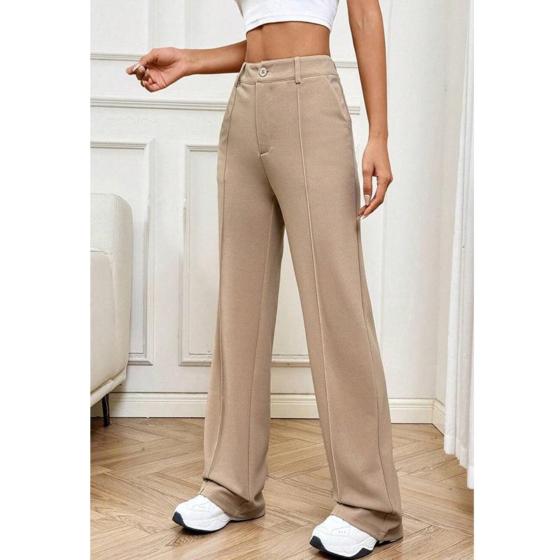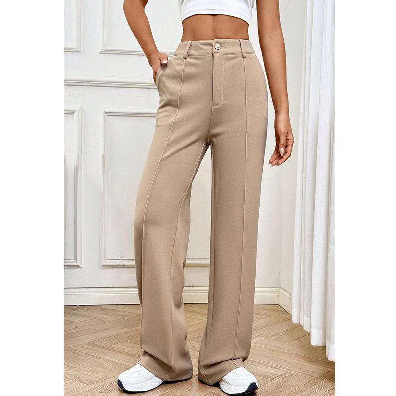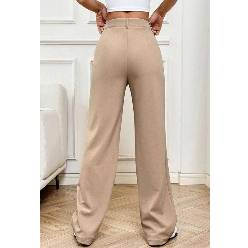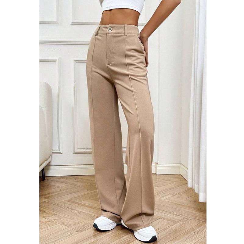 Pantalones de mujer de cintura alta europeos y americanos transfronterizos de Amazon, pantalones casuales de moda, elásticos, cómodos, de pierna recta con bolsillos, comercio exterior para mujer