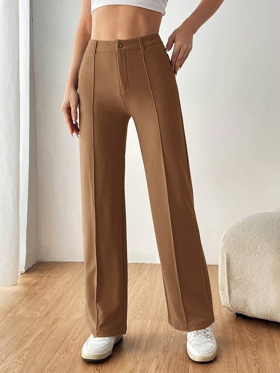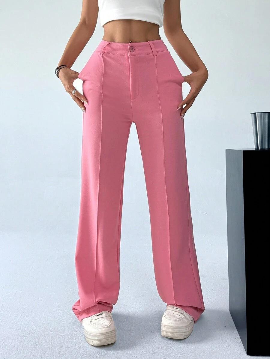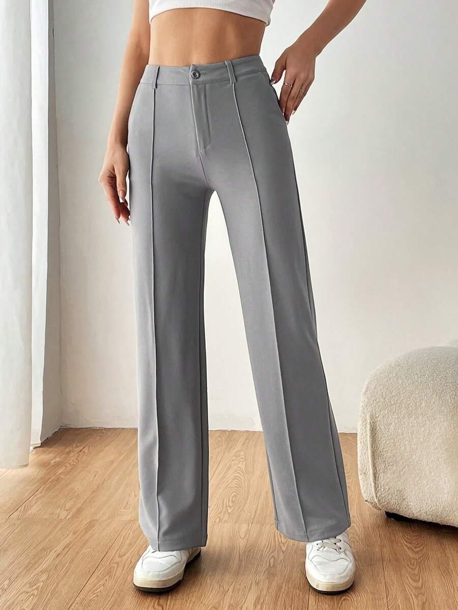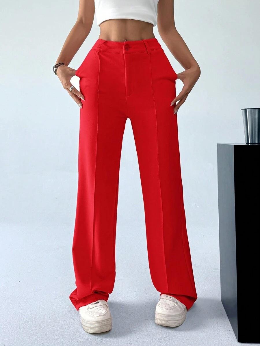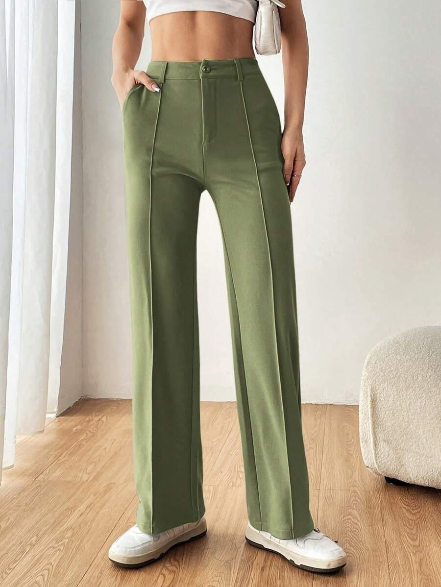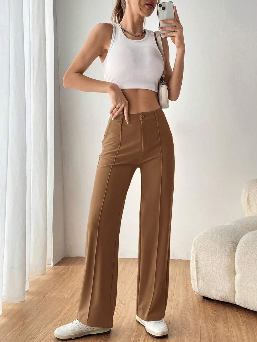 Pantalones de mujer de cintura alta europeos y americanos transfronterizos de Amazon, pantalones casuales de moda, elásticos, cómodos, de pierna recta con bolsillos, comercio exterior para mujer