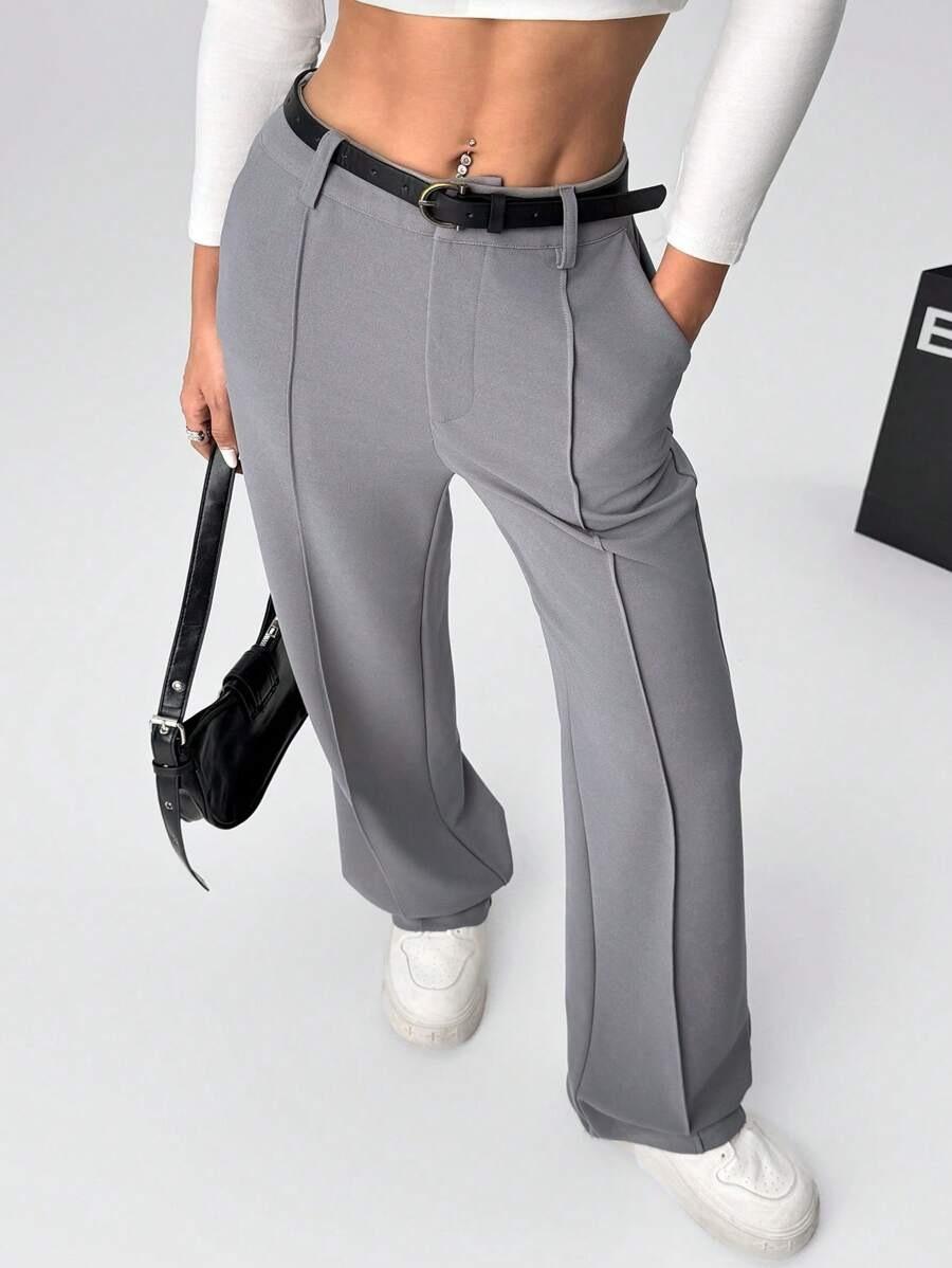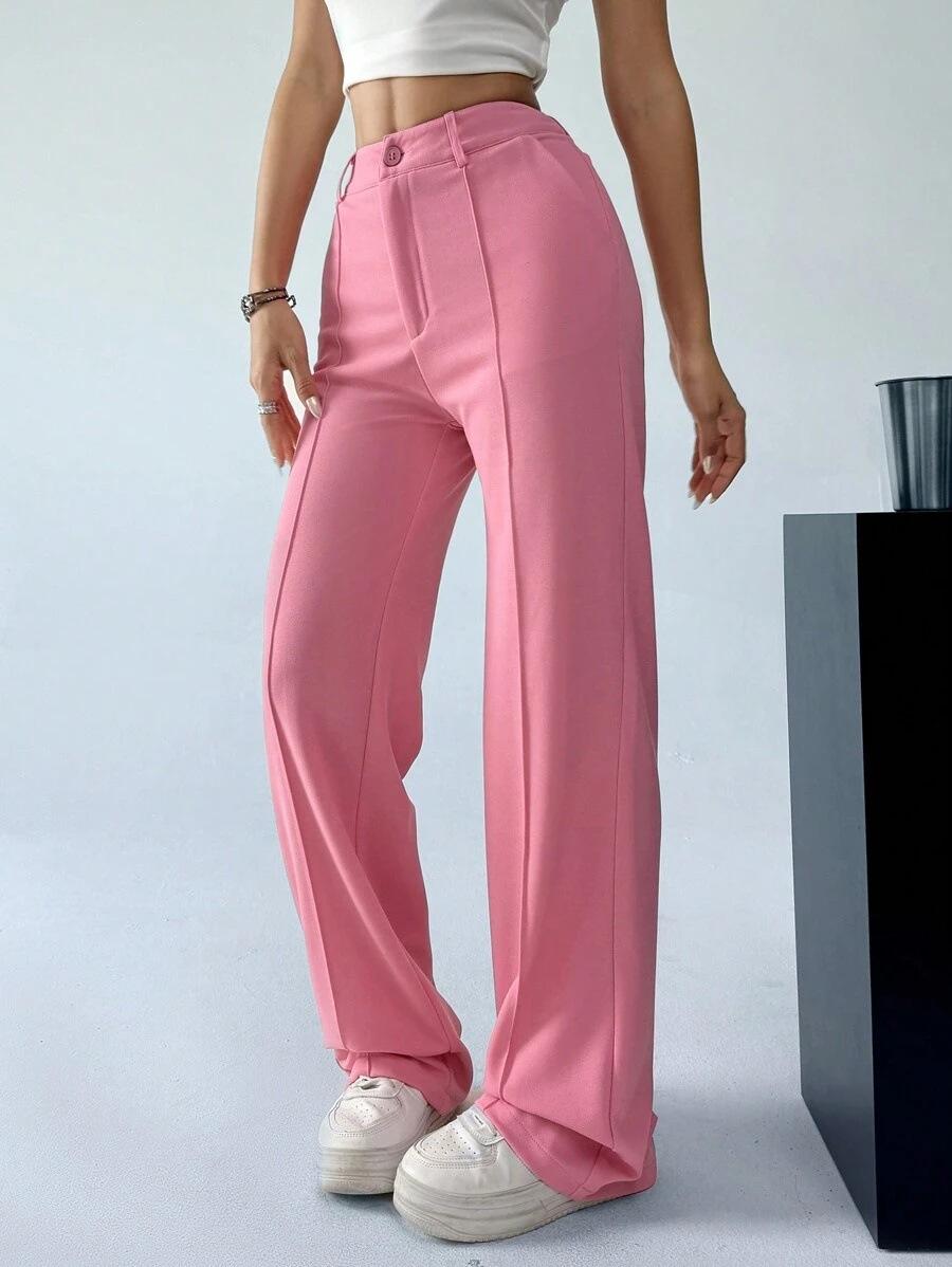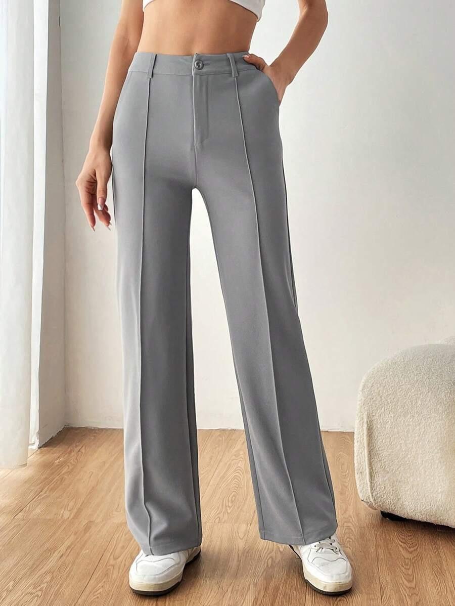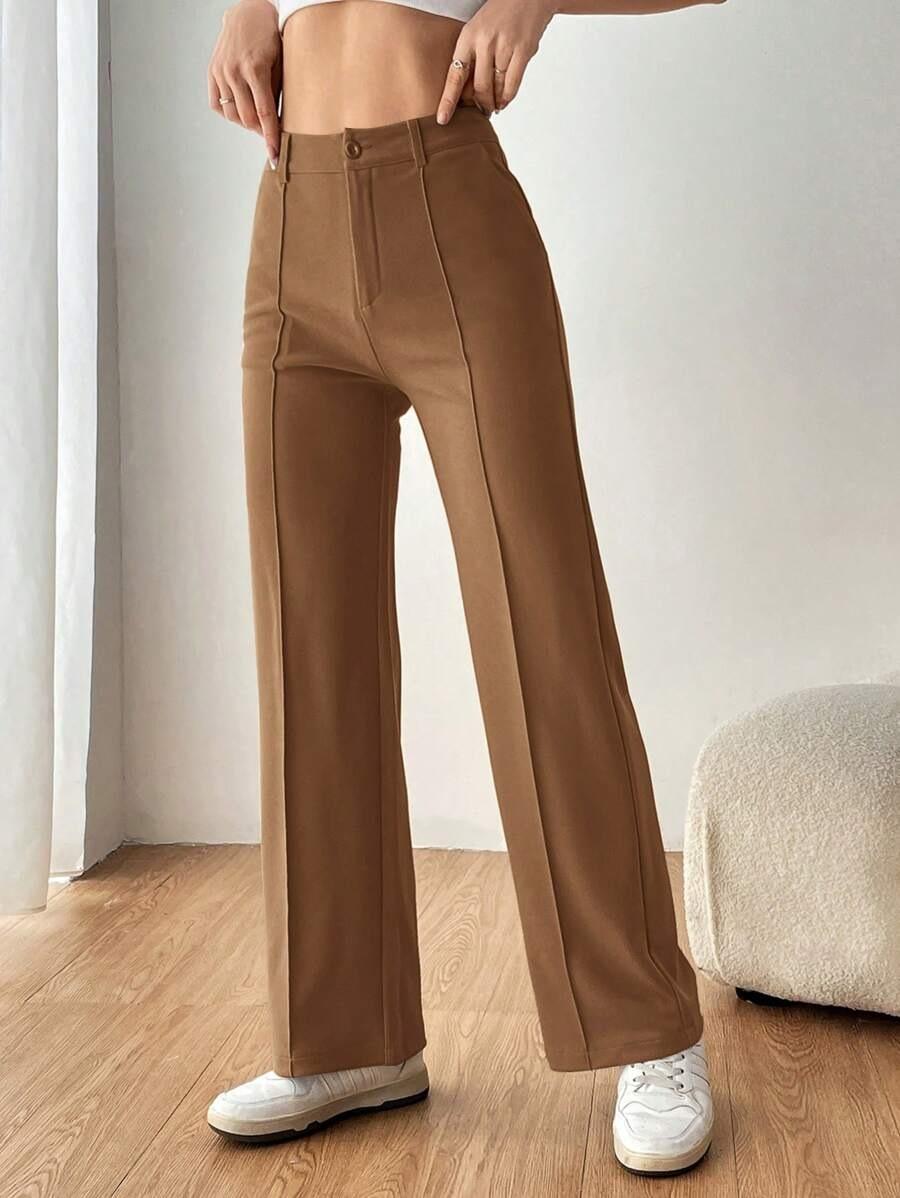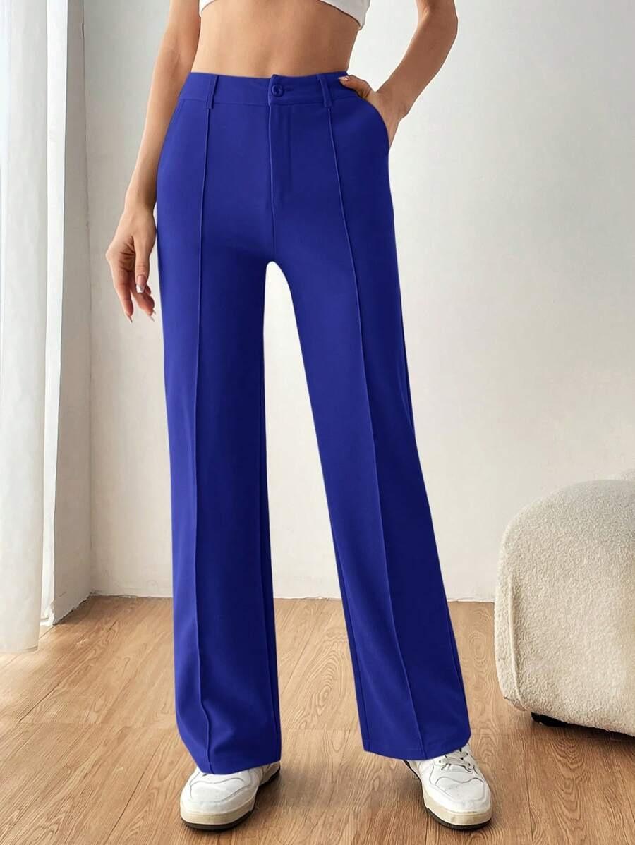 Pantalones de mujer de cintura alta europeos y americanos transfronterizos de Amazon, pantalones casuales de moda, elásticos, cómodos, de pierna recta con bolsillos, comercio exterior para mujer