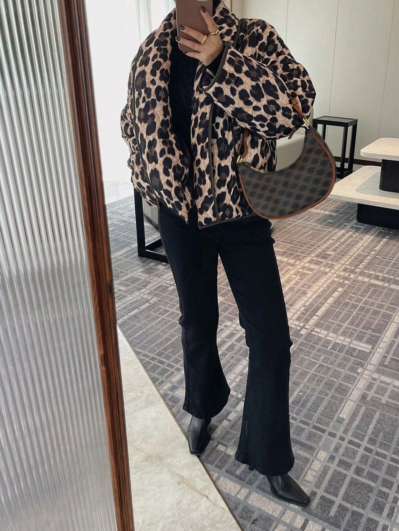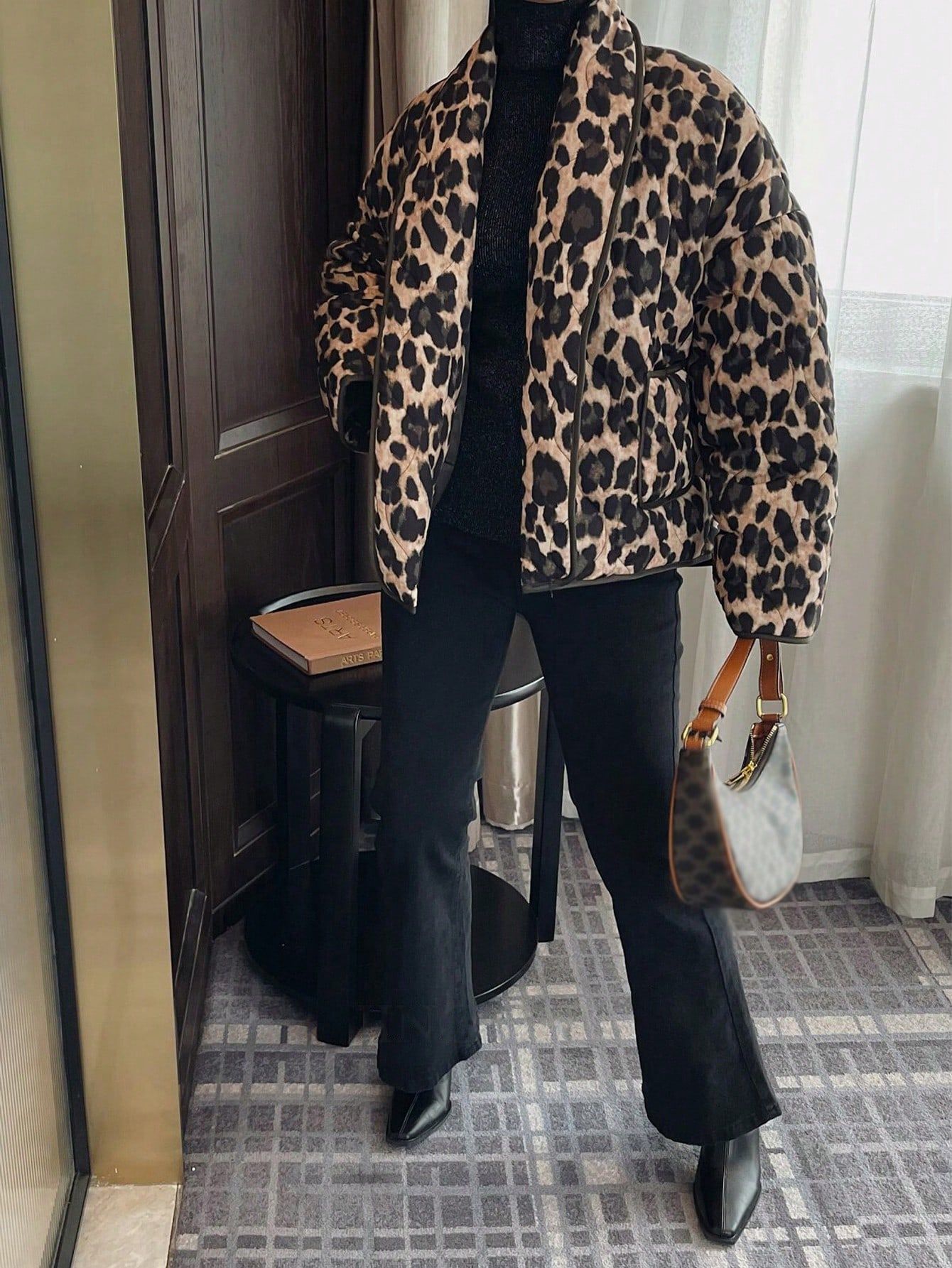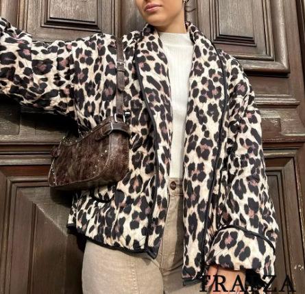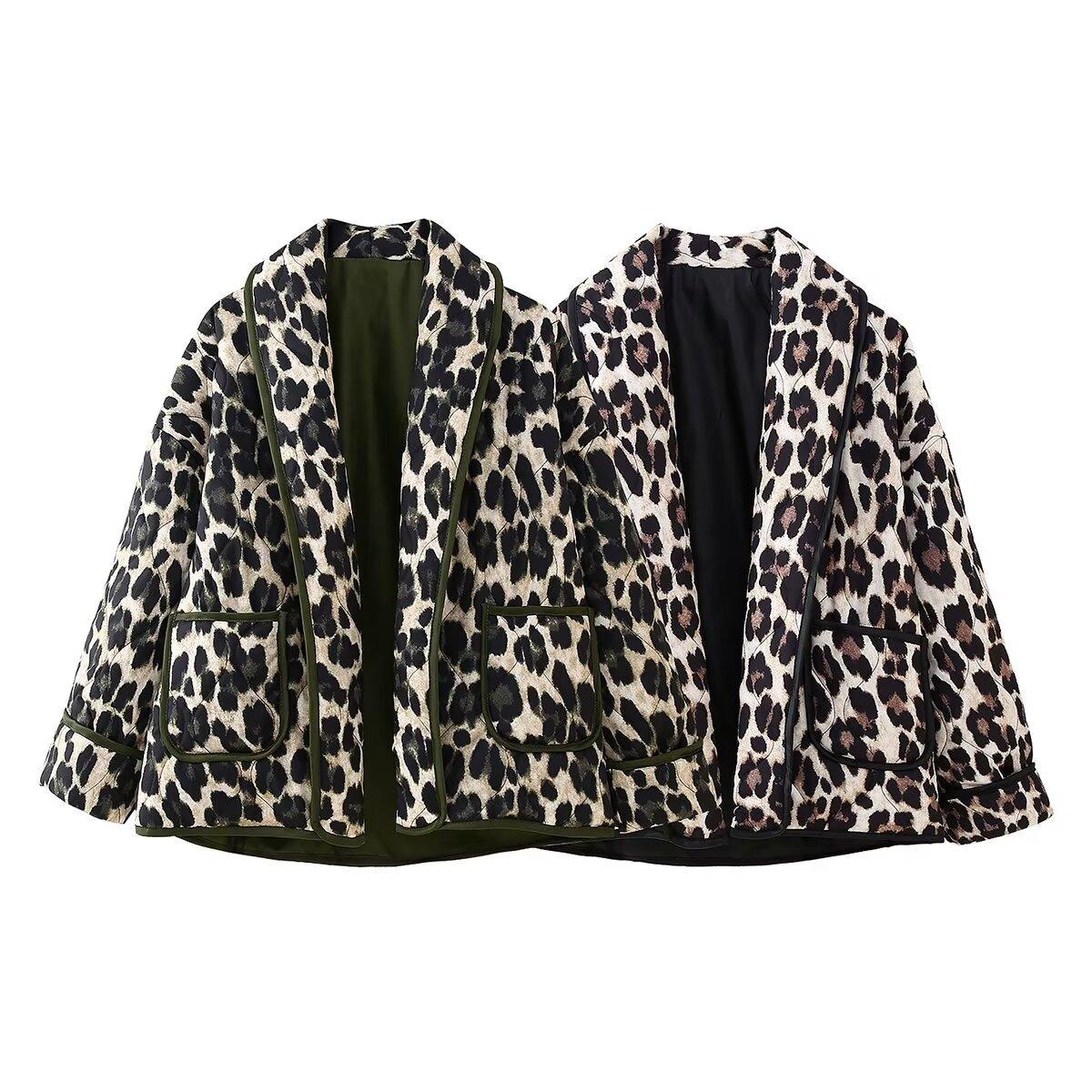 Amazon Comercio Exterior Transfronterizo Ropa Europea y Americana Otoño e Invierno Nuevo Chaqueta de Algodón Estilo Urbano Estampado de Leopardo