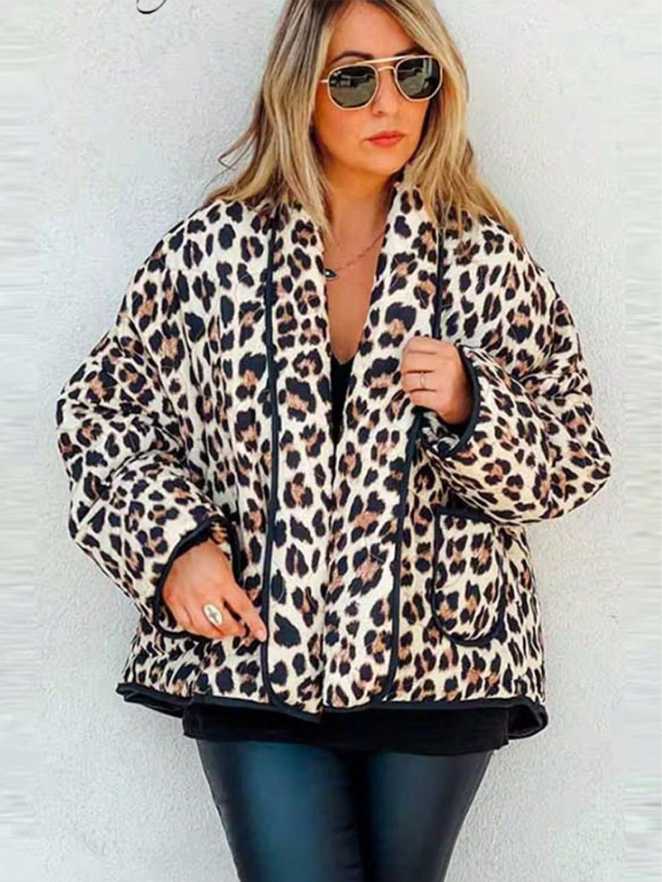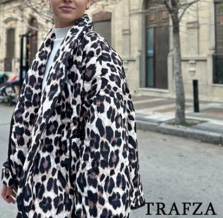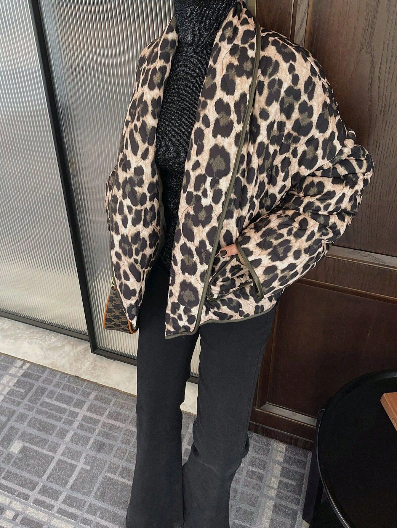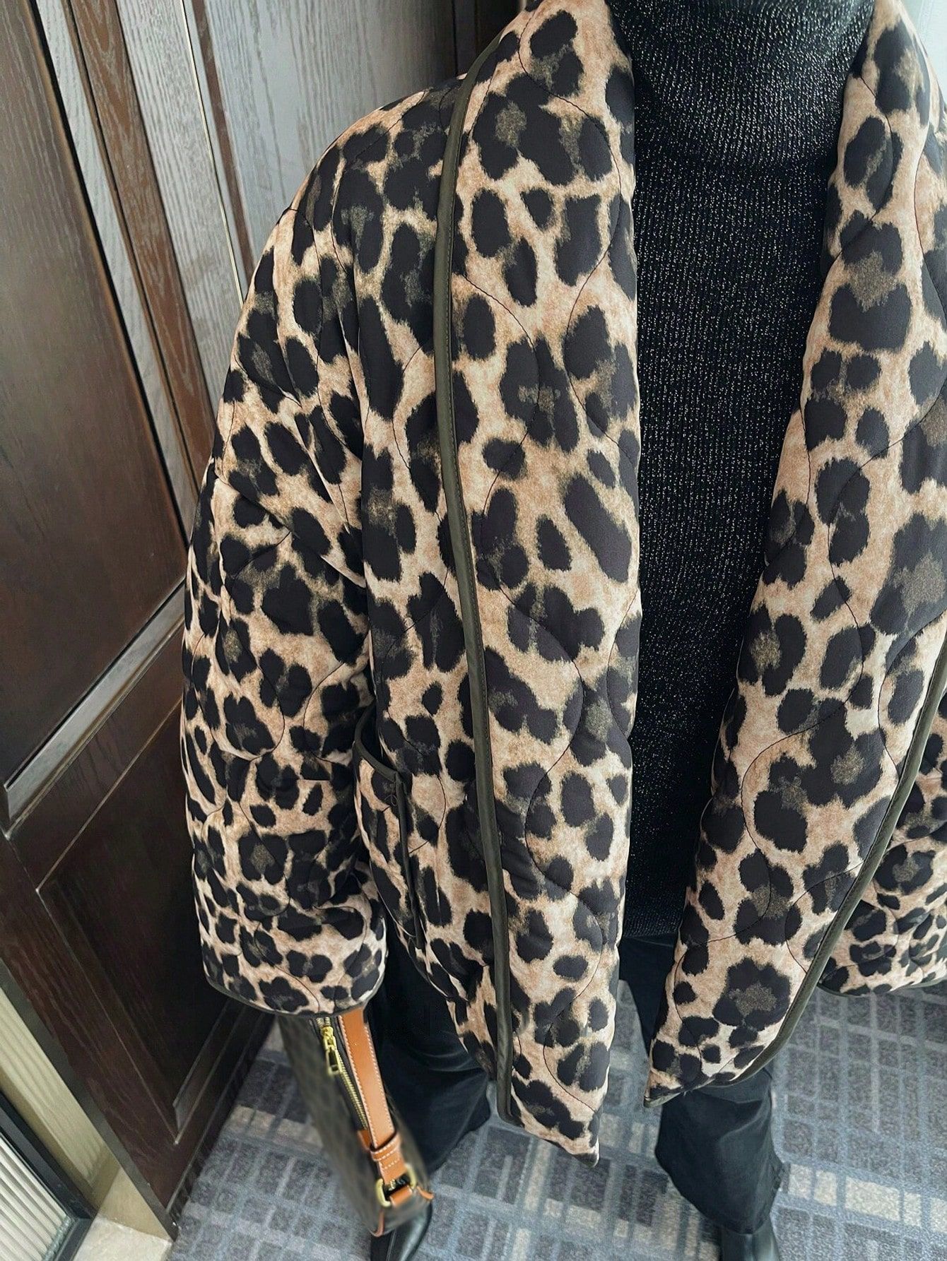 Amazon Comercio Exterior Transfronterizo Ropa Europea y Americana Otoño e Invierno Nuevo Chaqueta de Algodón Estilo Urbano Estampado de Leopardo