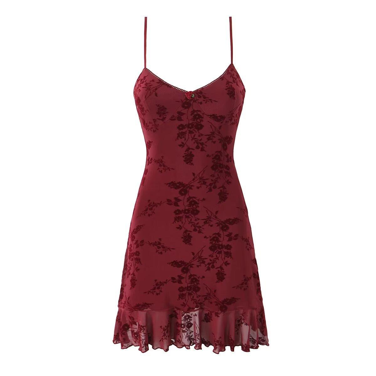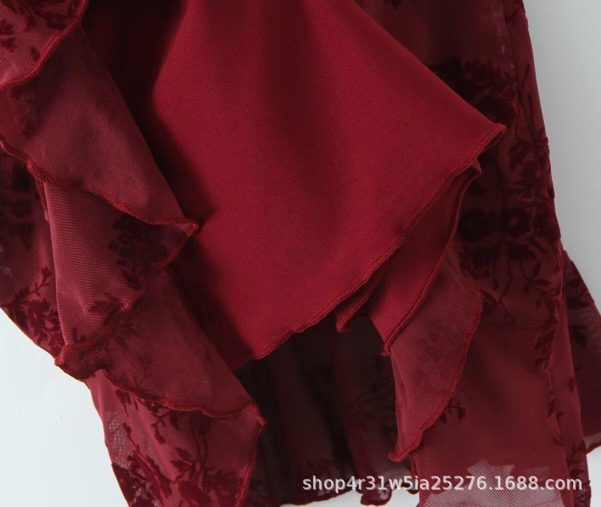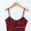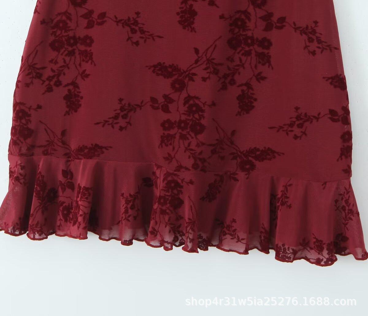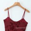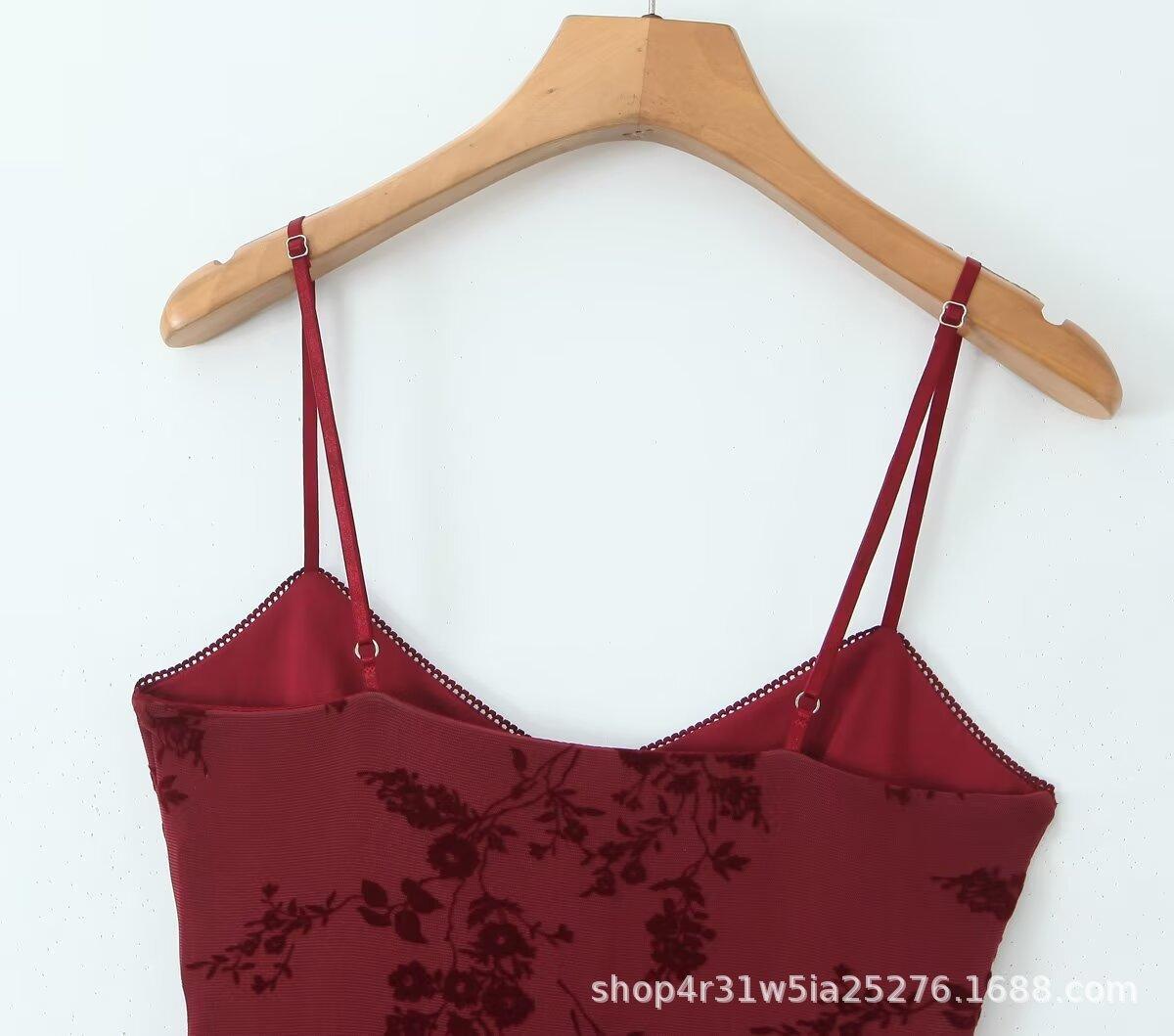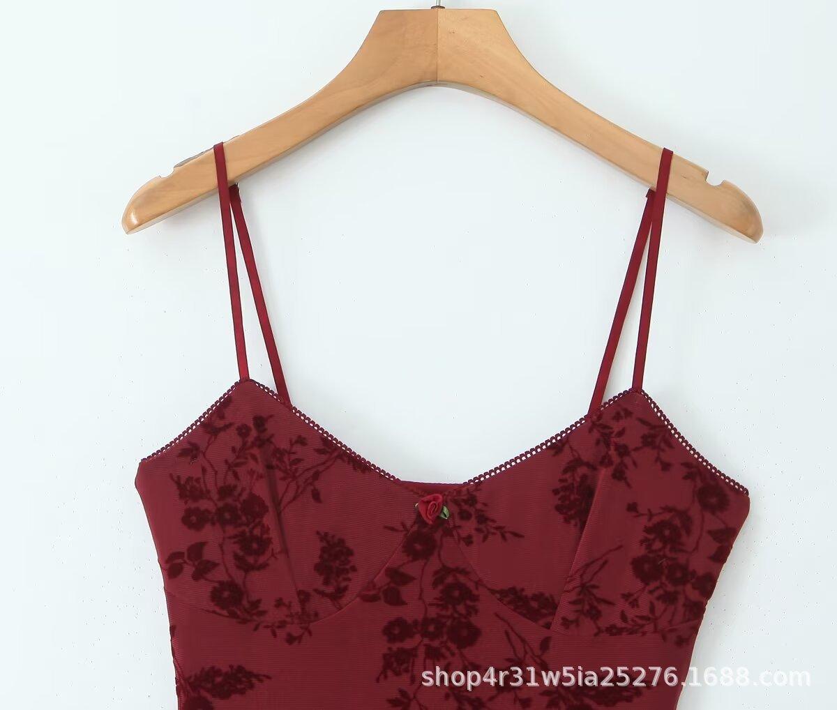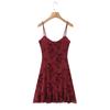 Europa y Estados Unidos 2025 primavera temprana nueva moda floral flocado ajustado cuello V vestido de tirantes en la cintura